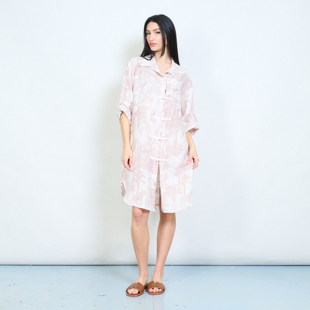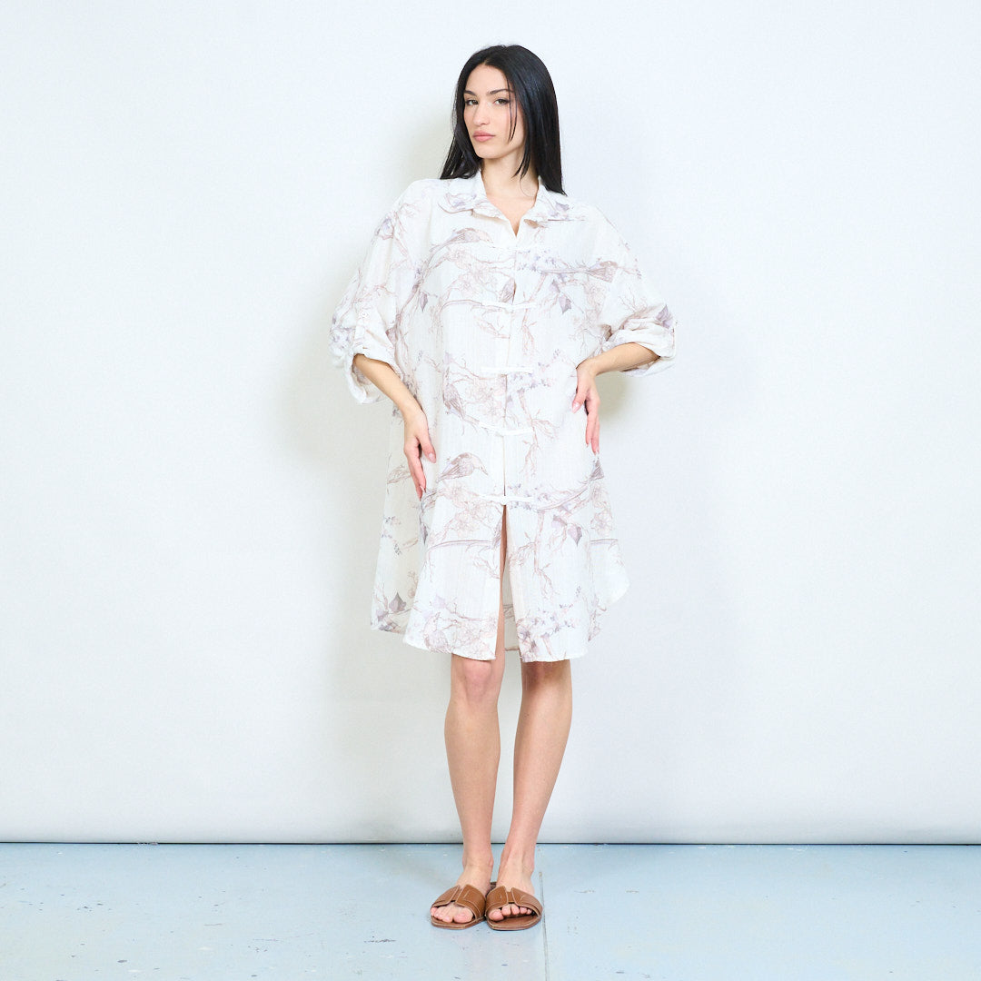 Bird and branch nature print oriental toggle front shirt dress wholesale