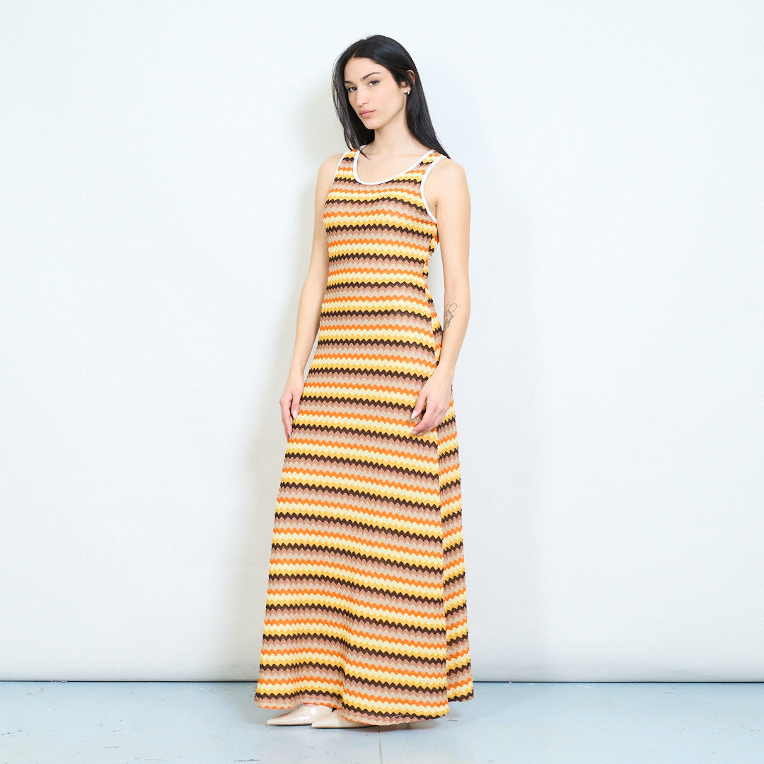 Vintage zigzag wave pattern sleeveless maxi dress wholesale