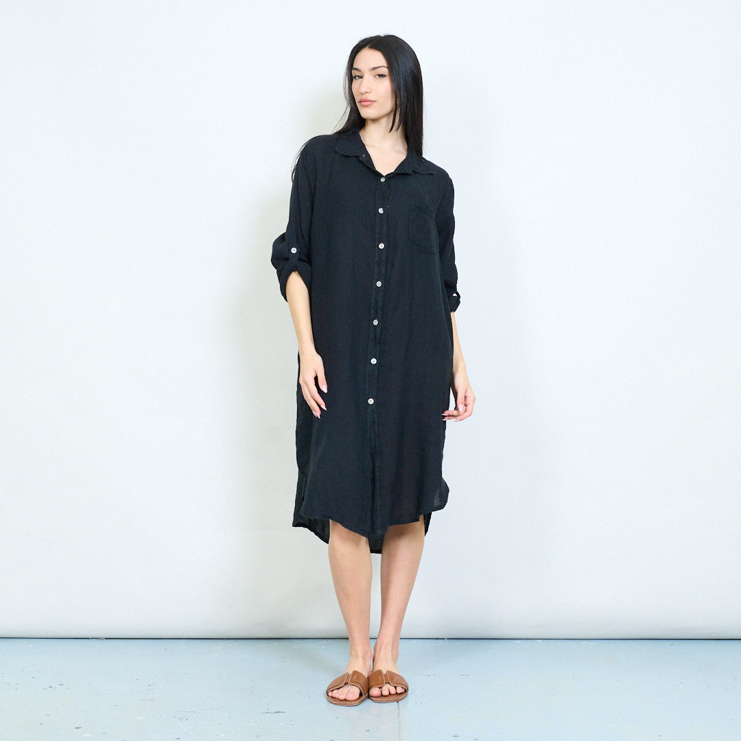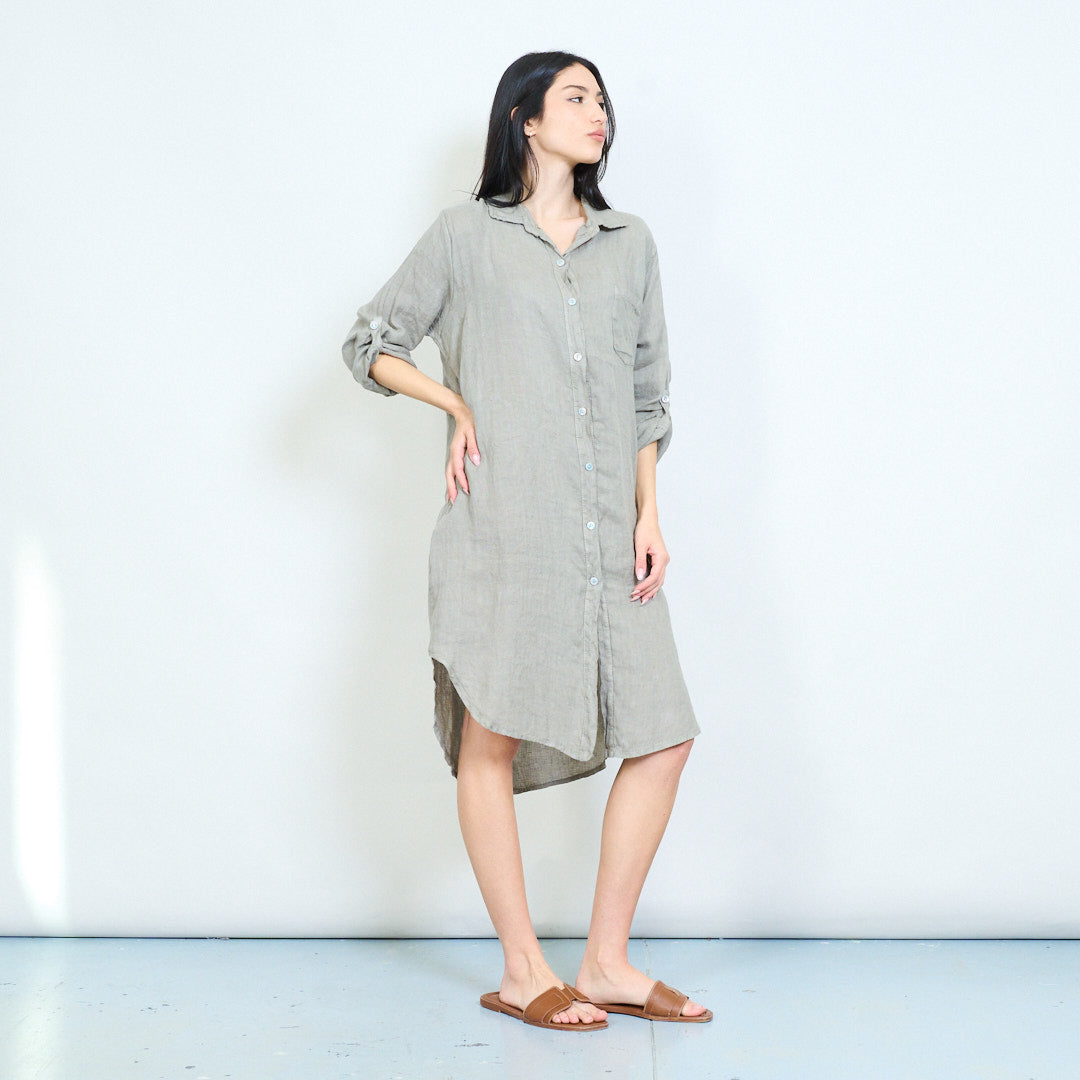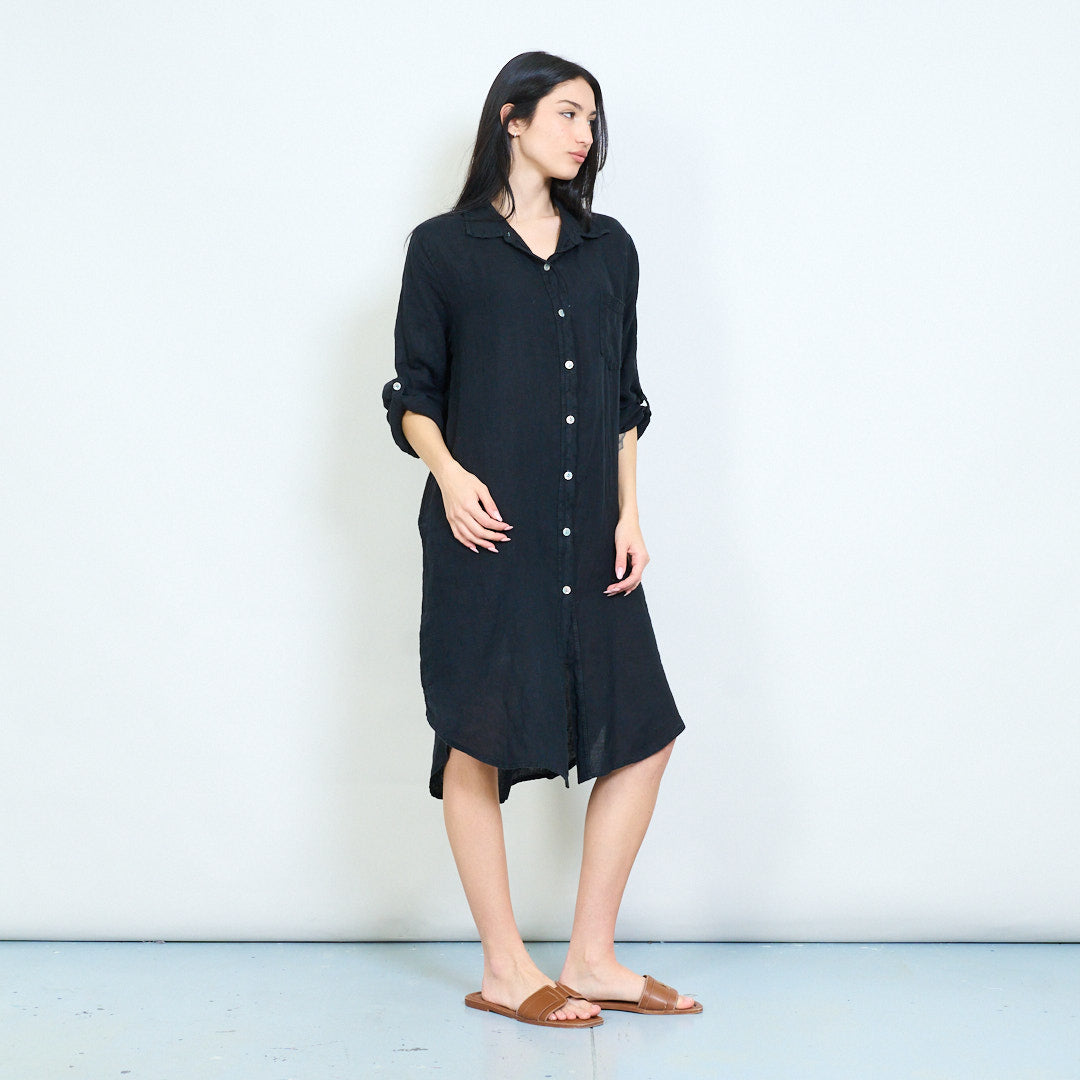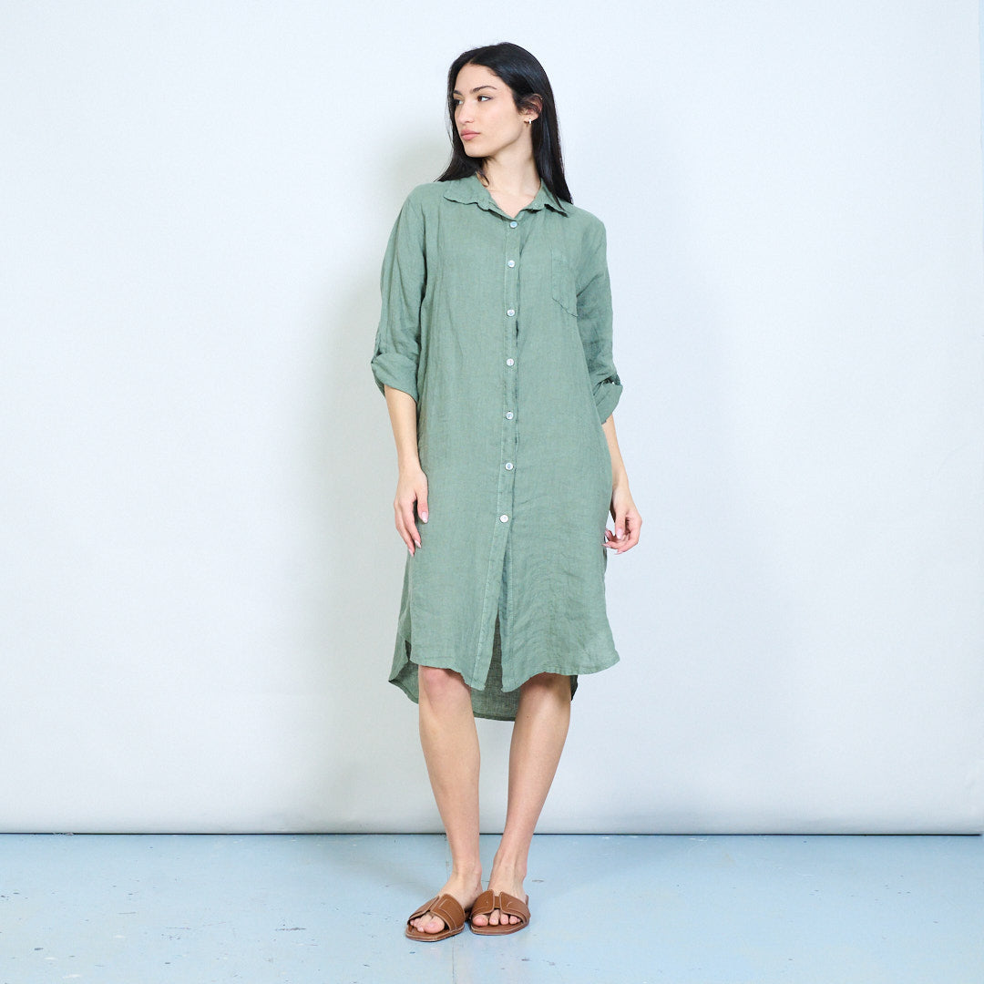 - Relaxed shirt dress with classic collar and full button front closure