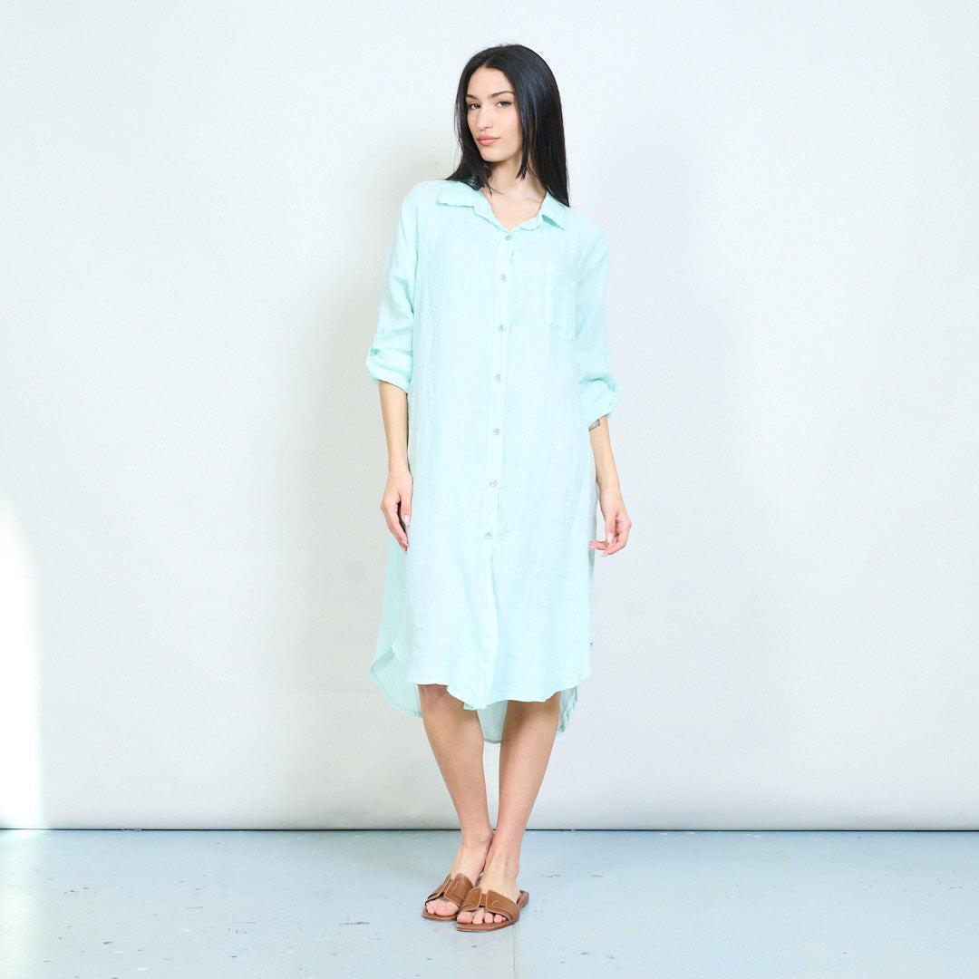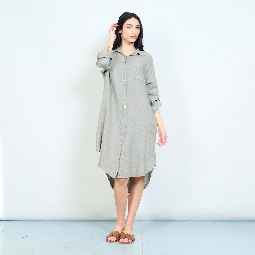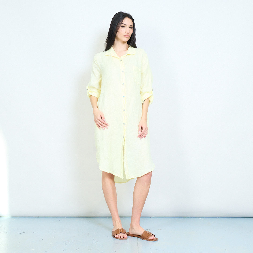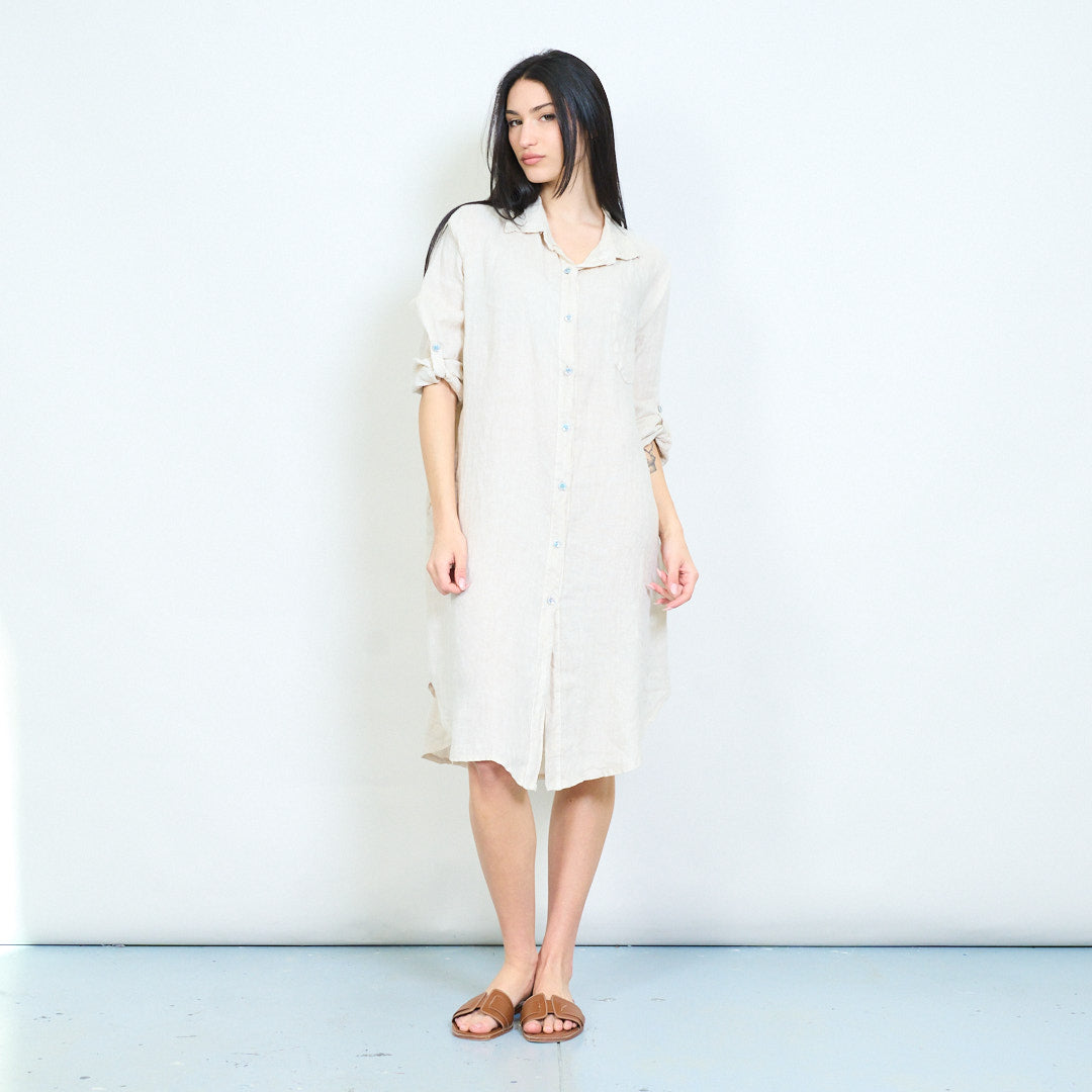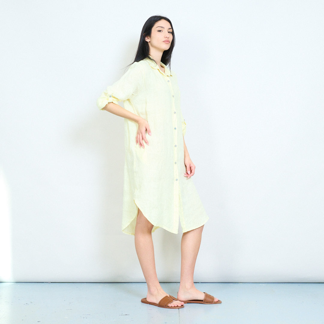 - Relaxed shirt dress with classic collar and full button front closure