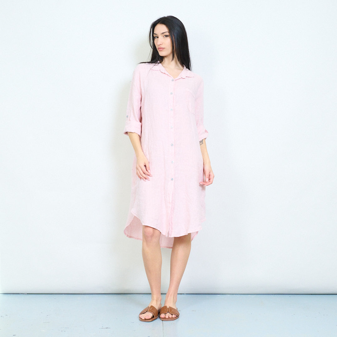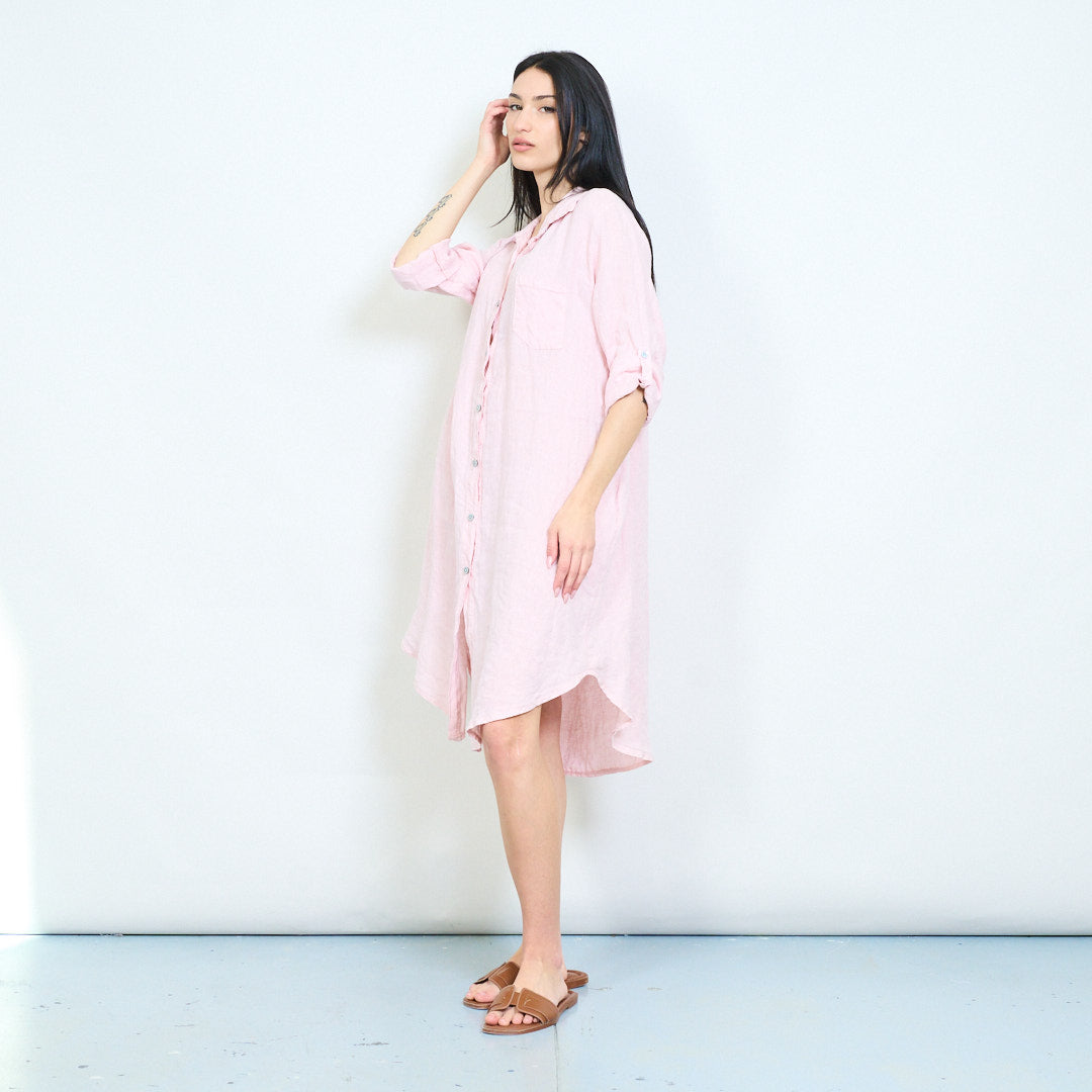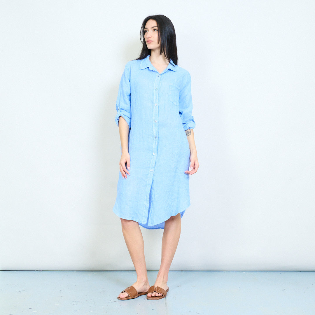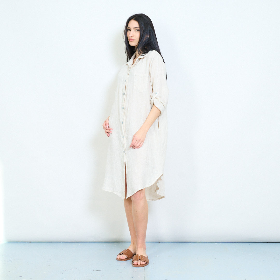 - Relaxed shirt dress with classic collar and full button front closure