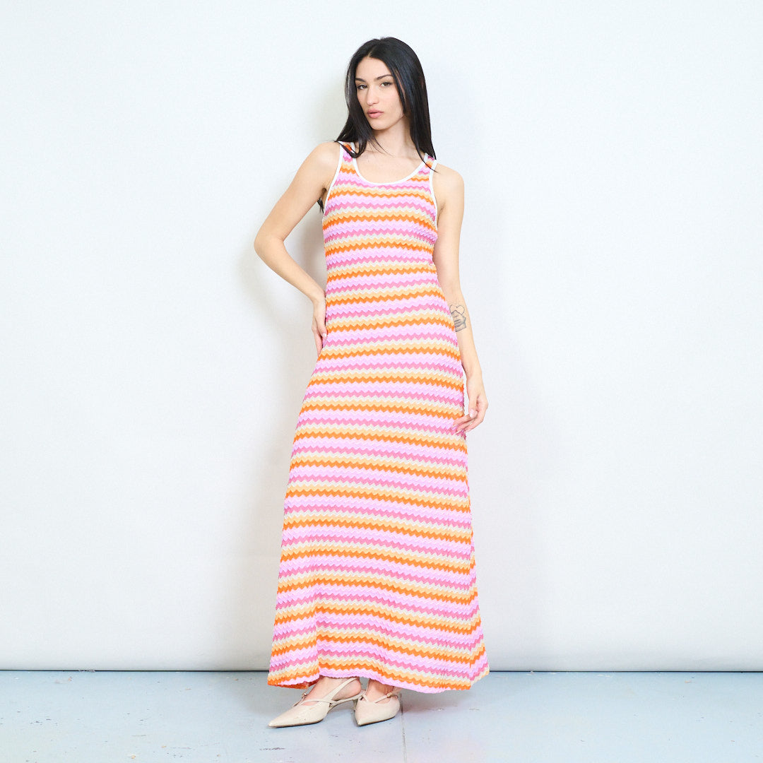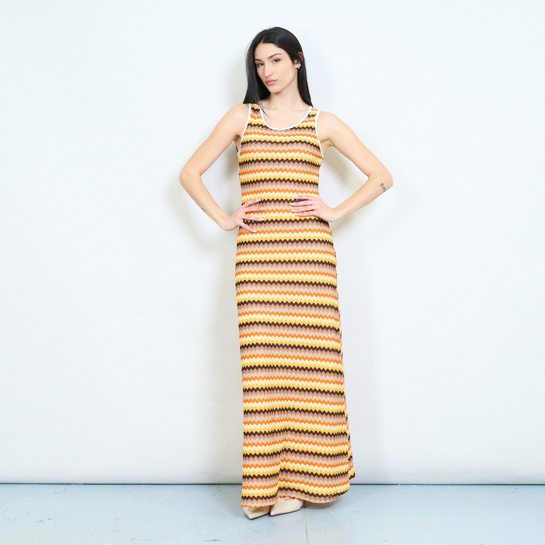 Vintage zigzag wave pattern sleeveless maxi dress wholesale