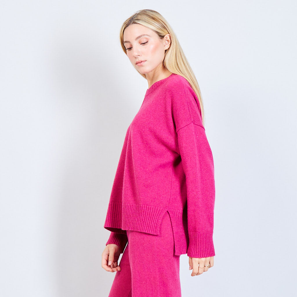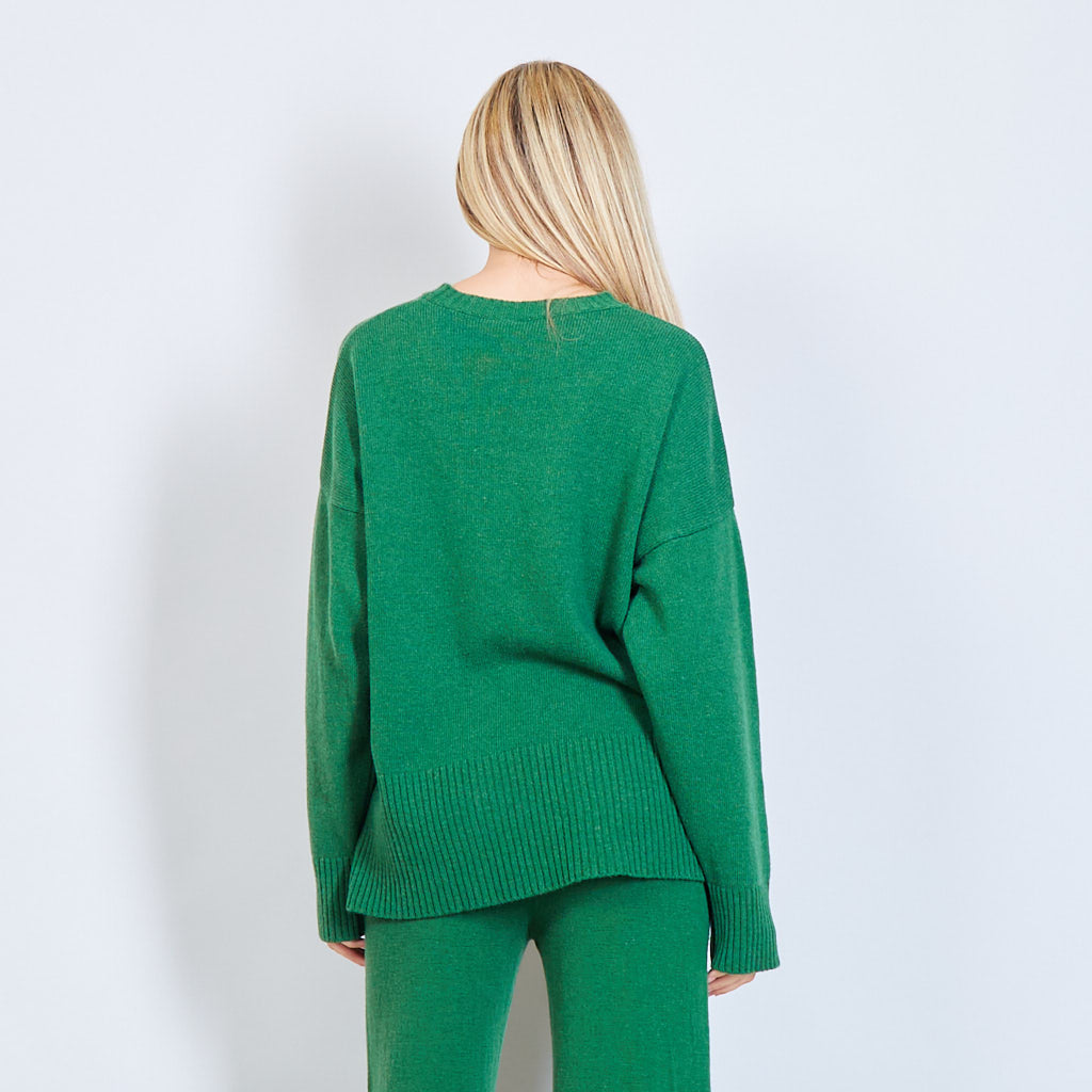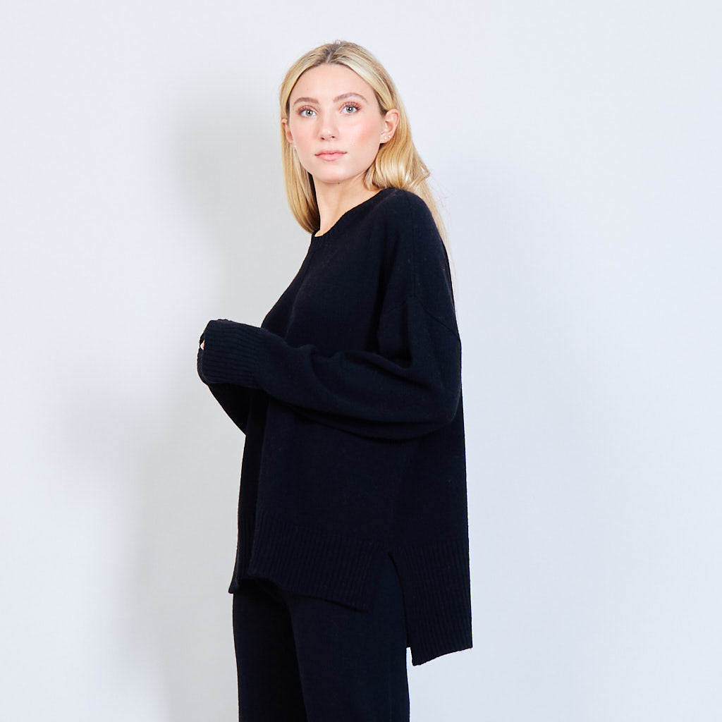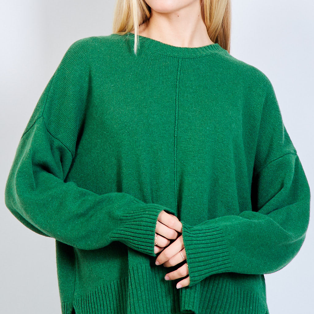 - Oversized round neck sweater with stitching details