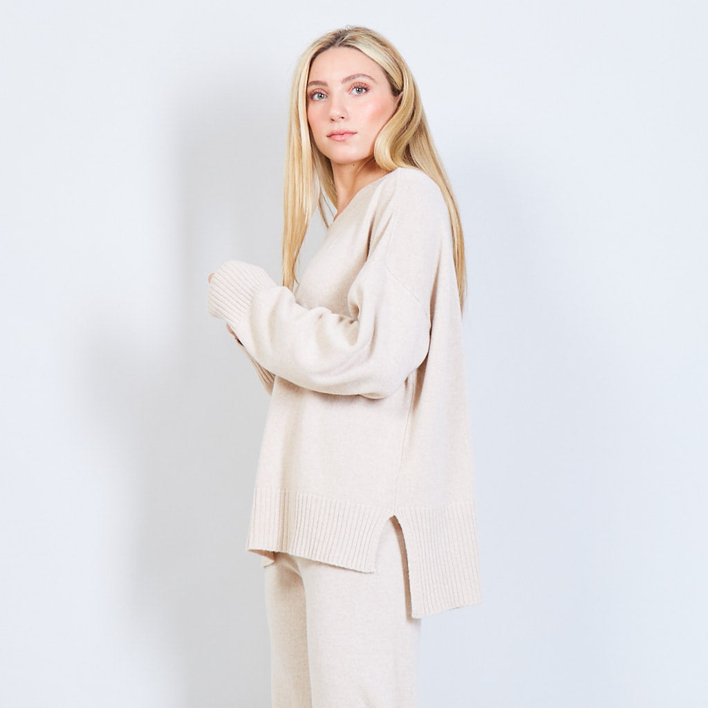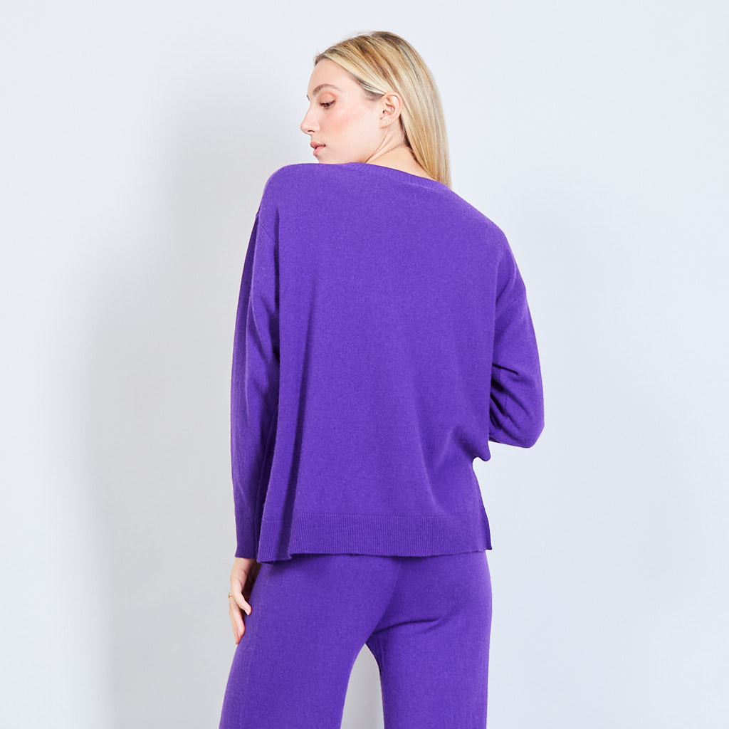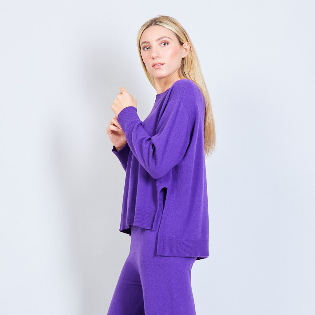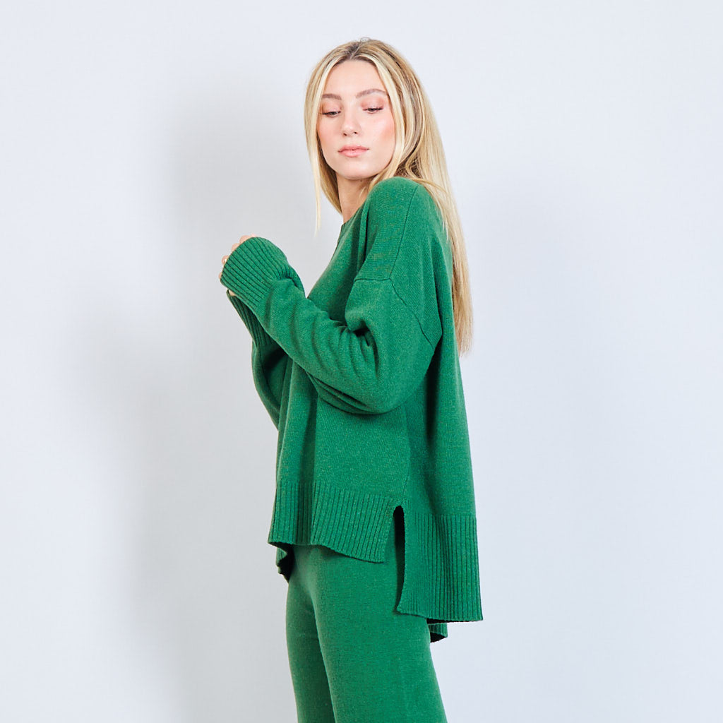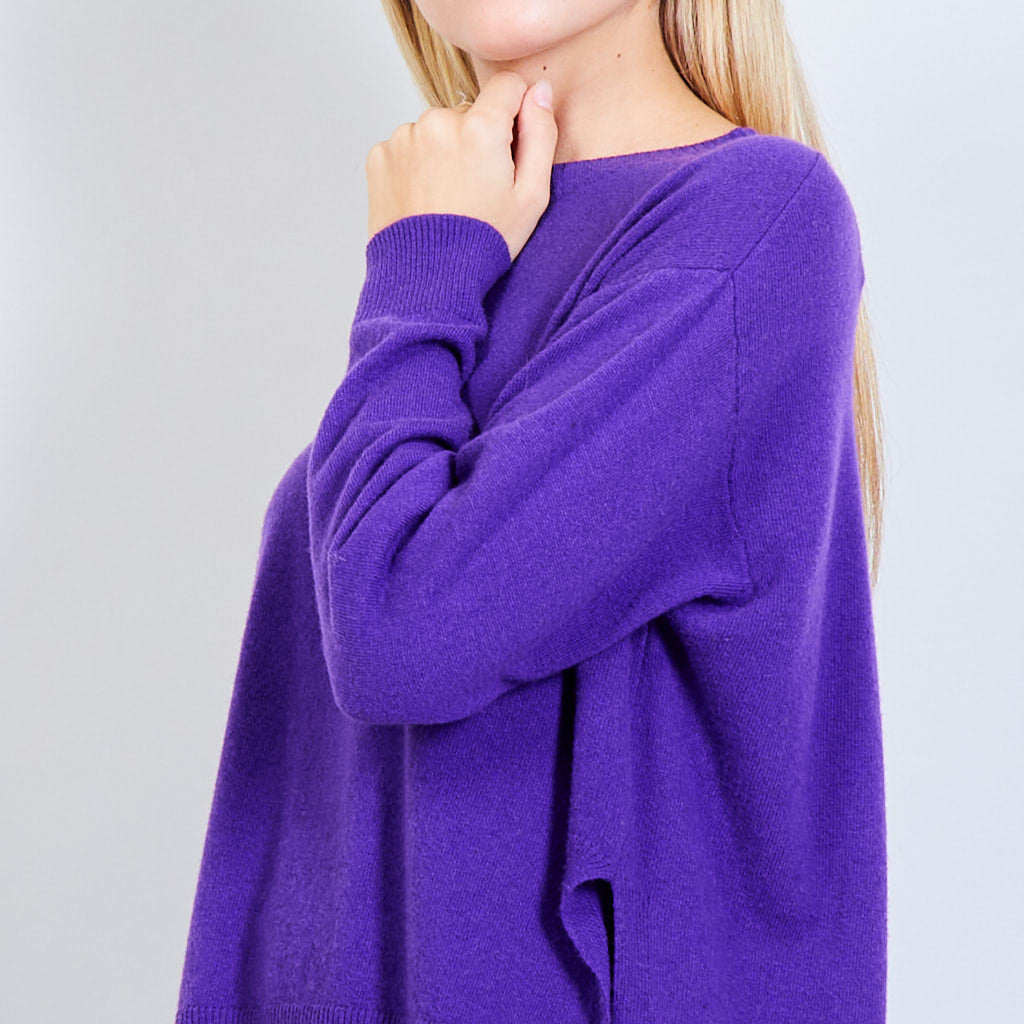- Oversized round neck sweater with stitching details