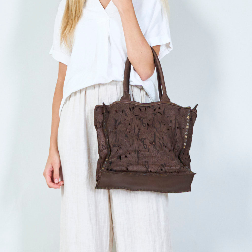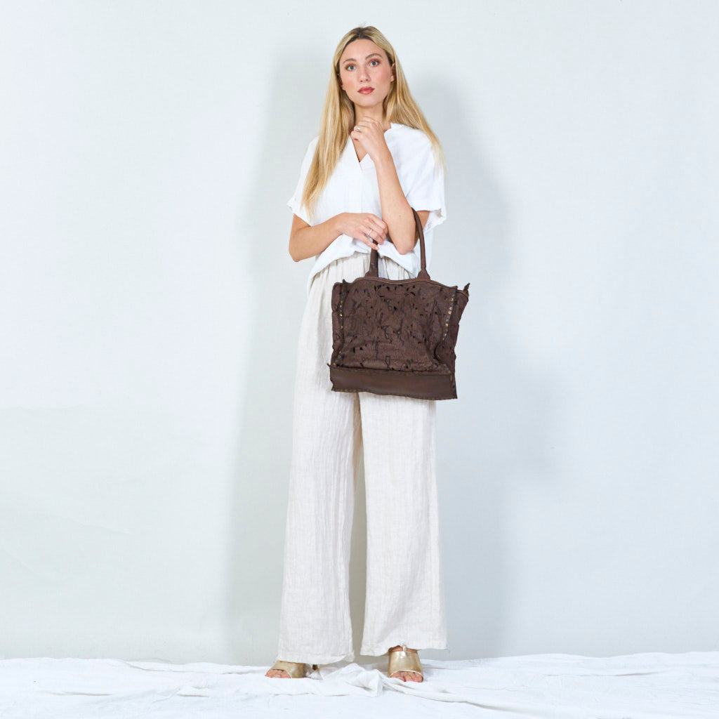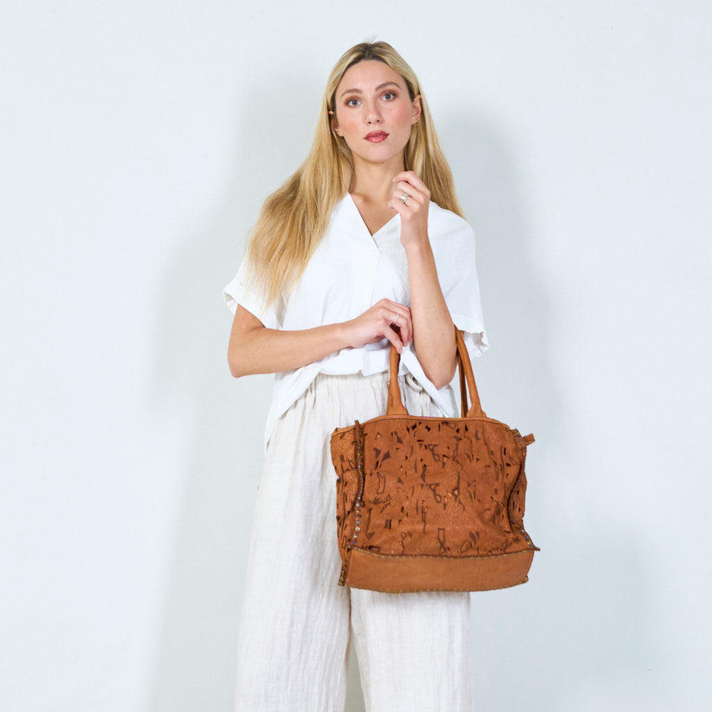 Laser-cut floral leather tote bag wholesale