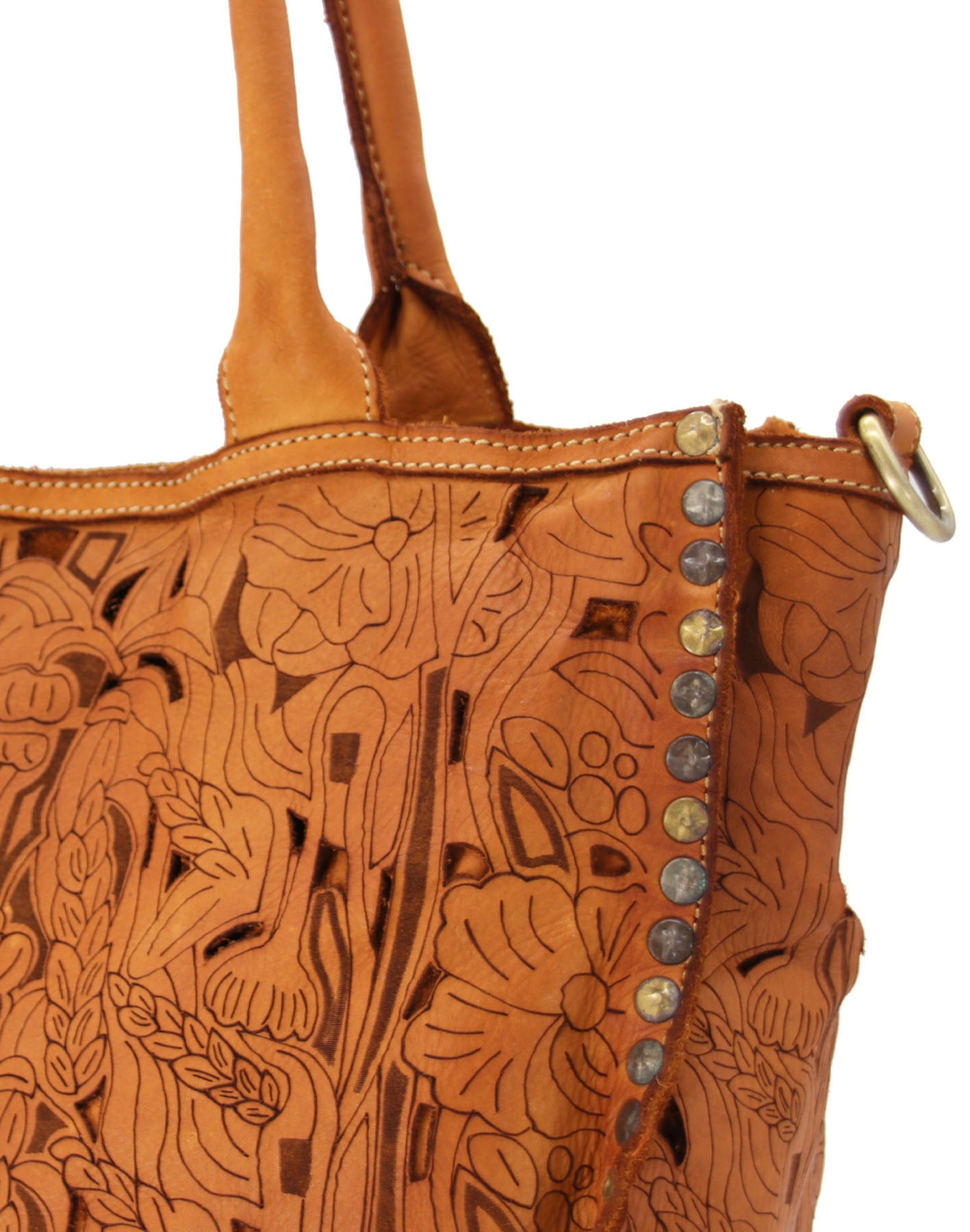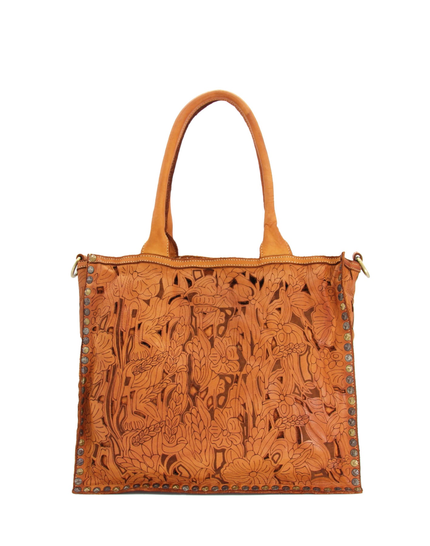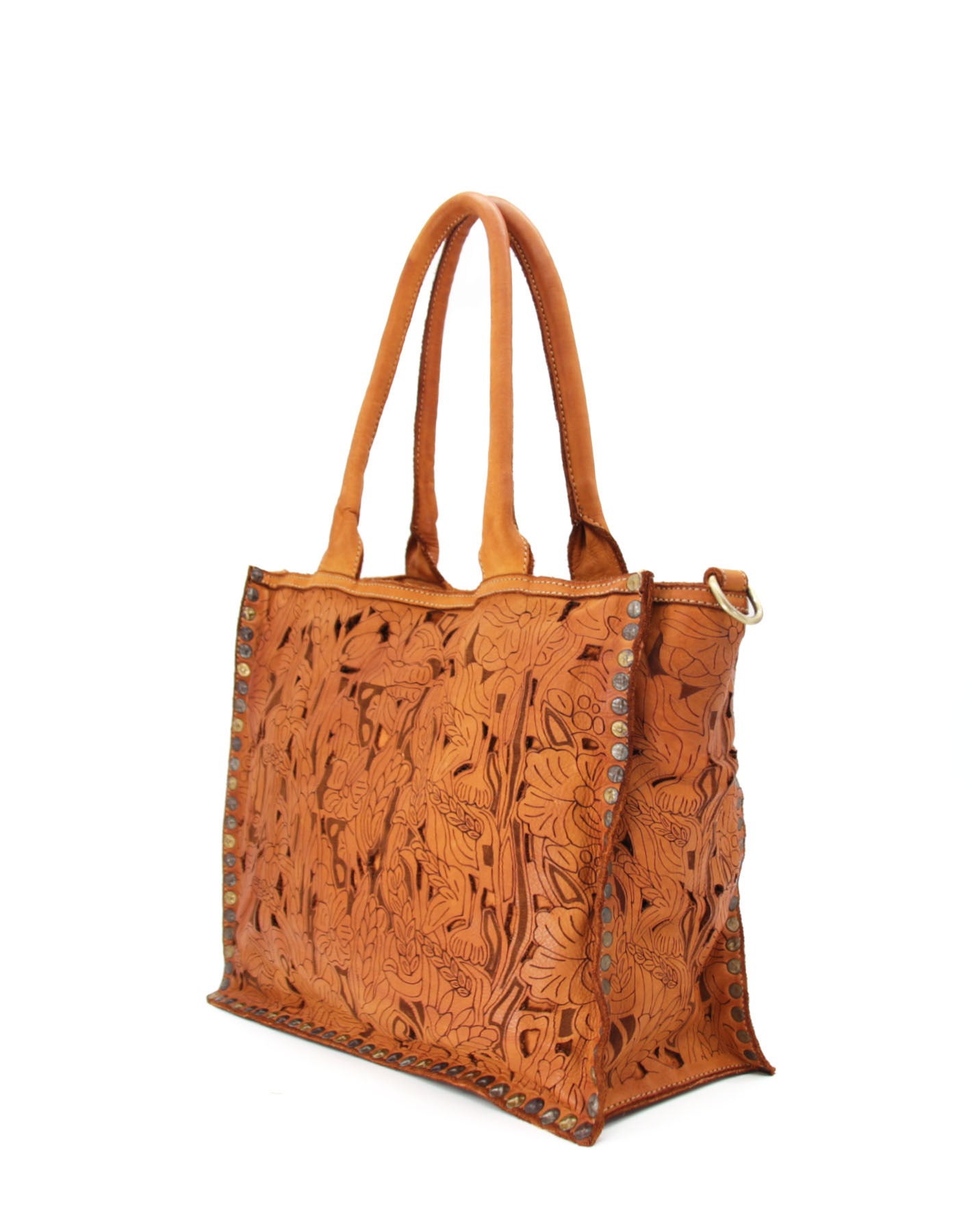 Laser-cut floral leather tote bag wholesale