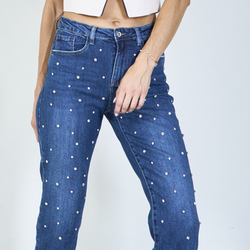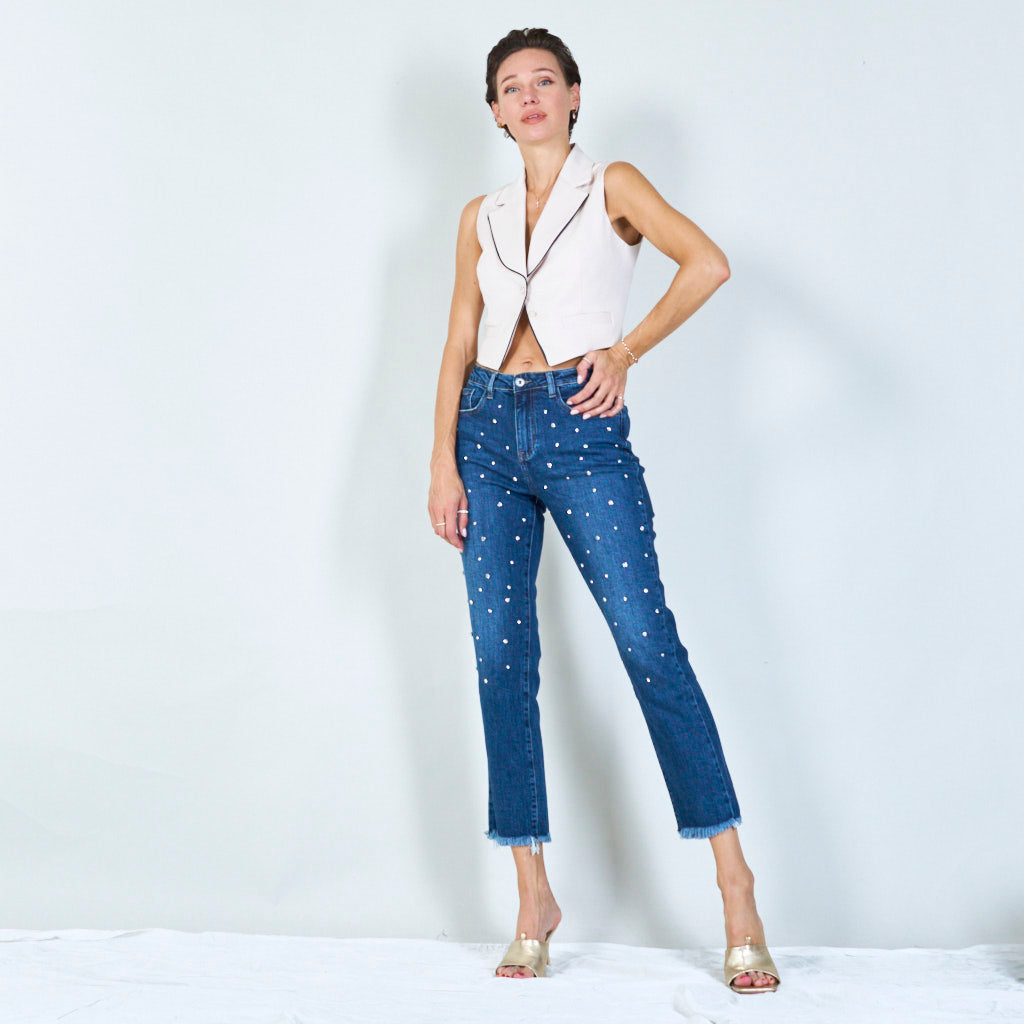 Stylish high-waisted jeans with pearl embellishments wholesale