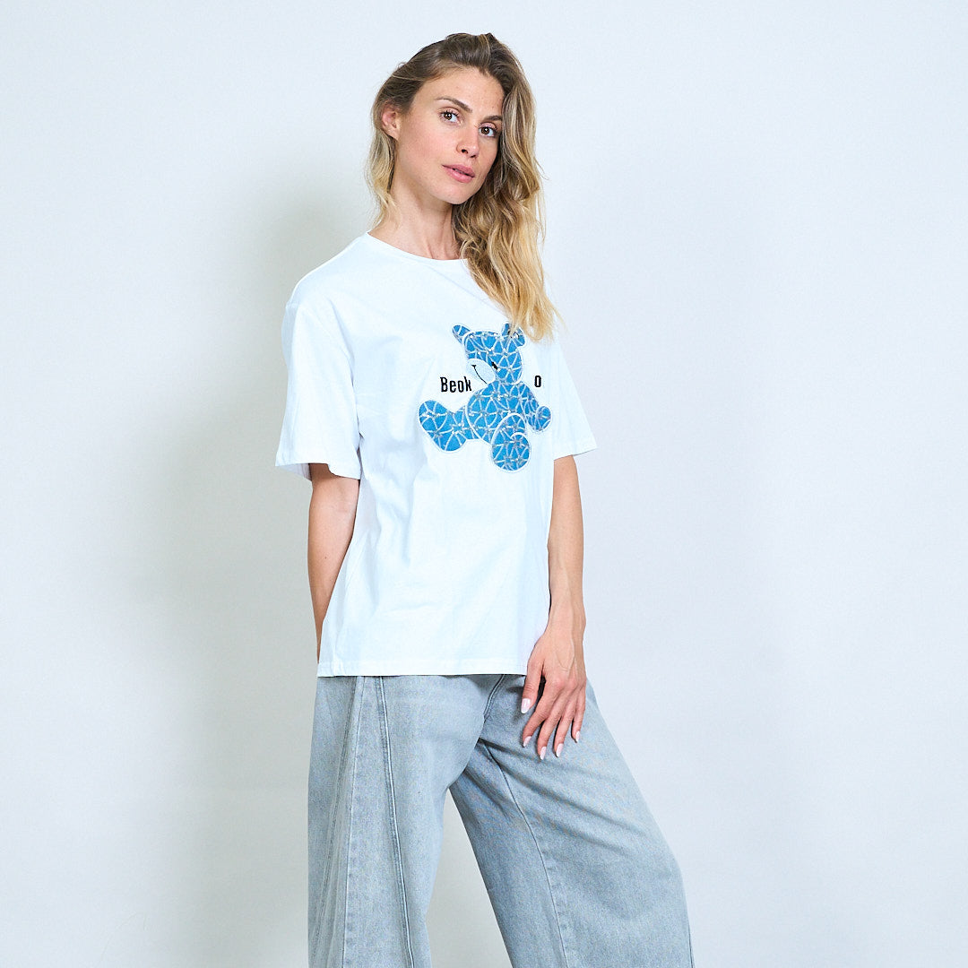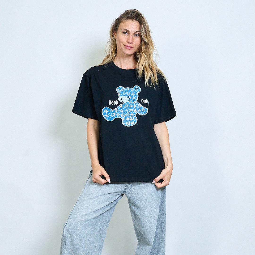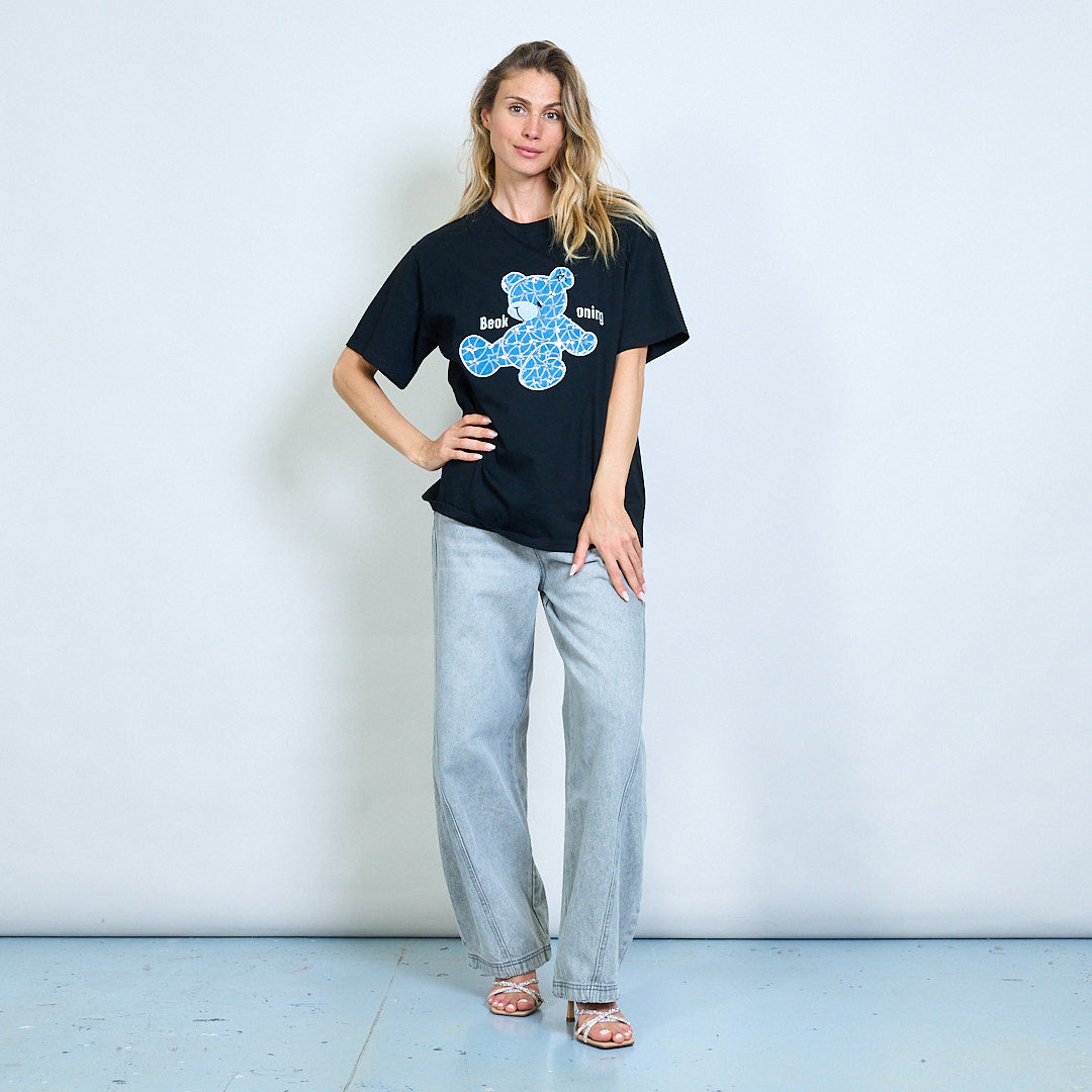 - Oversized t-shirt with central teddy bear graphic in cracked mosaic effect