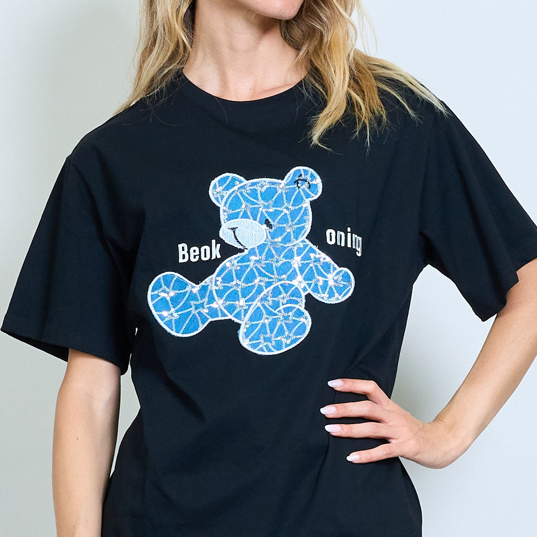 Teddy bear cracked print "Beok oning" slogan t-shirt wholesale