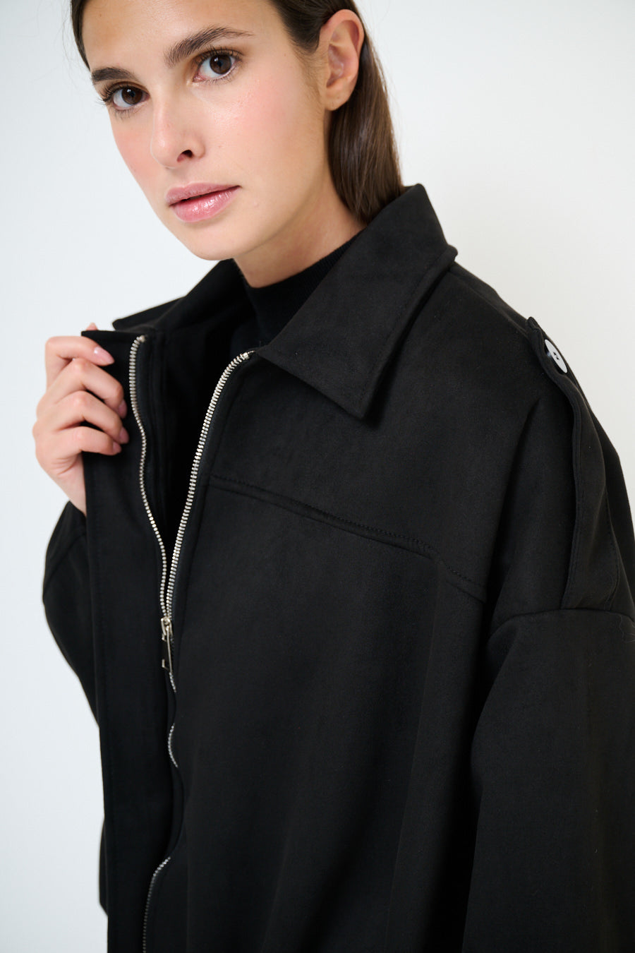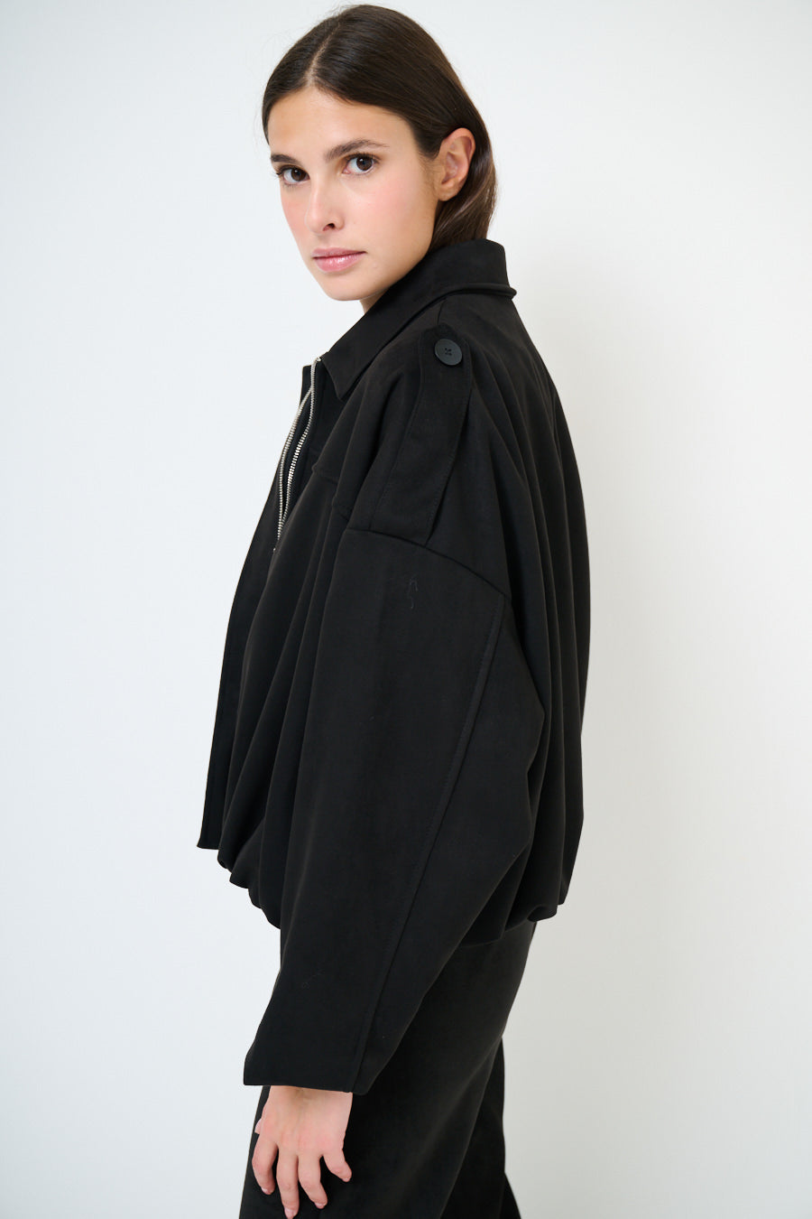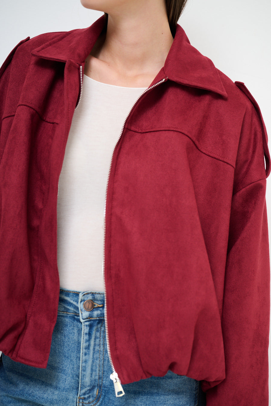 Collared oversized zip front cropped jacket wholesale