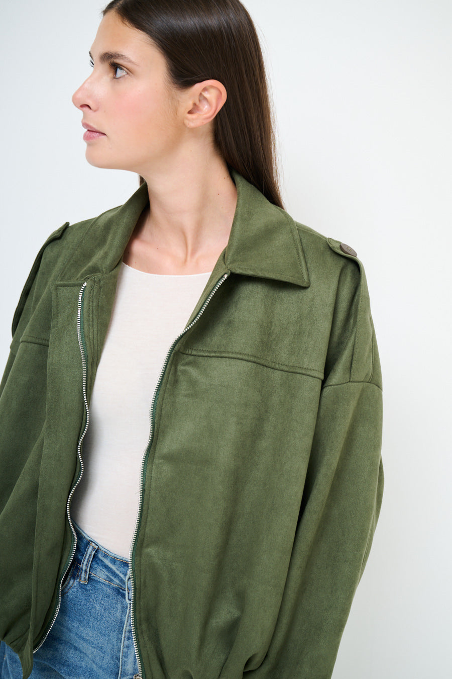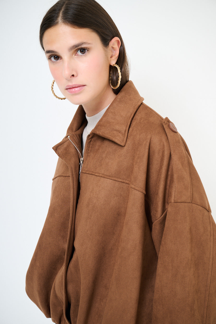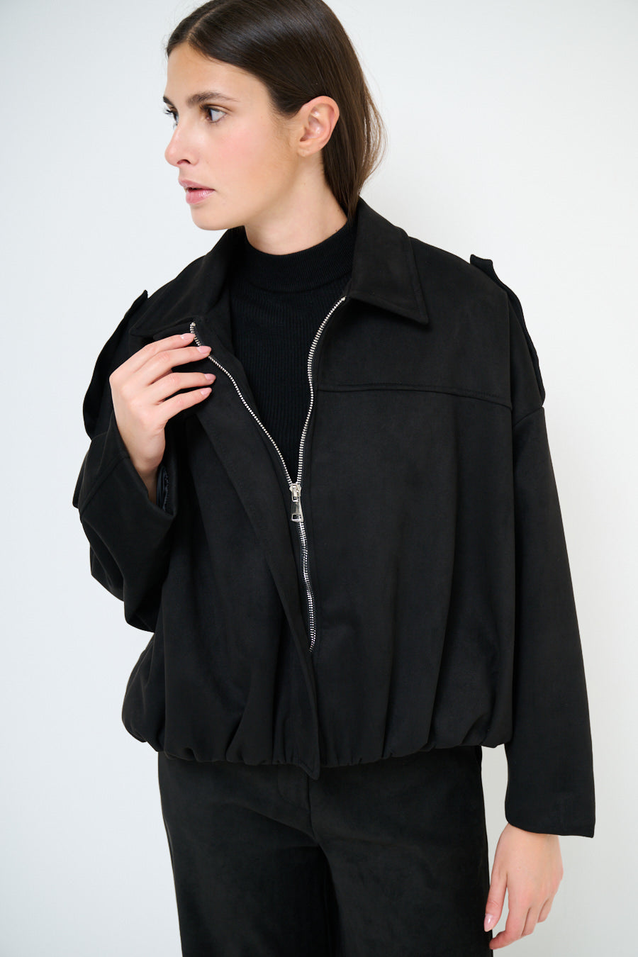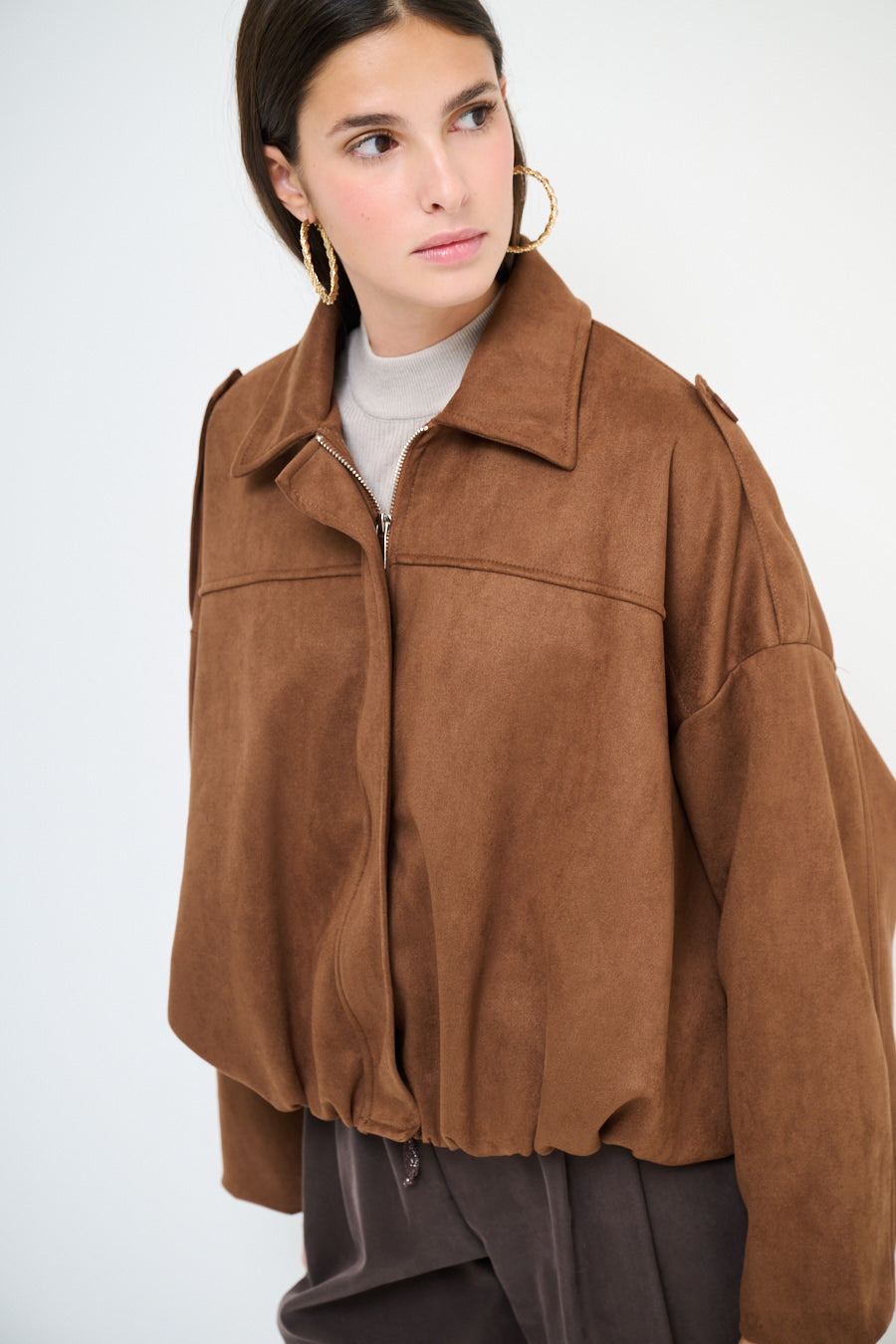Collared oversized zip front cropped jacket wholesale