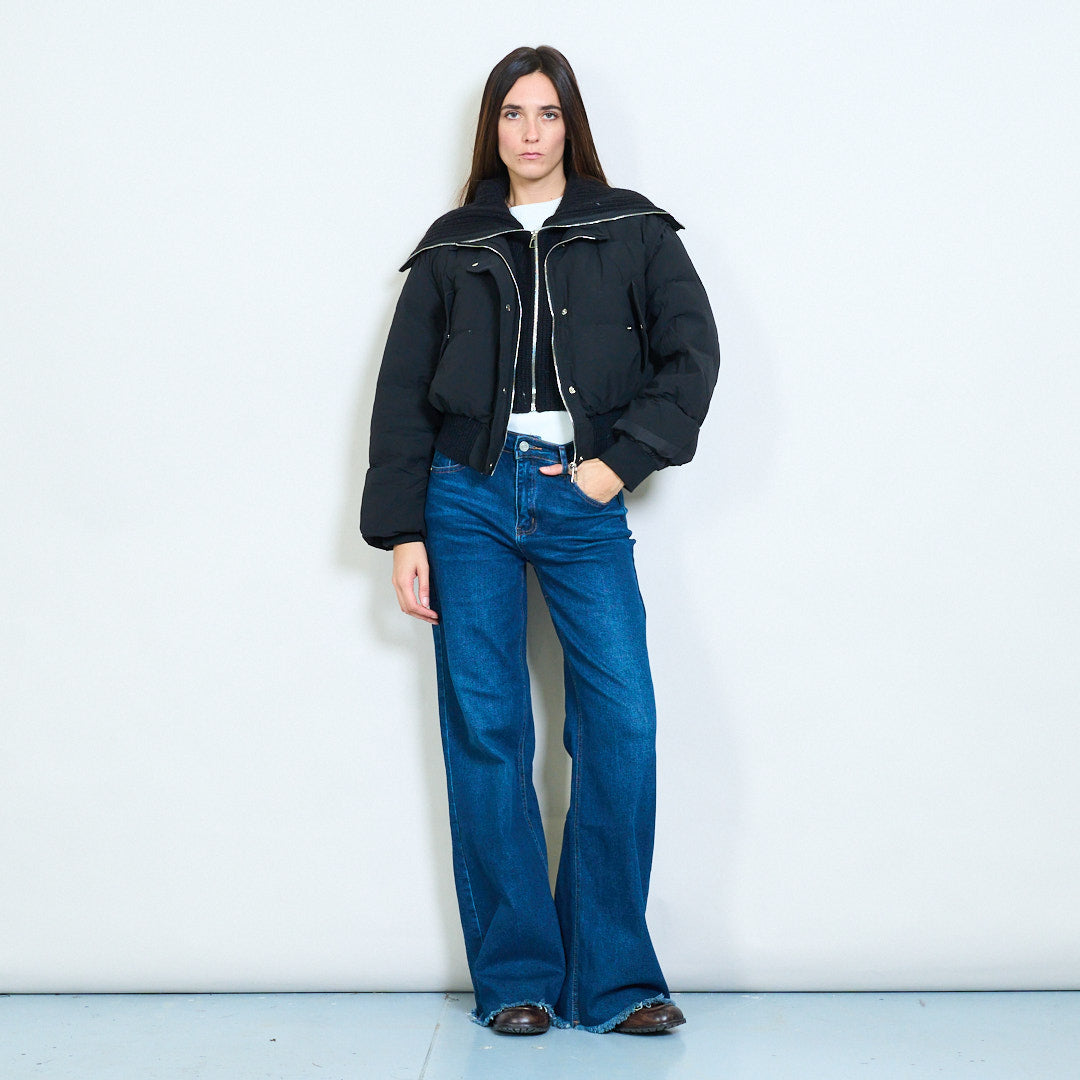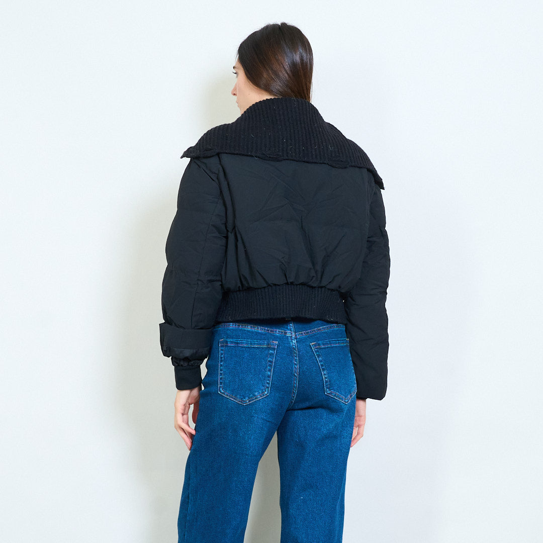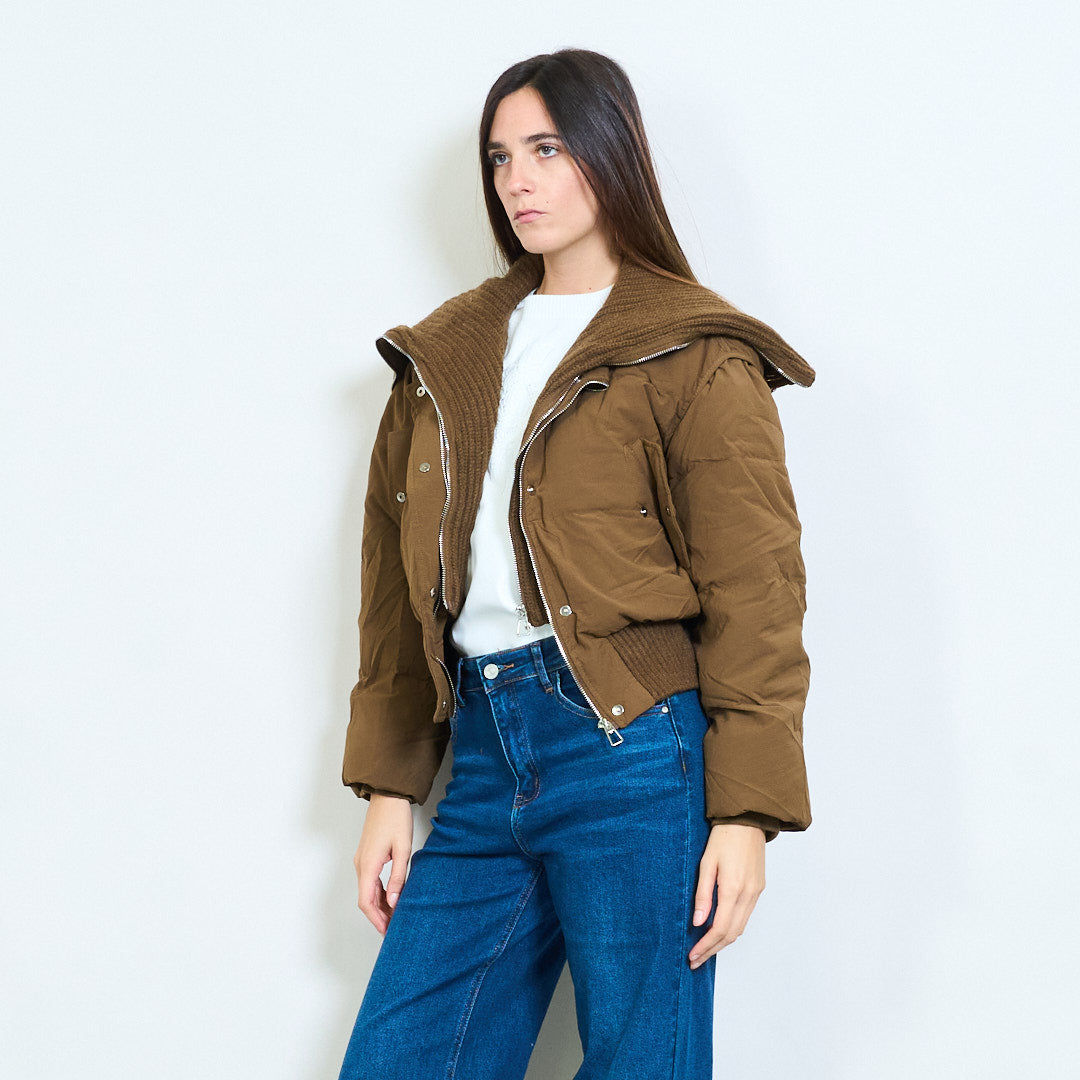 Cropped duck down jacket with ribbed collar and flap pockets wholesale