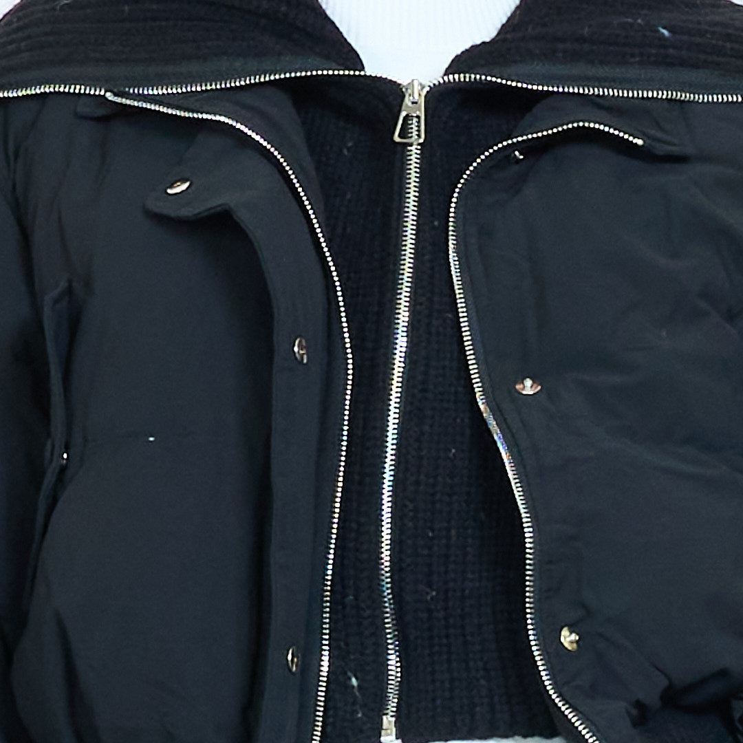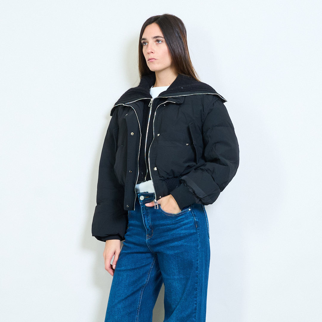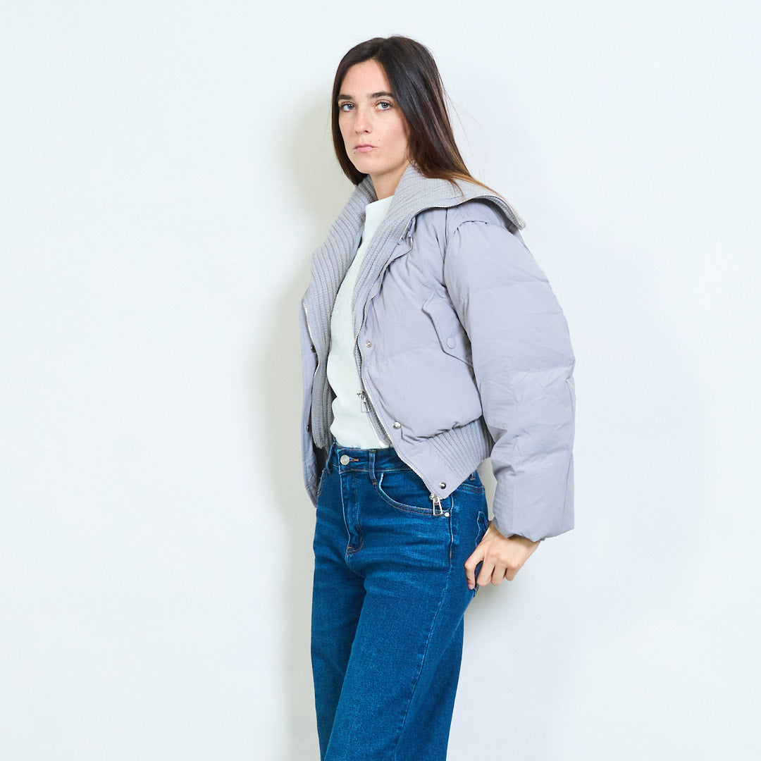 Cropped duck down jacket with ribbed collar and flap pockets wholesale
