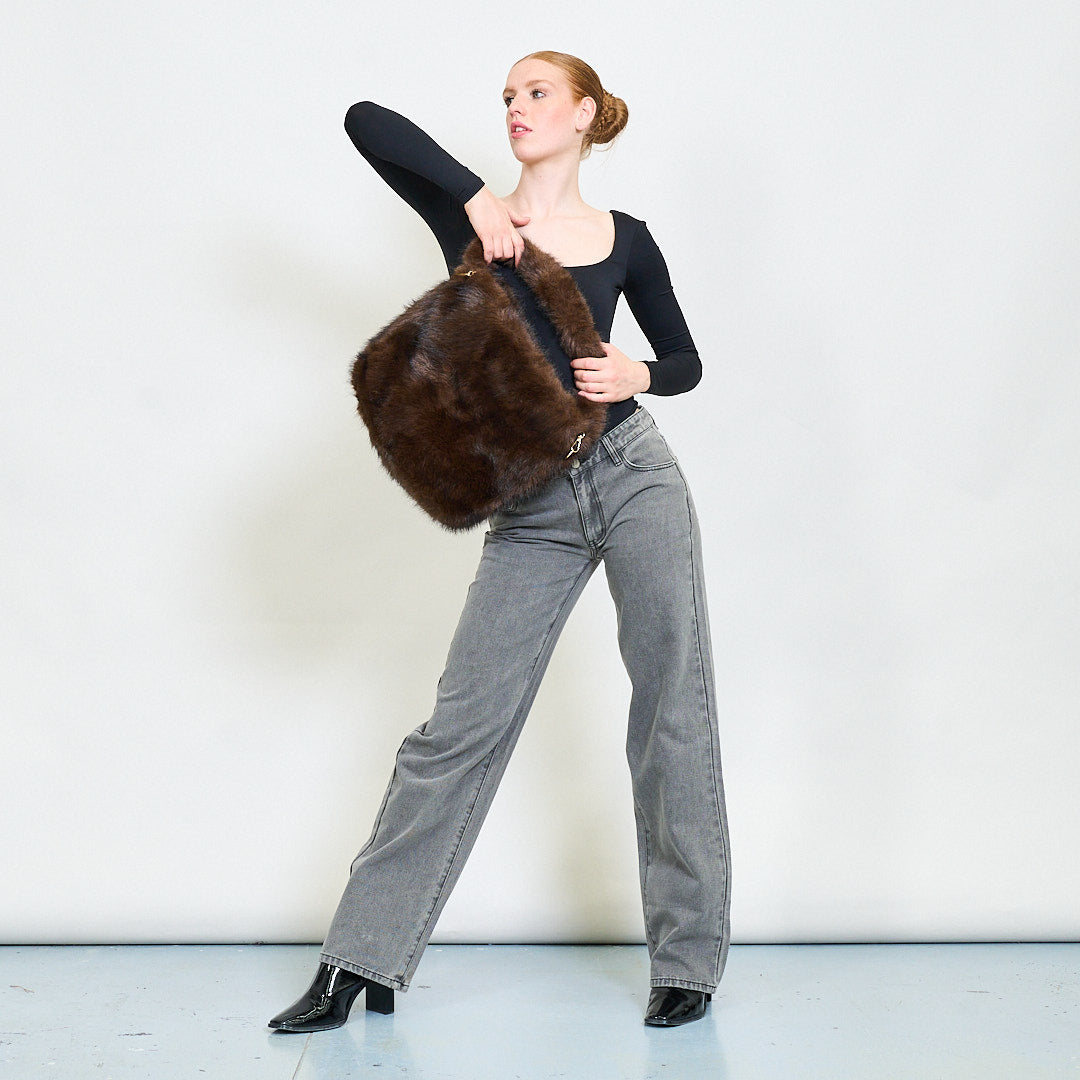 - Faux fur handle for dual carry option (shoulder or hand)