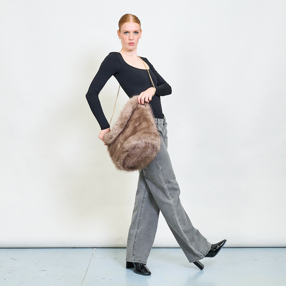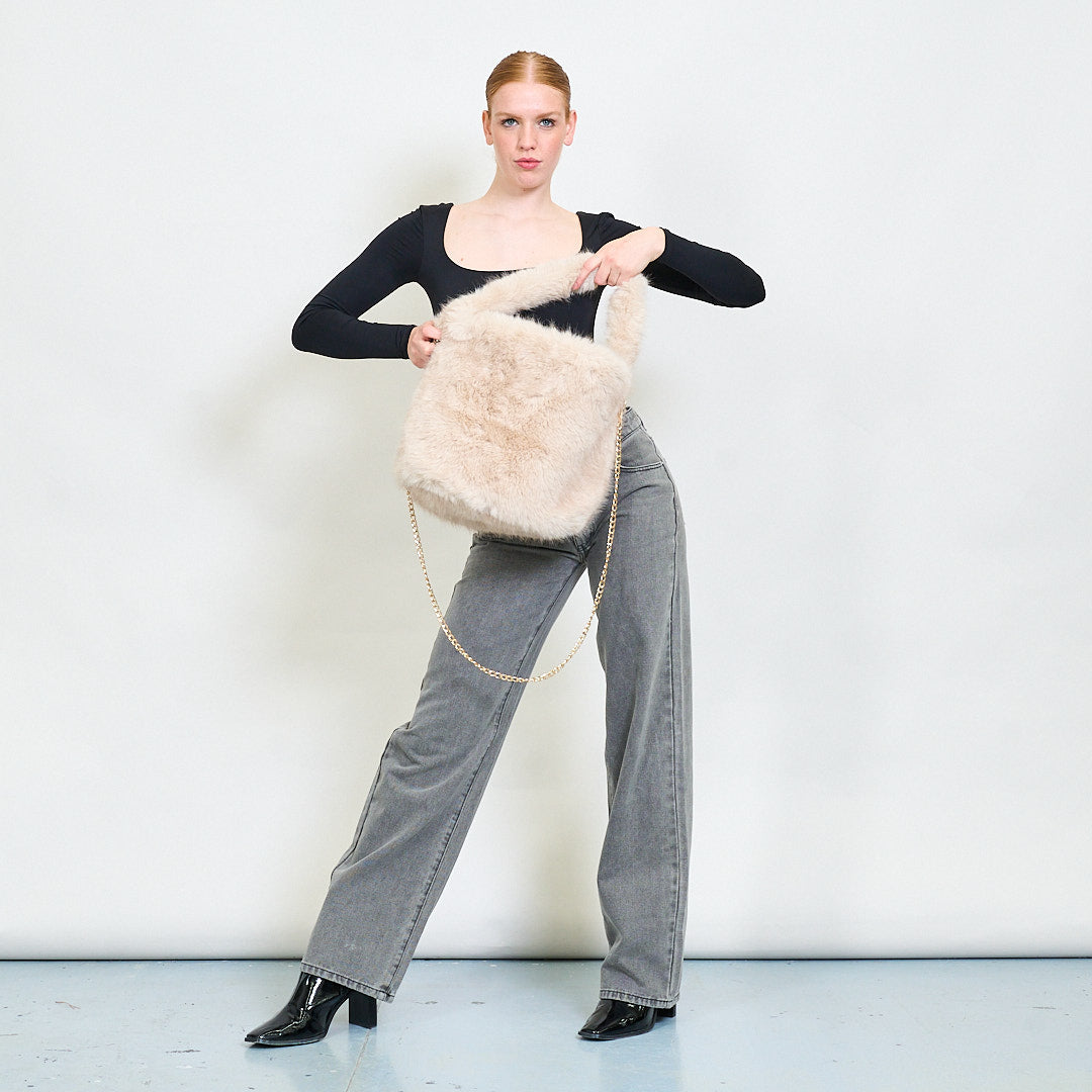 Mini faux fur shoulder bag with gold chain strap wholesale