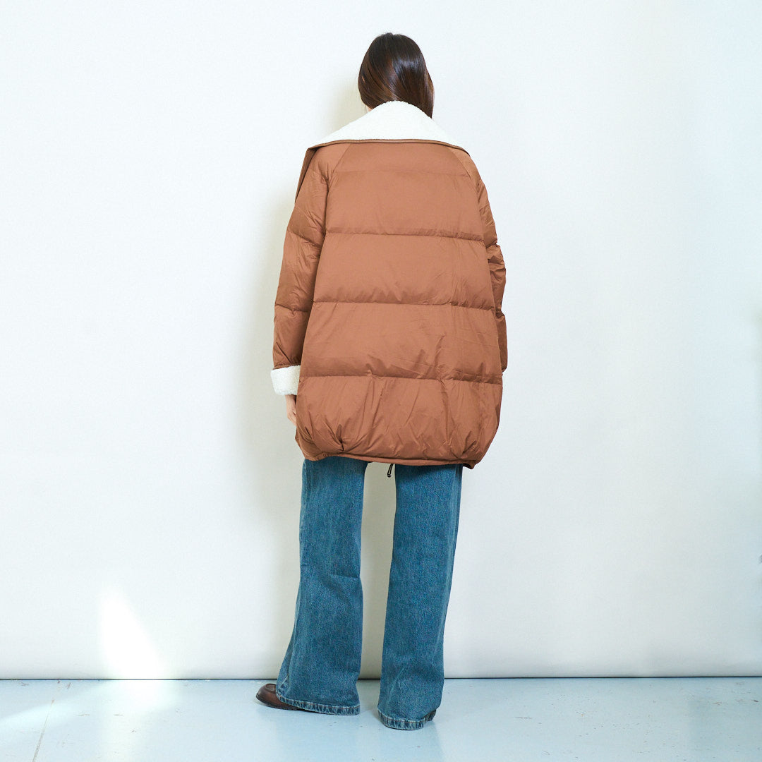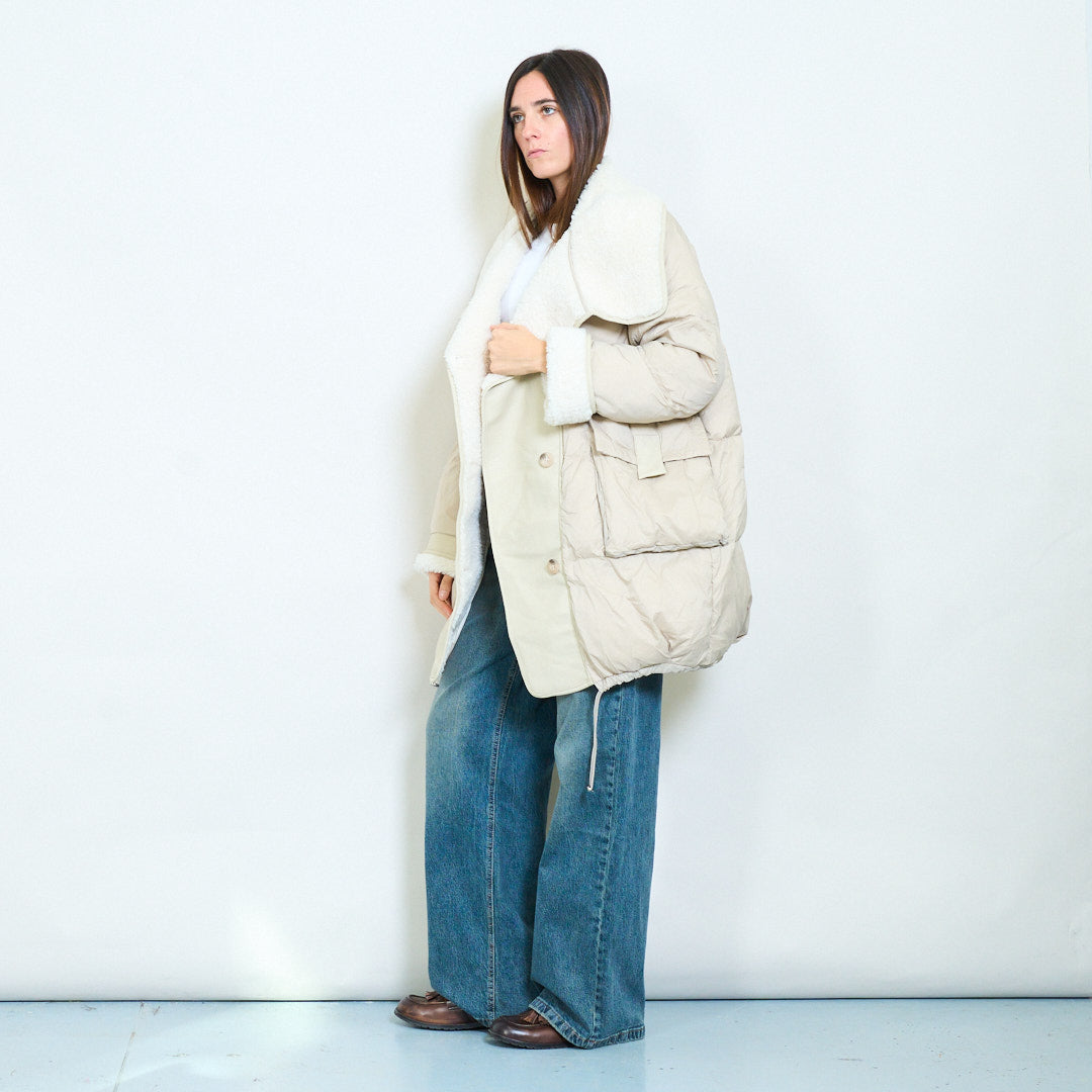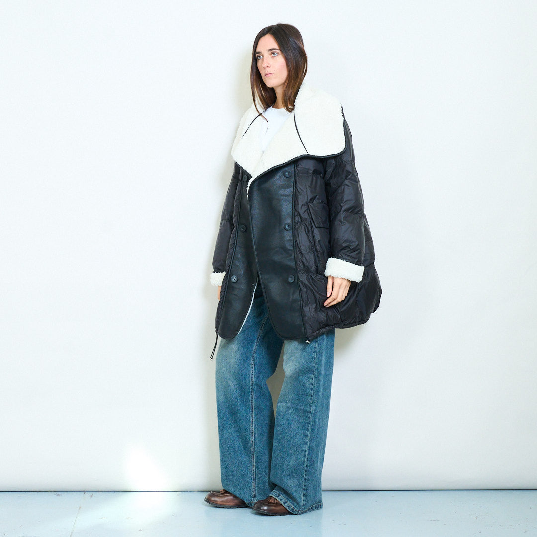 Oversized duck down double-breasted coat with faux shearling collar wholesale
