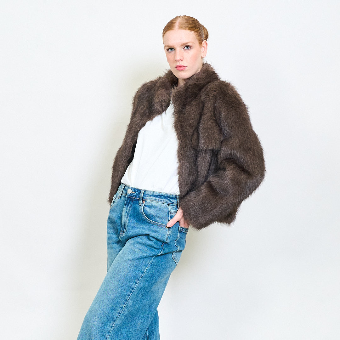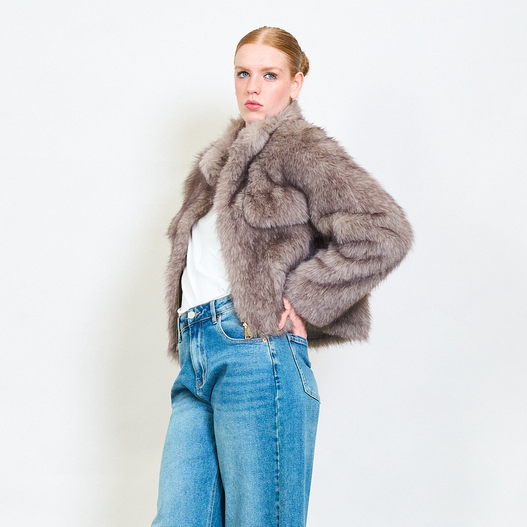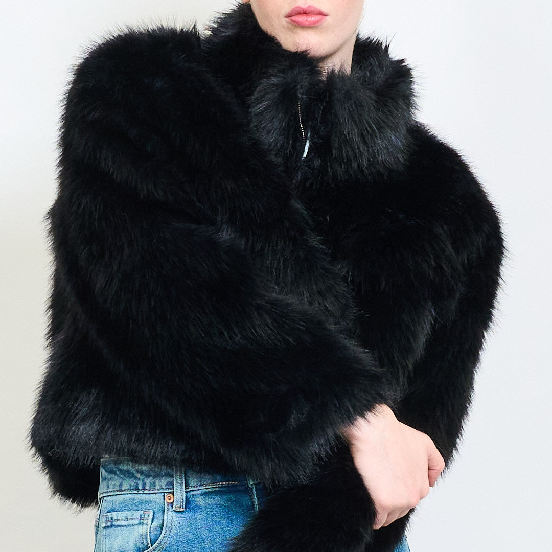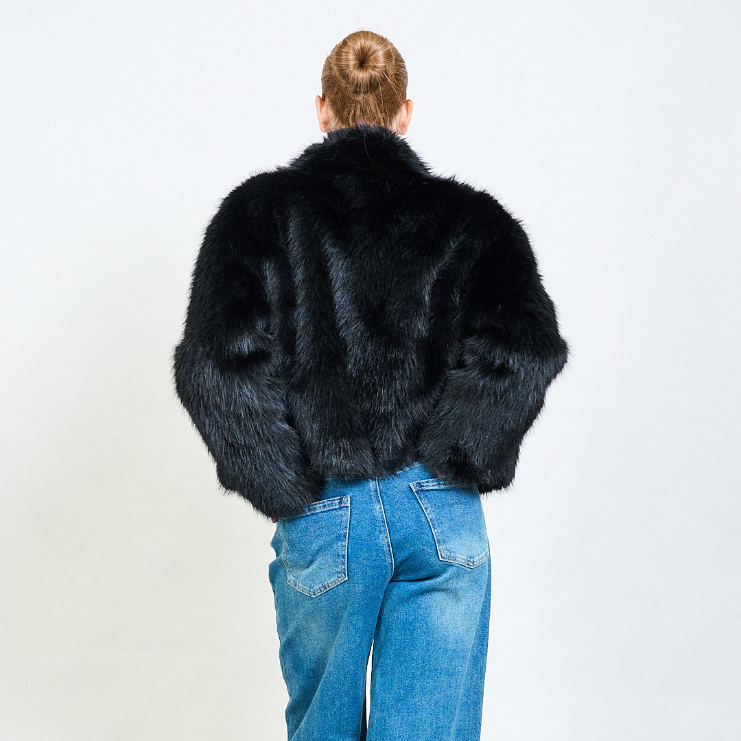 Plush faux fur cropped jacket with pocket flaps wholesale