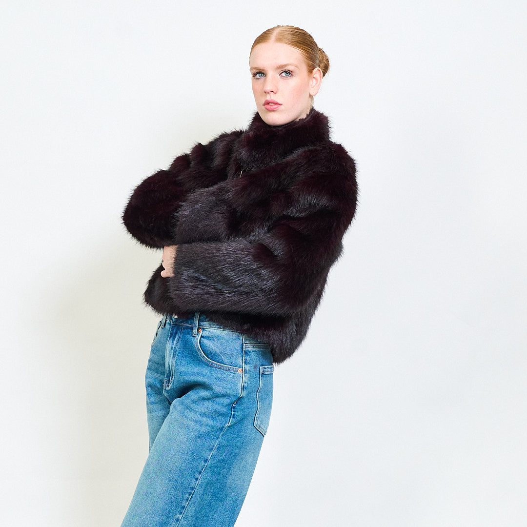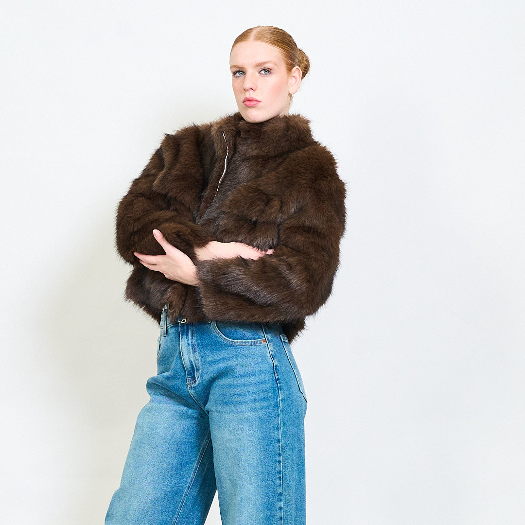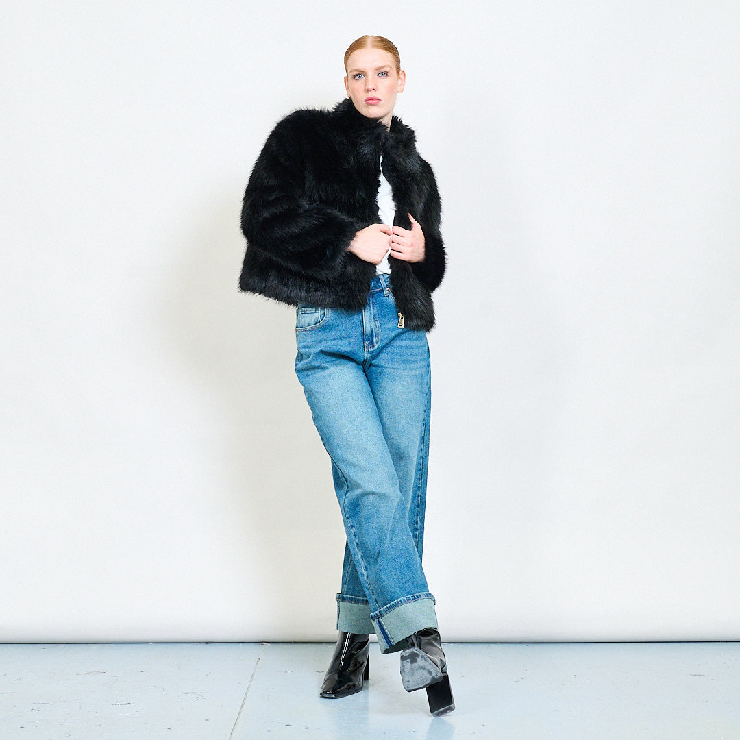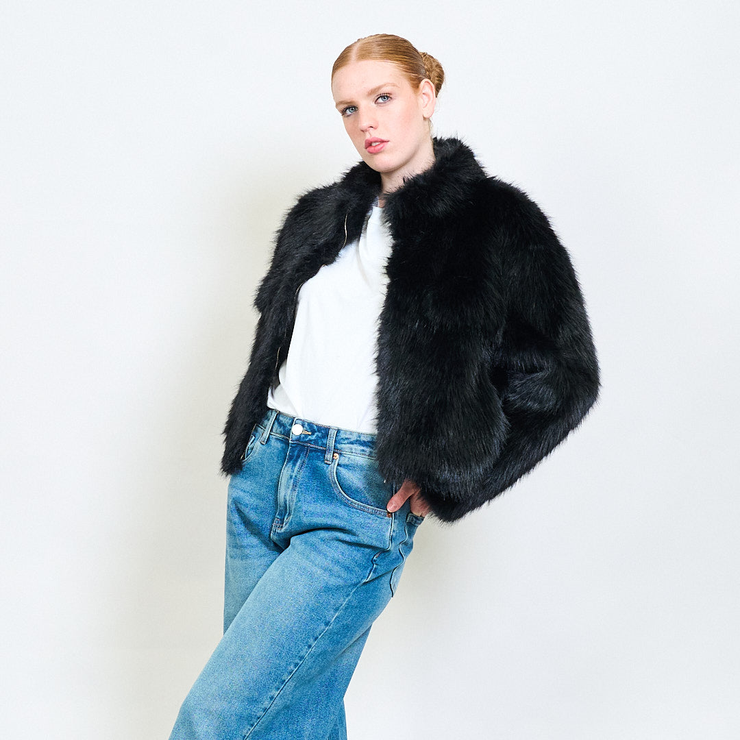 Plush faux fur cropped jacket with pocket flaps wholesale
