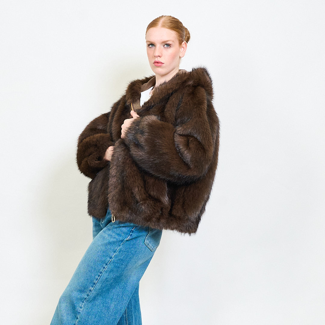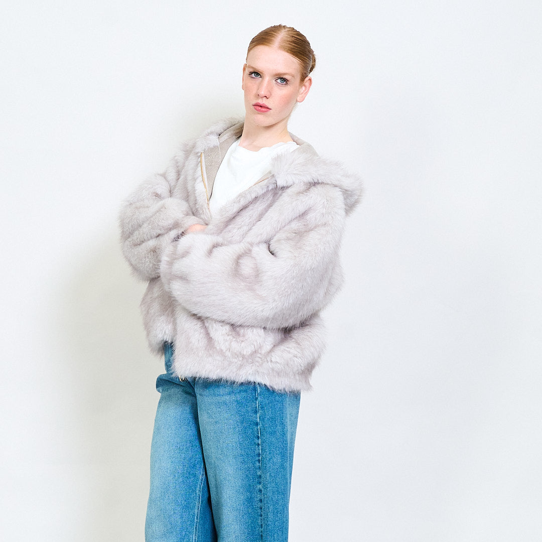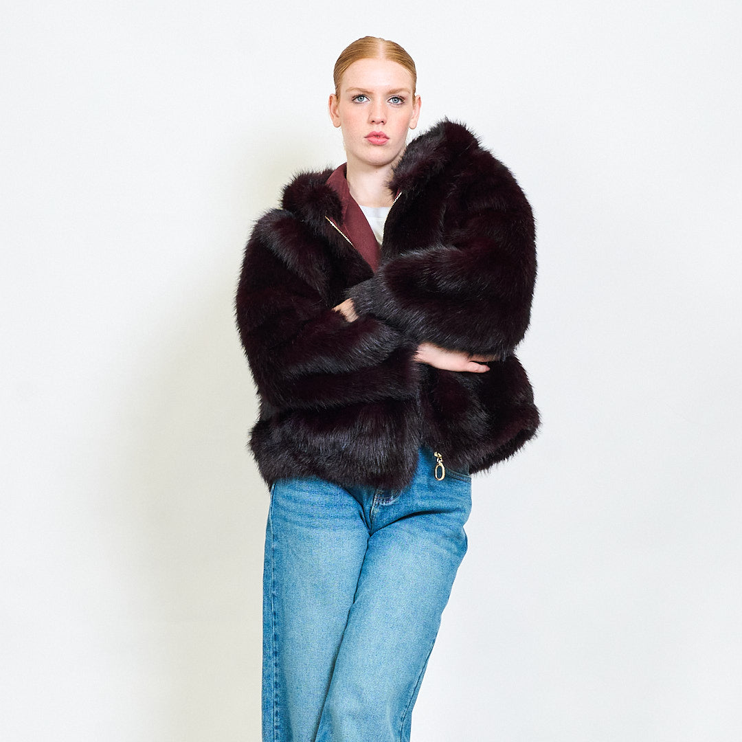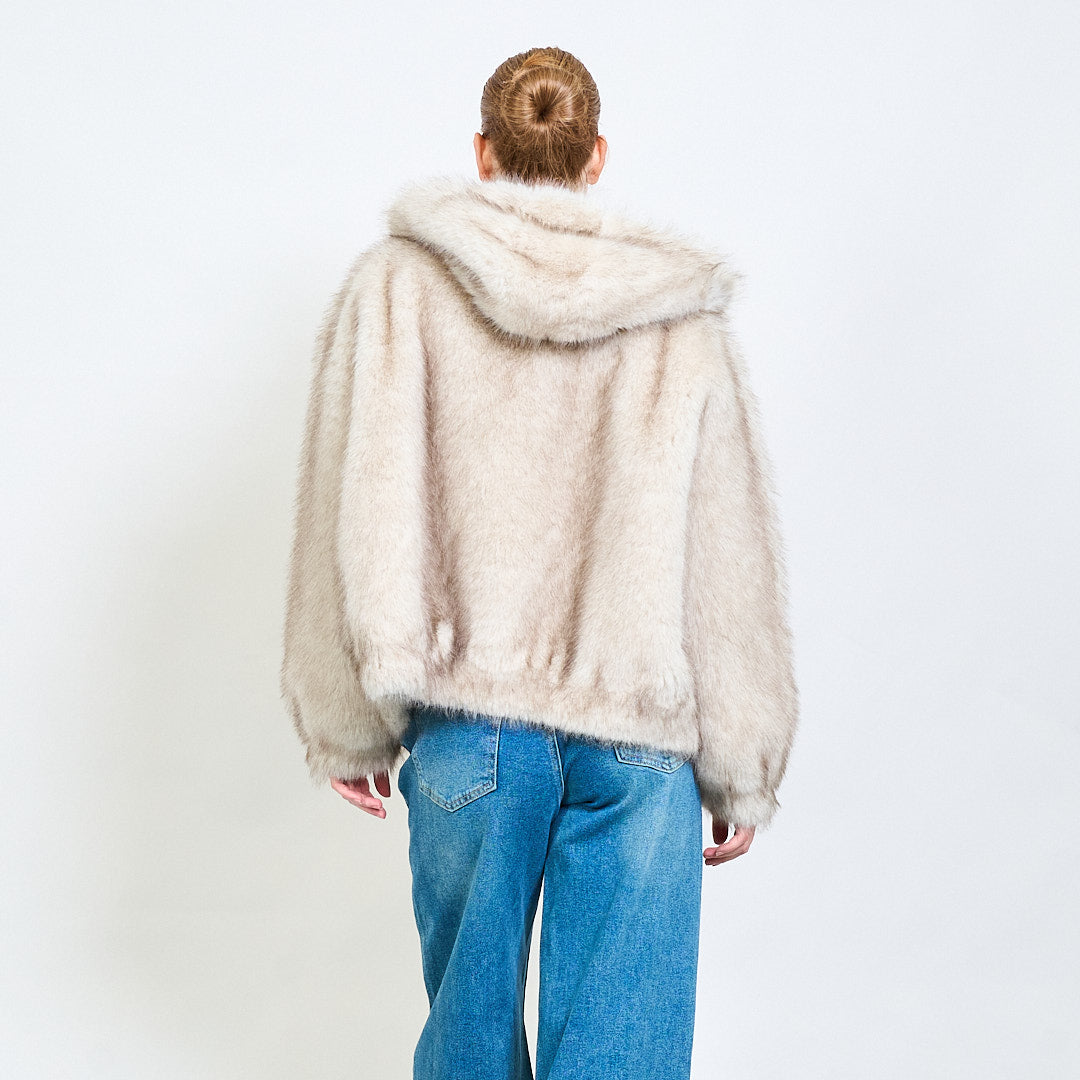 Zipped eco fur short hoodie jacket wholesale