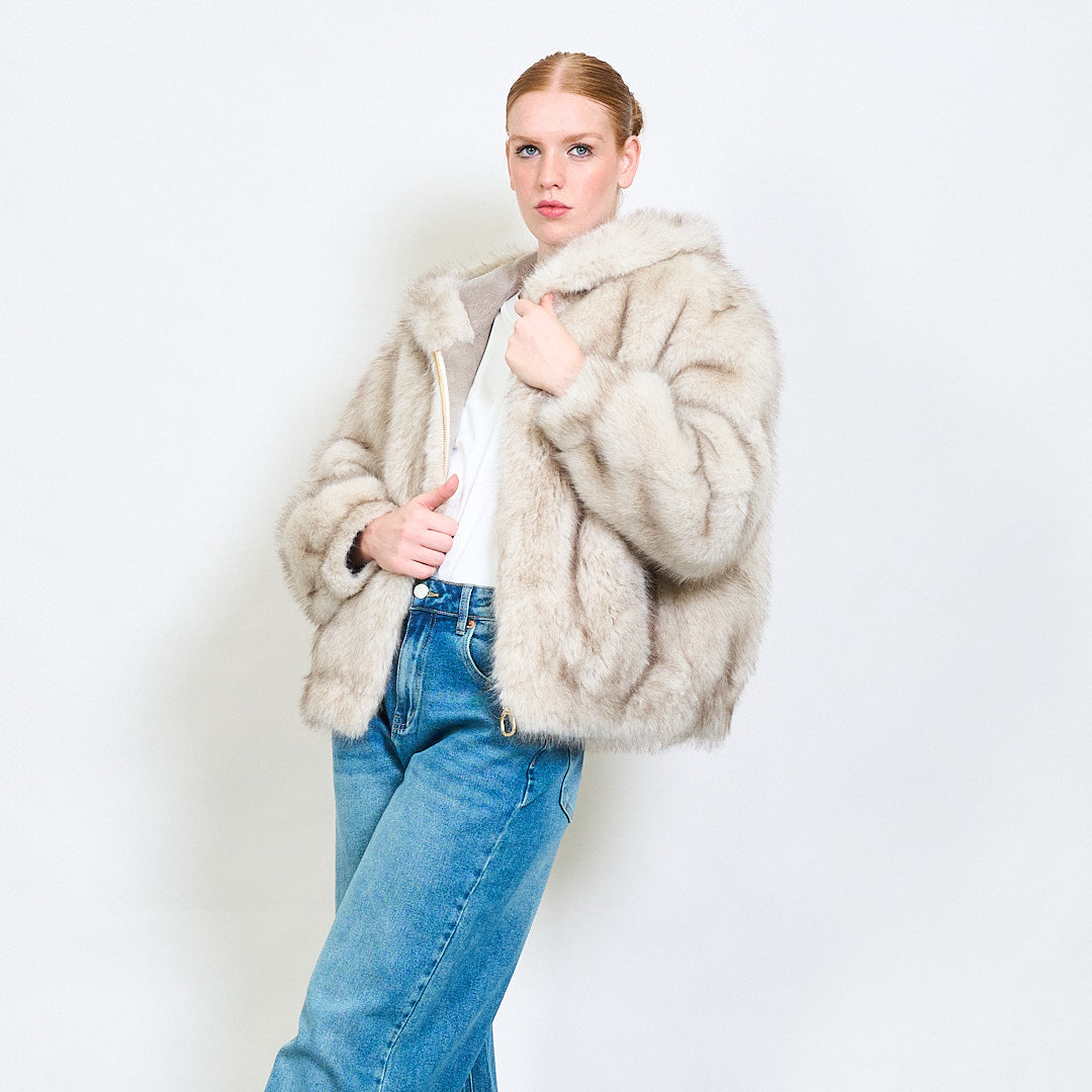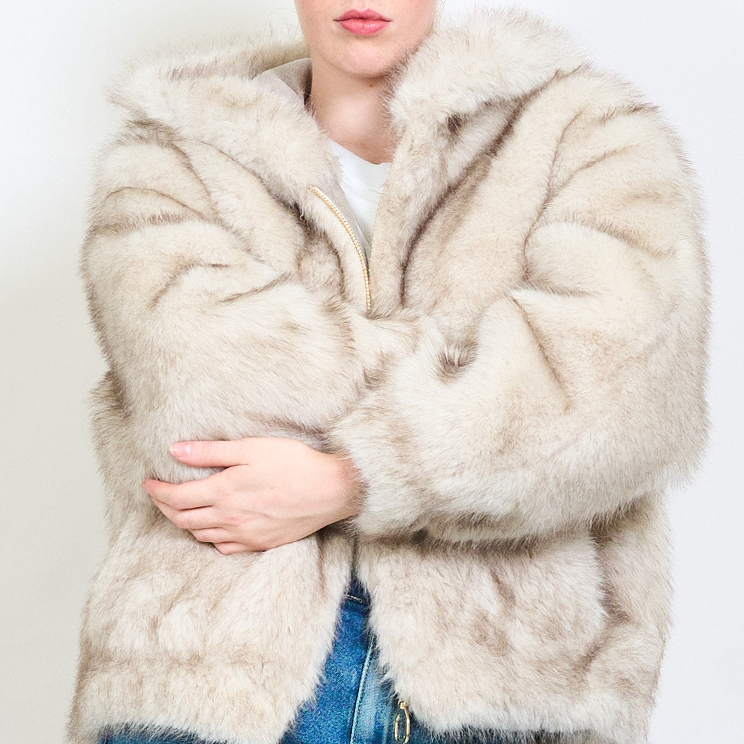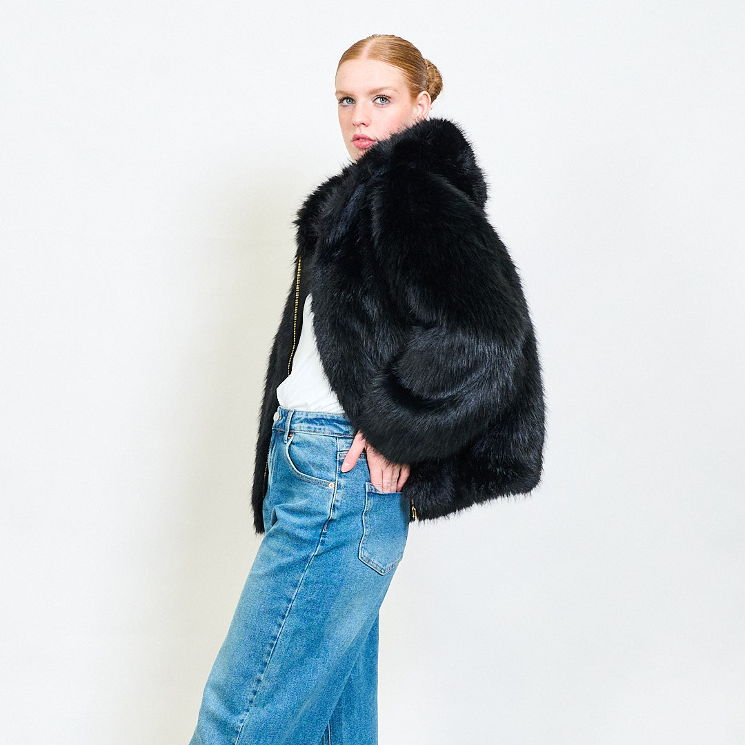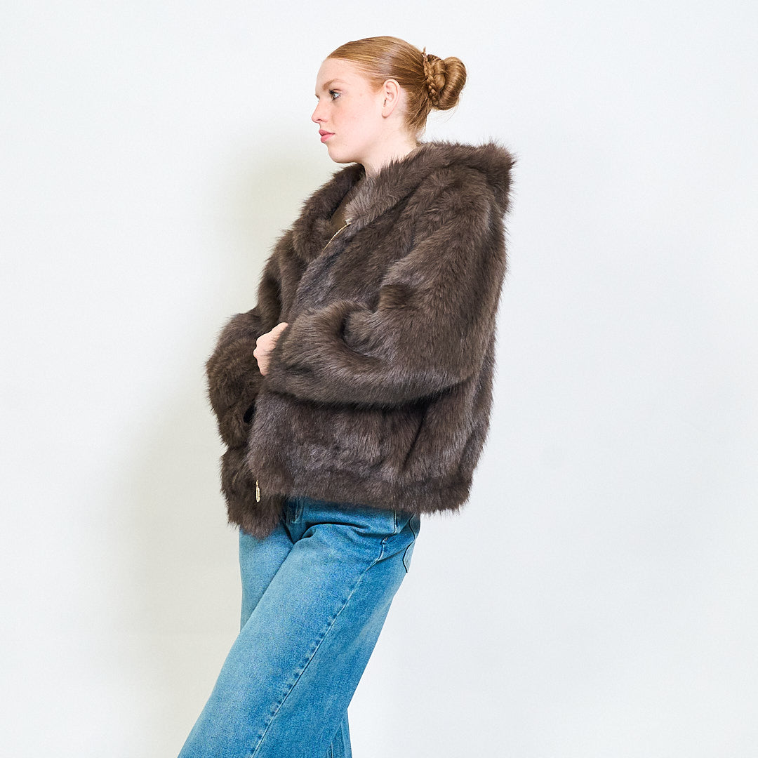 Zipped eco fur short hoodie jacket wholesale