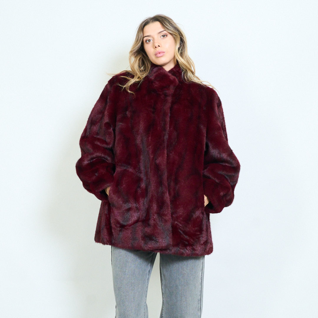 - Luxurious faux fur coat with a soft plush texture for a premium feel