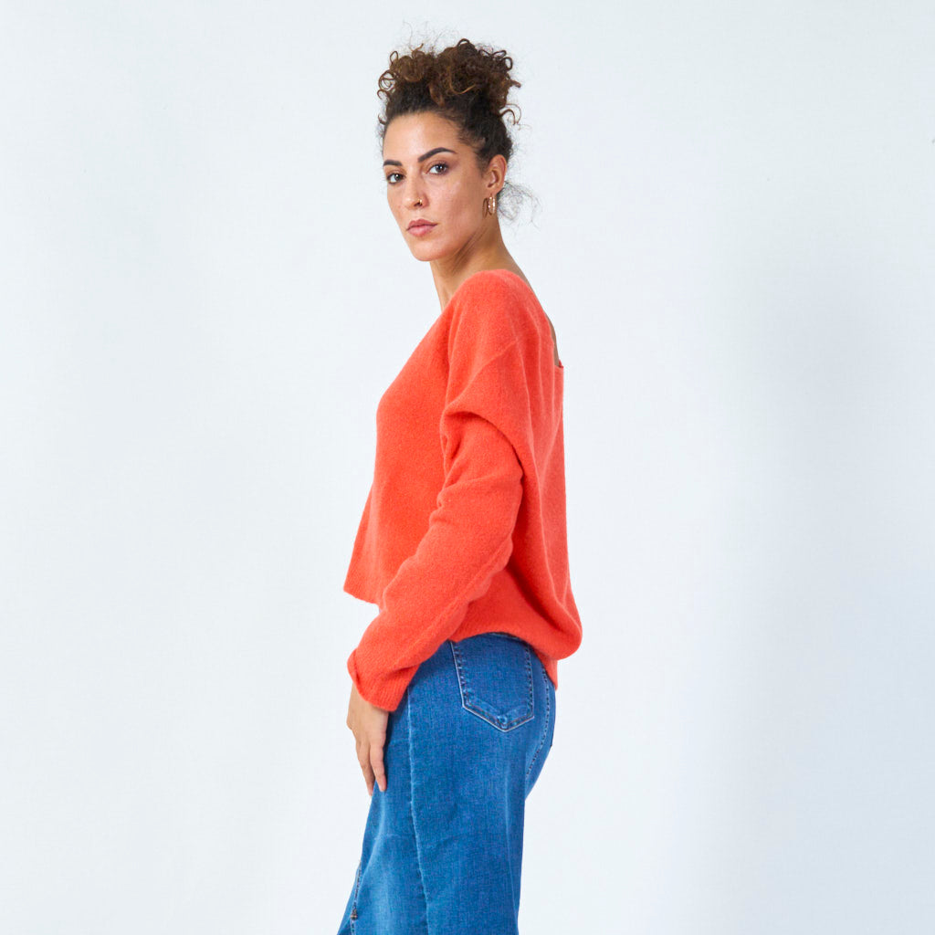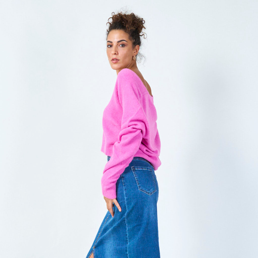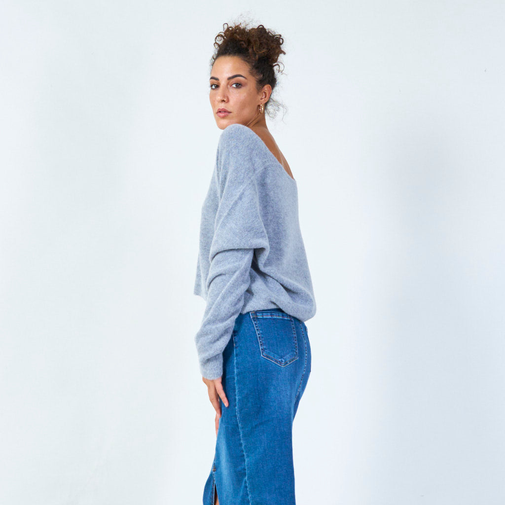 - Deep v-neckline for a chic look