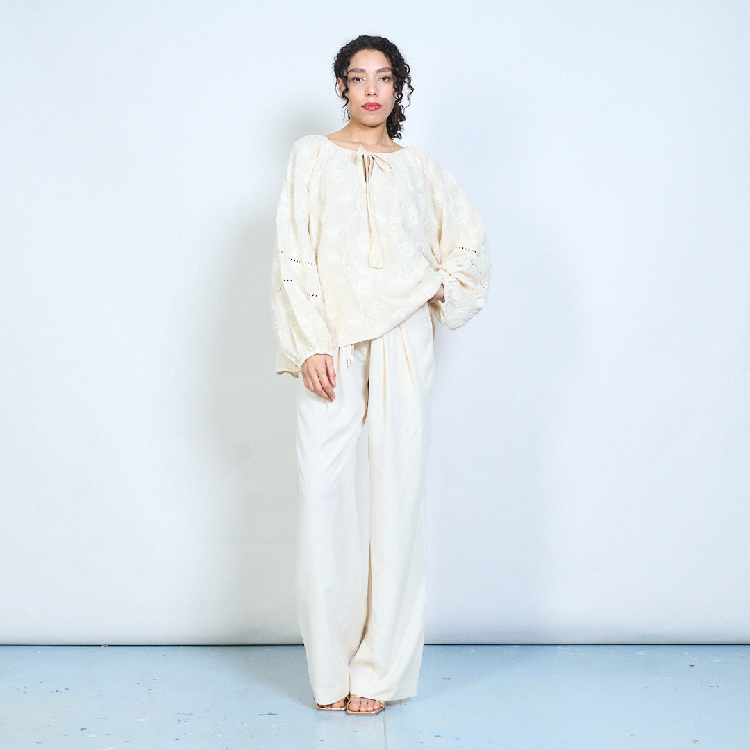 - Tassel tie round neckline