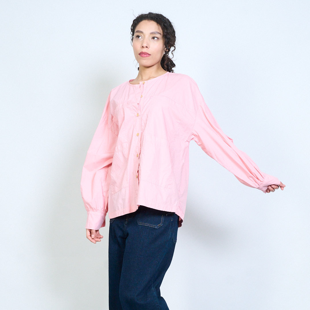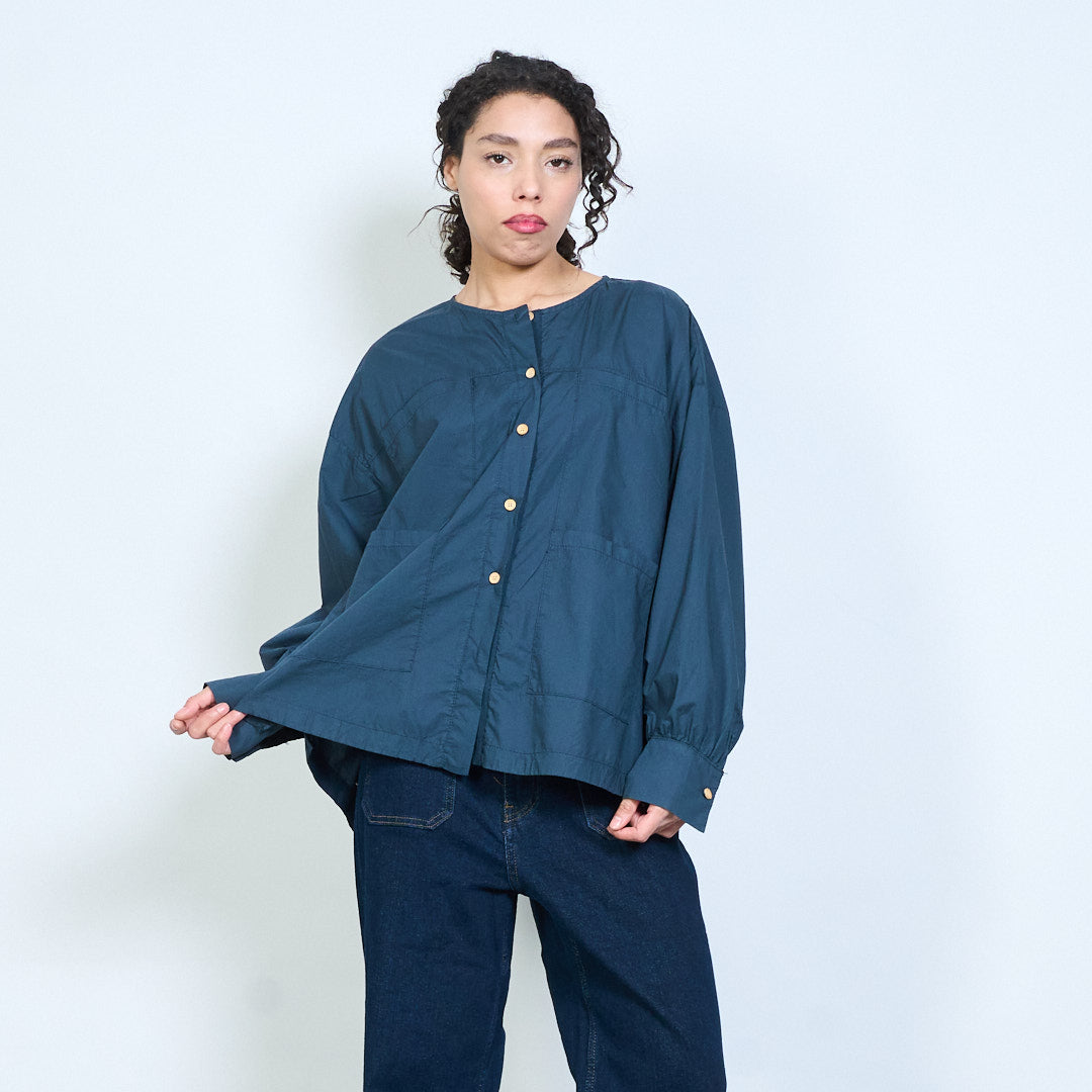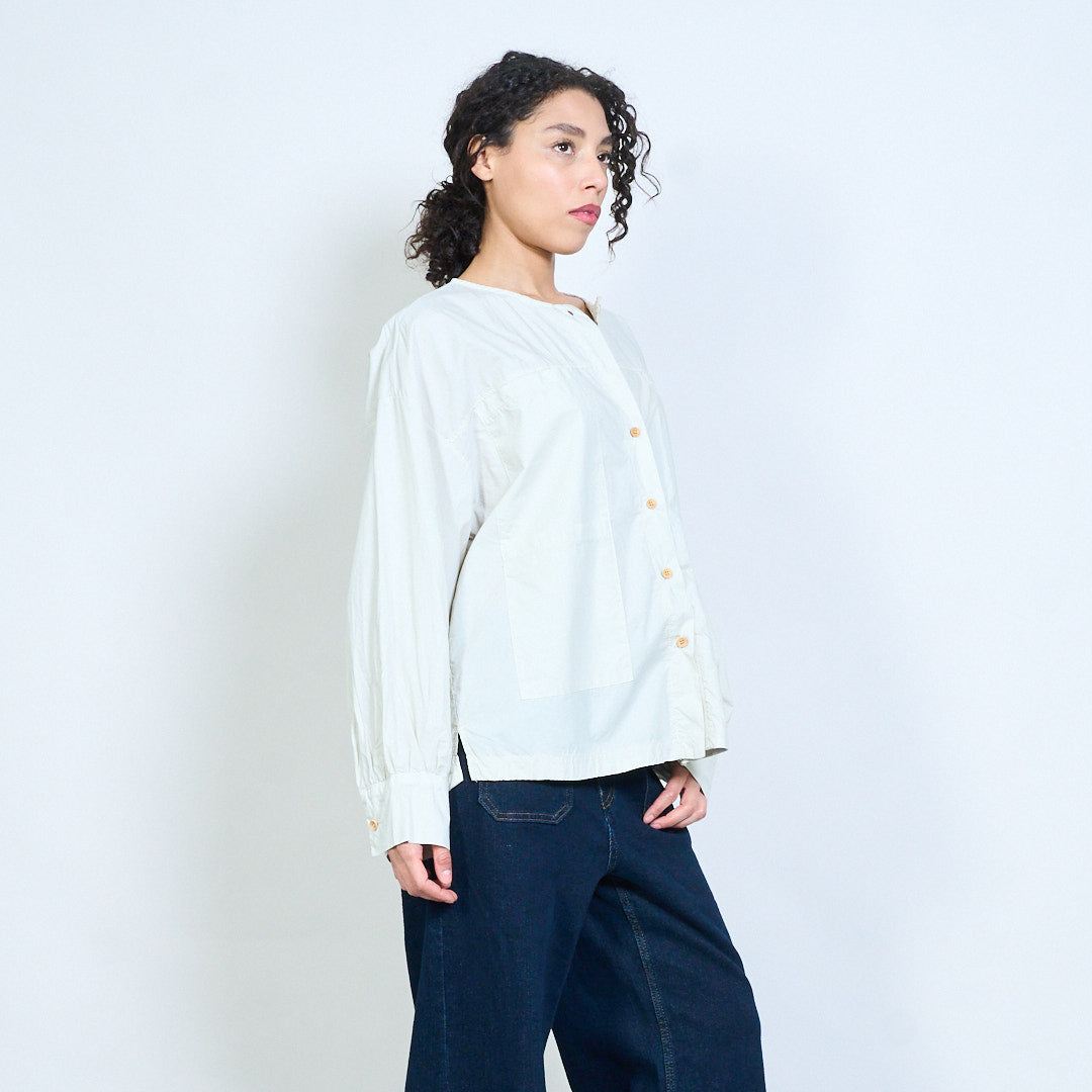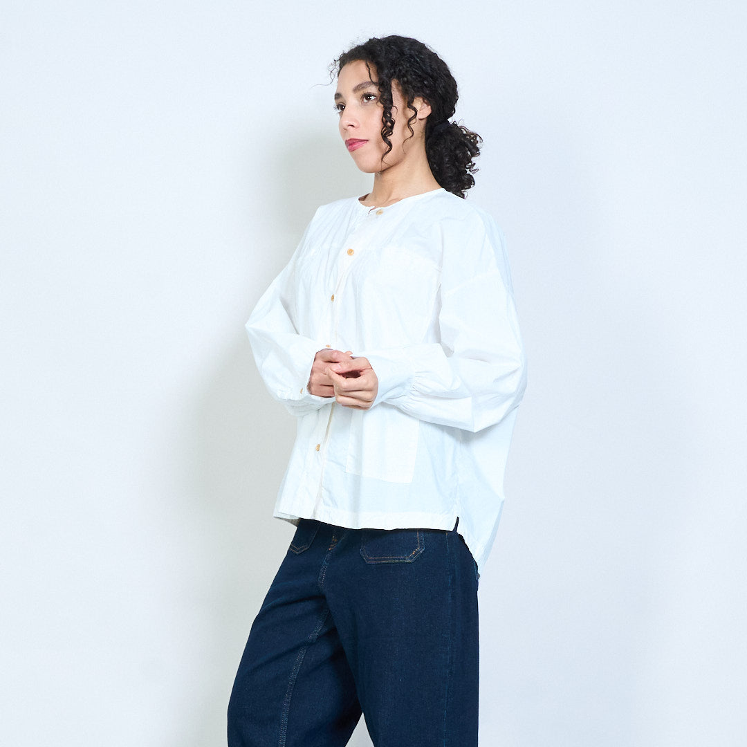 Minimalist round neckline button-down long sleeve relaxed blouse wholesale