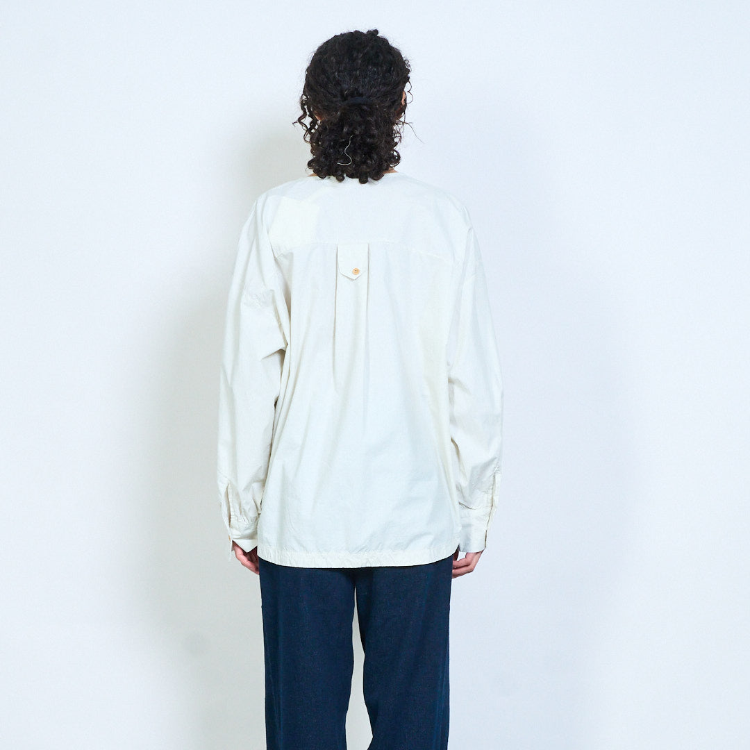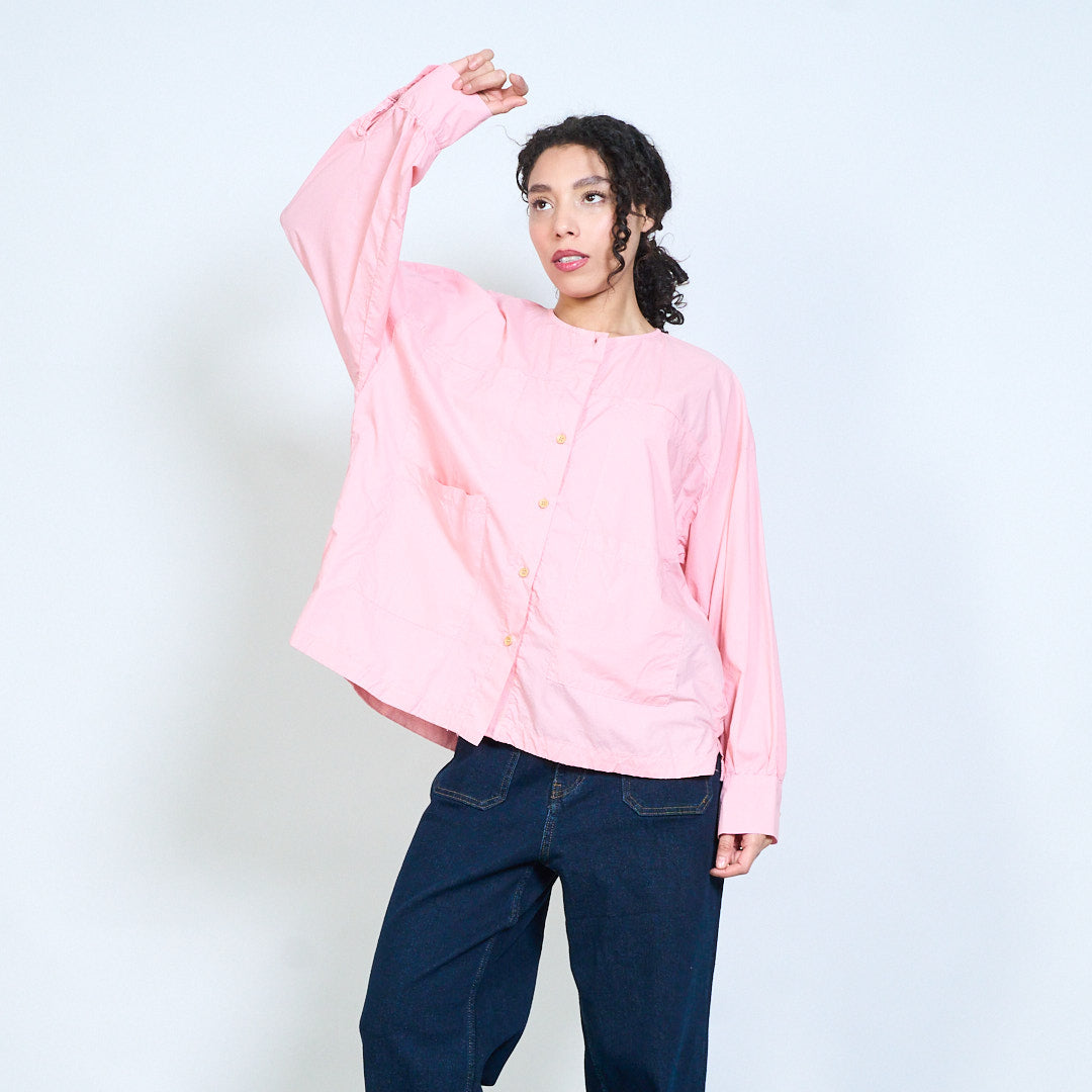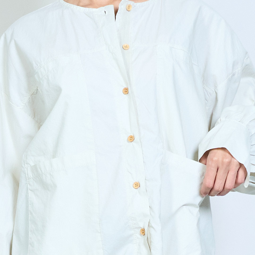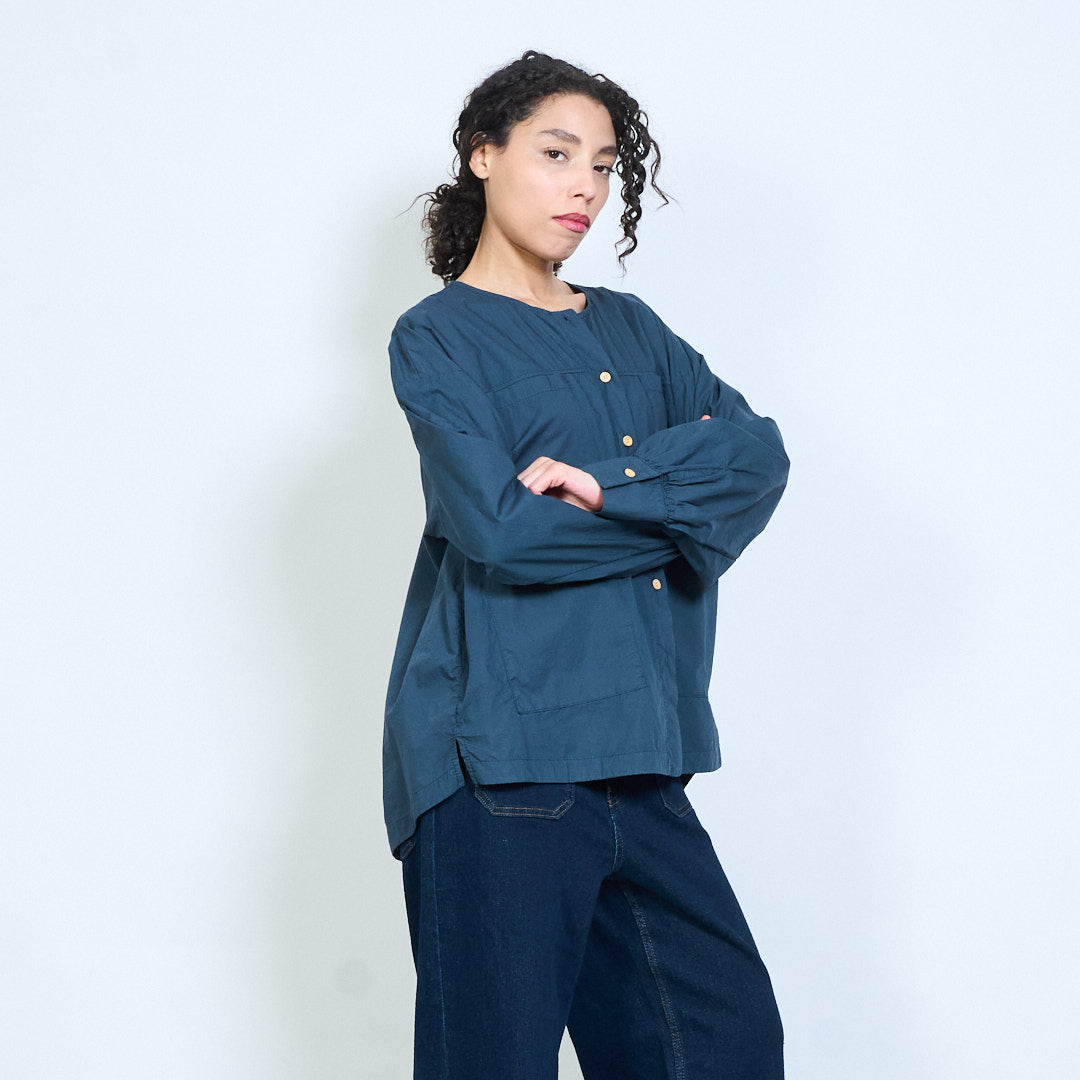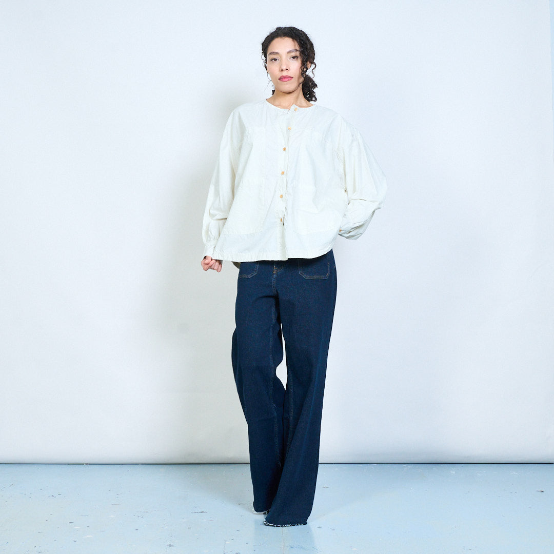 Minimalist round neckline button-down long sleeve relaxed blouse wholesale