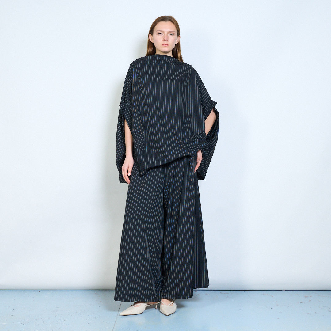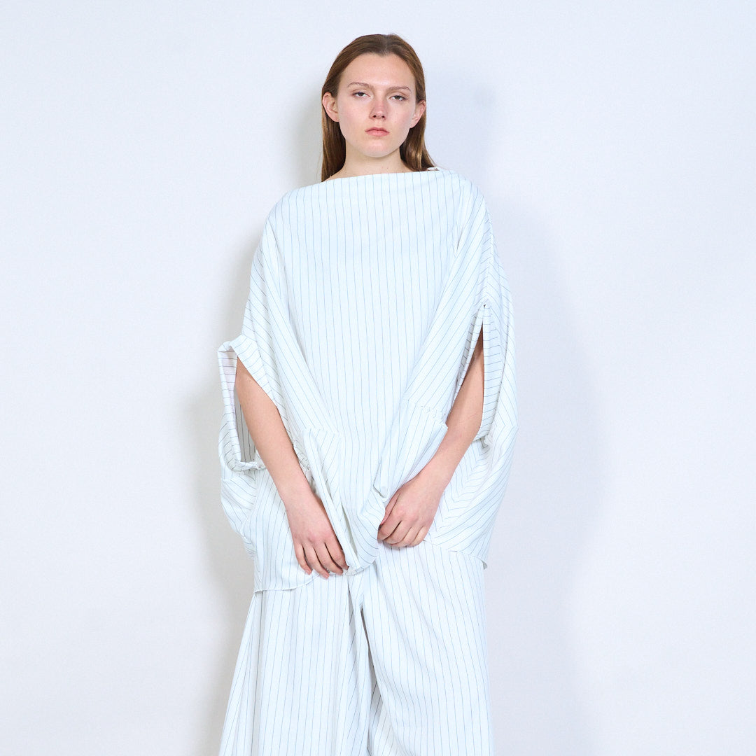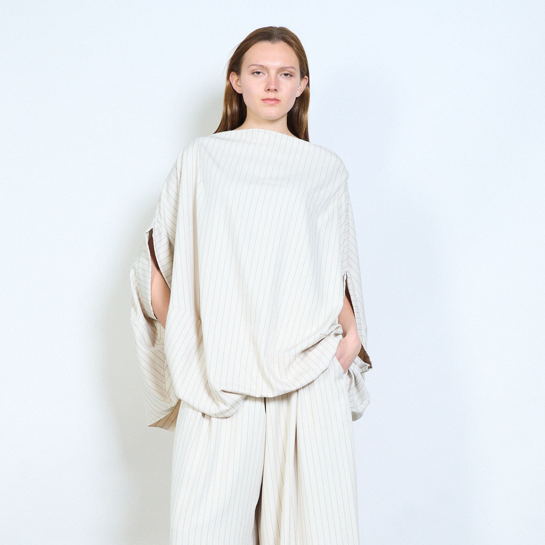 Soft drape pinstripe linen blouse wholesale