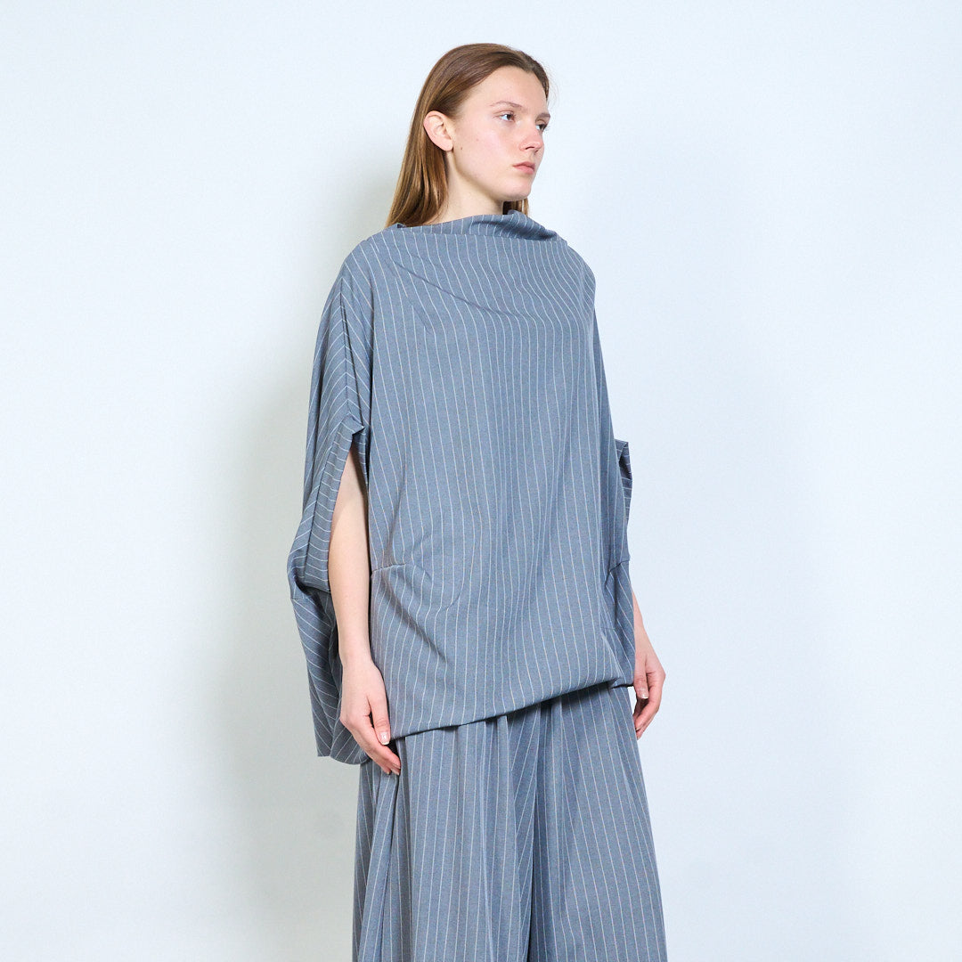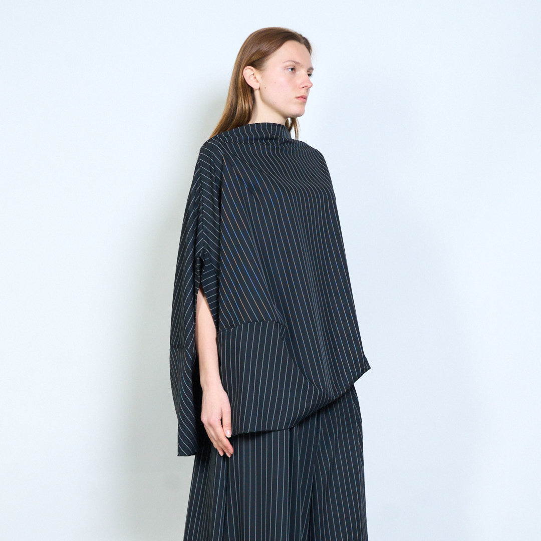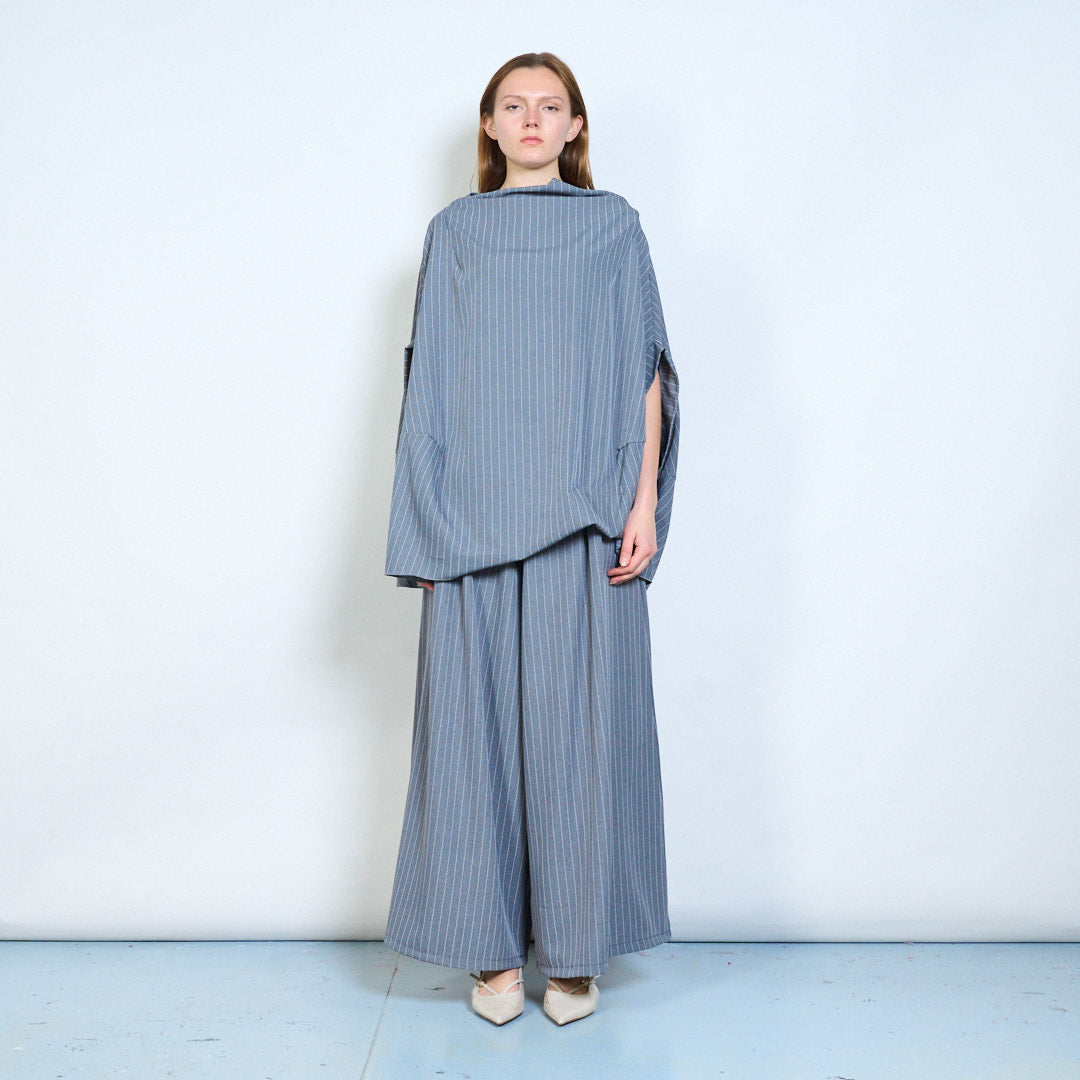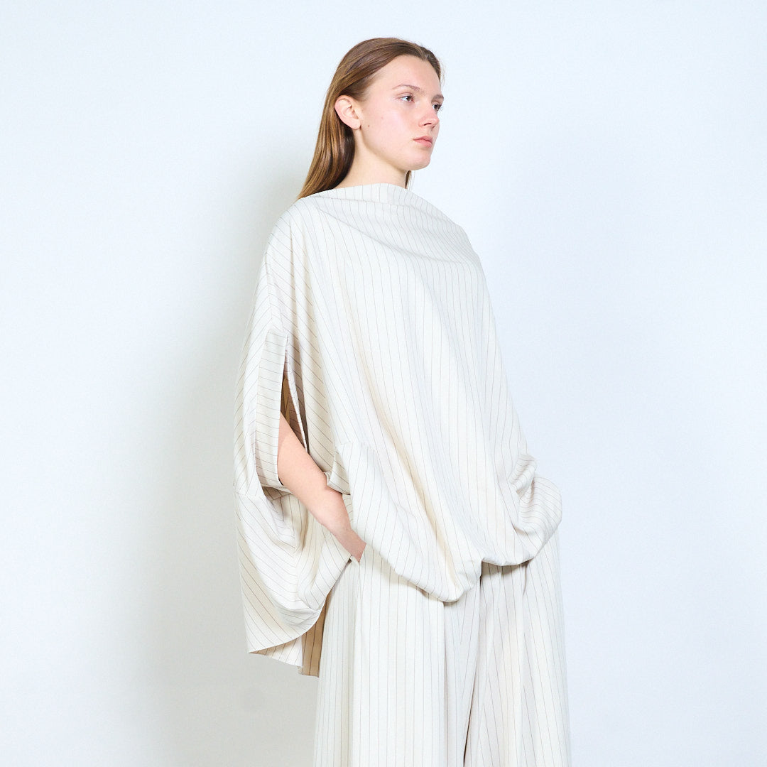Soft drape pinstripe linen blouse wholesale