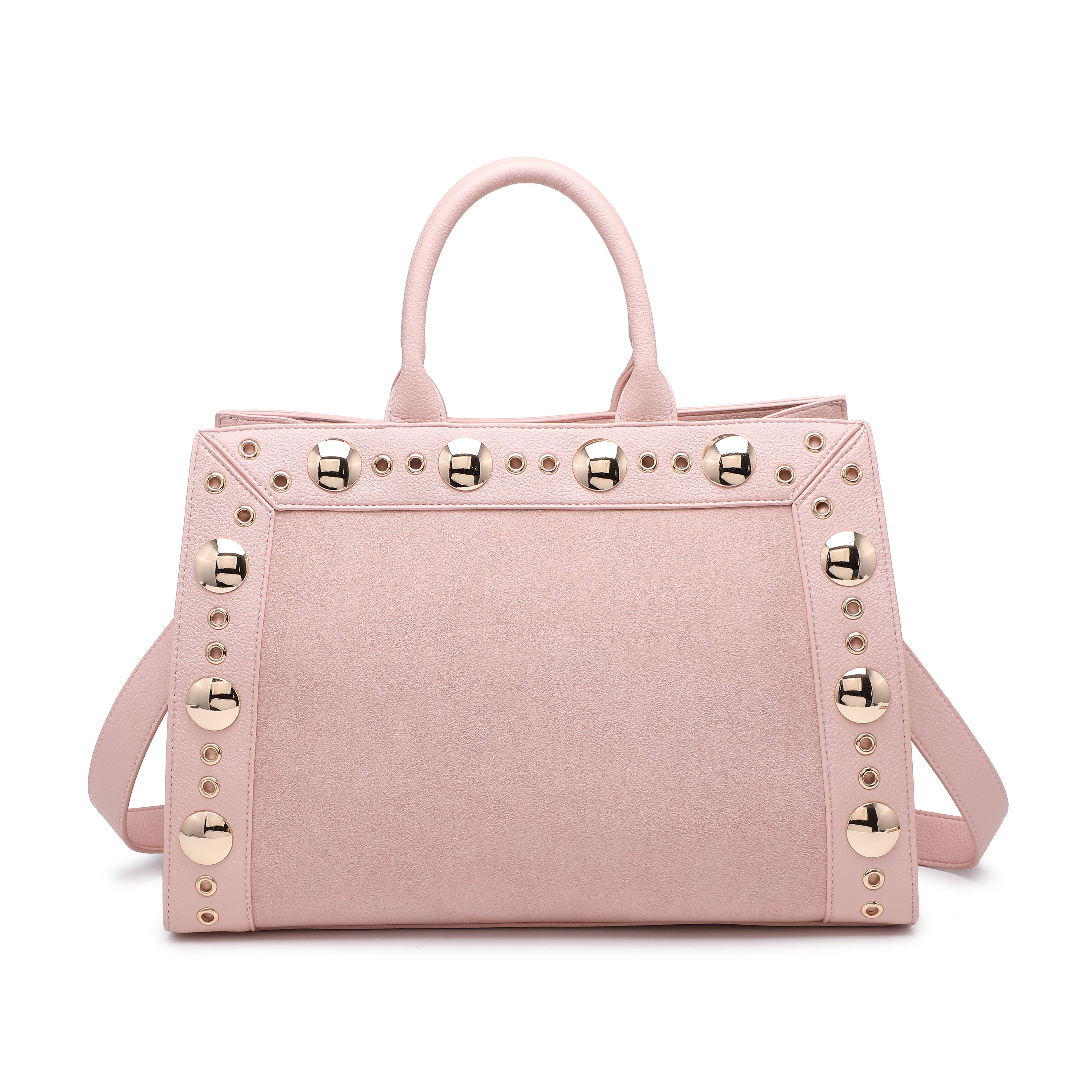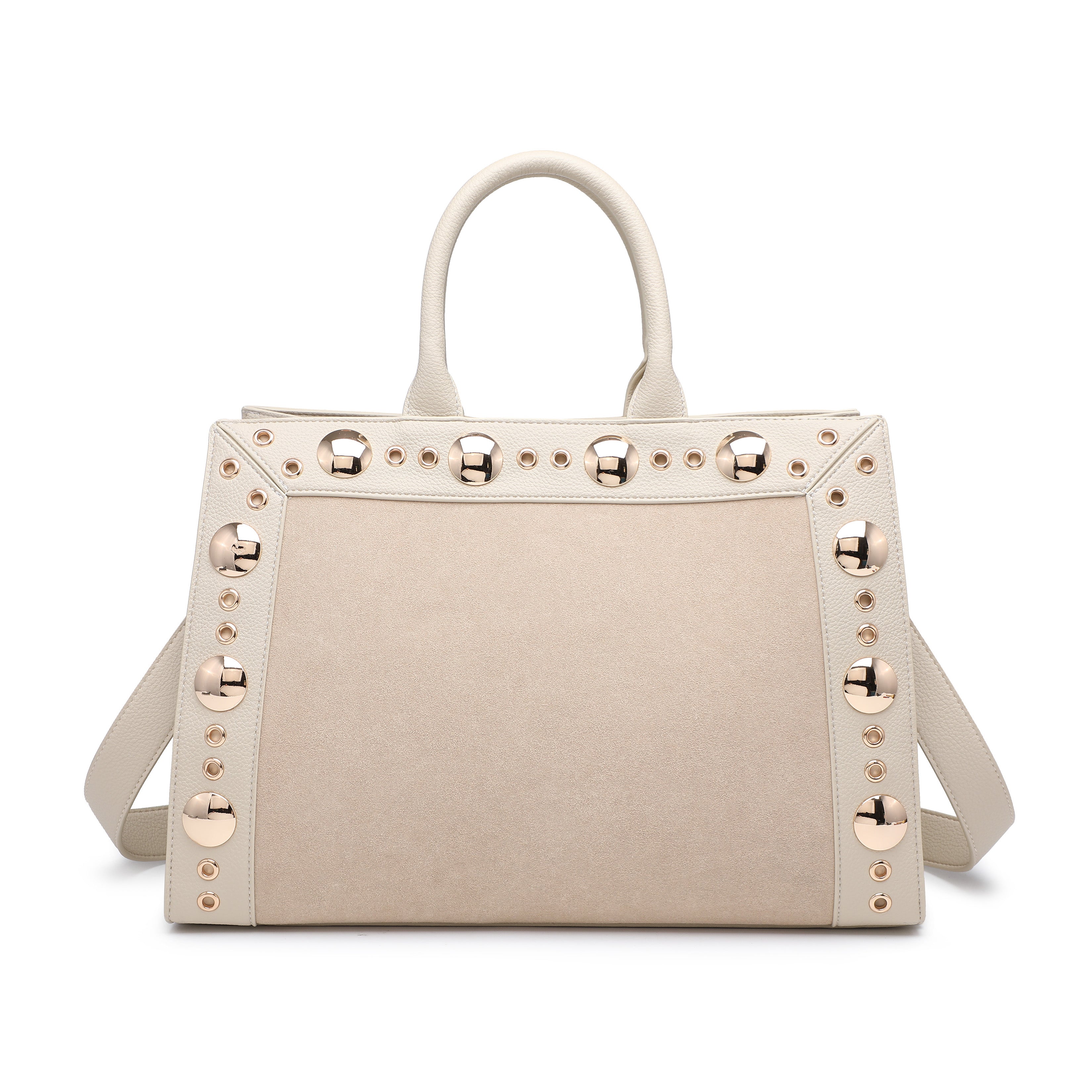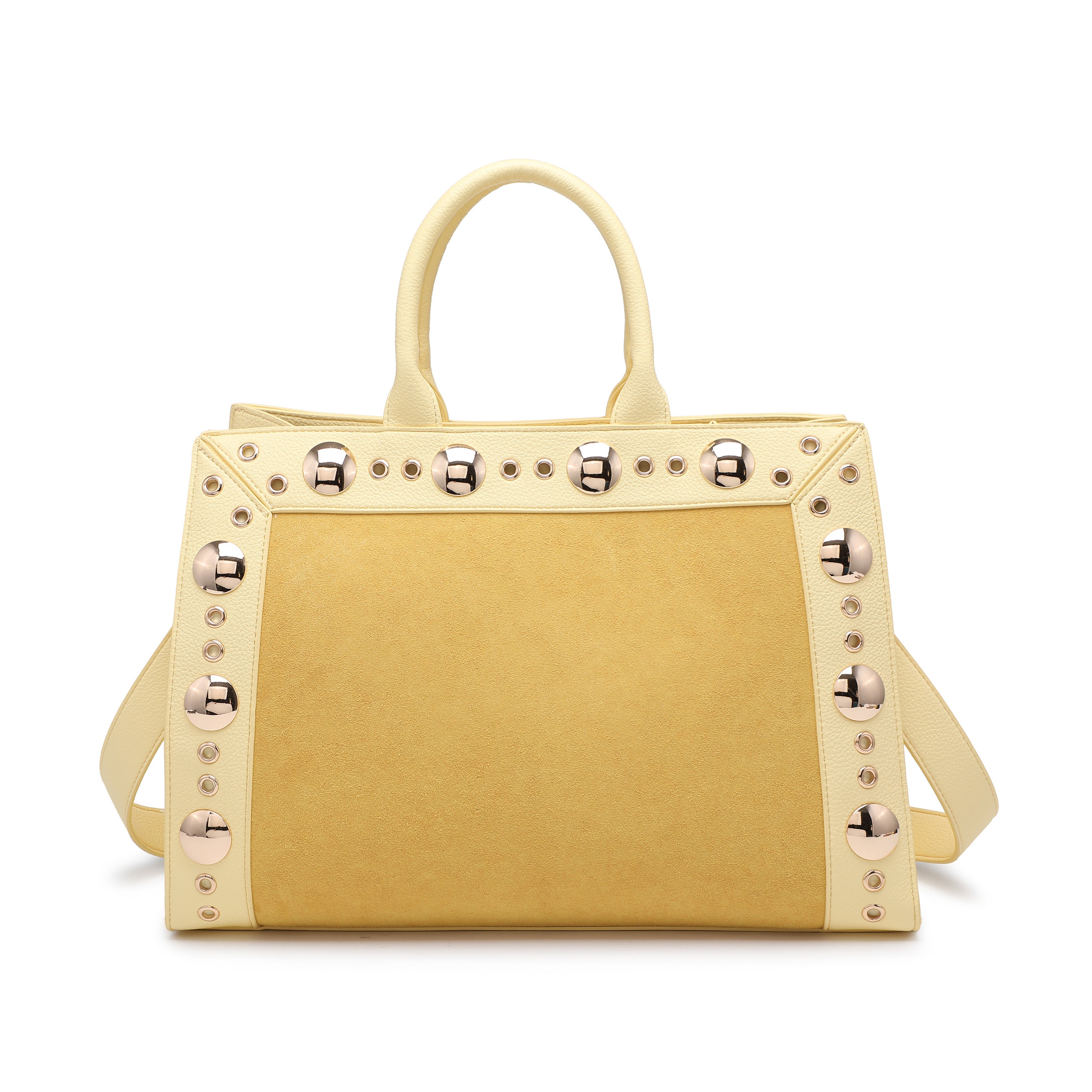 Studded panel structured top handle tote bag with eyelet detail wholesale