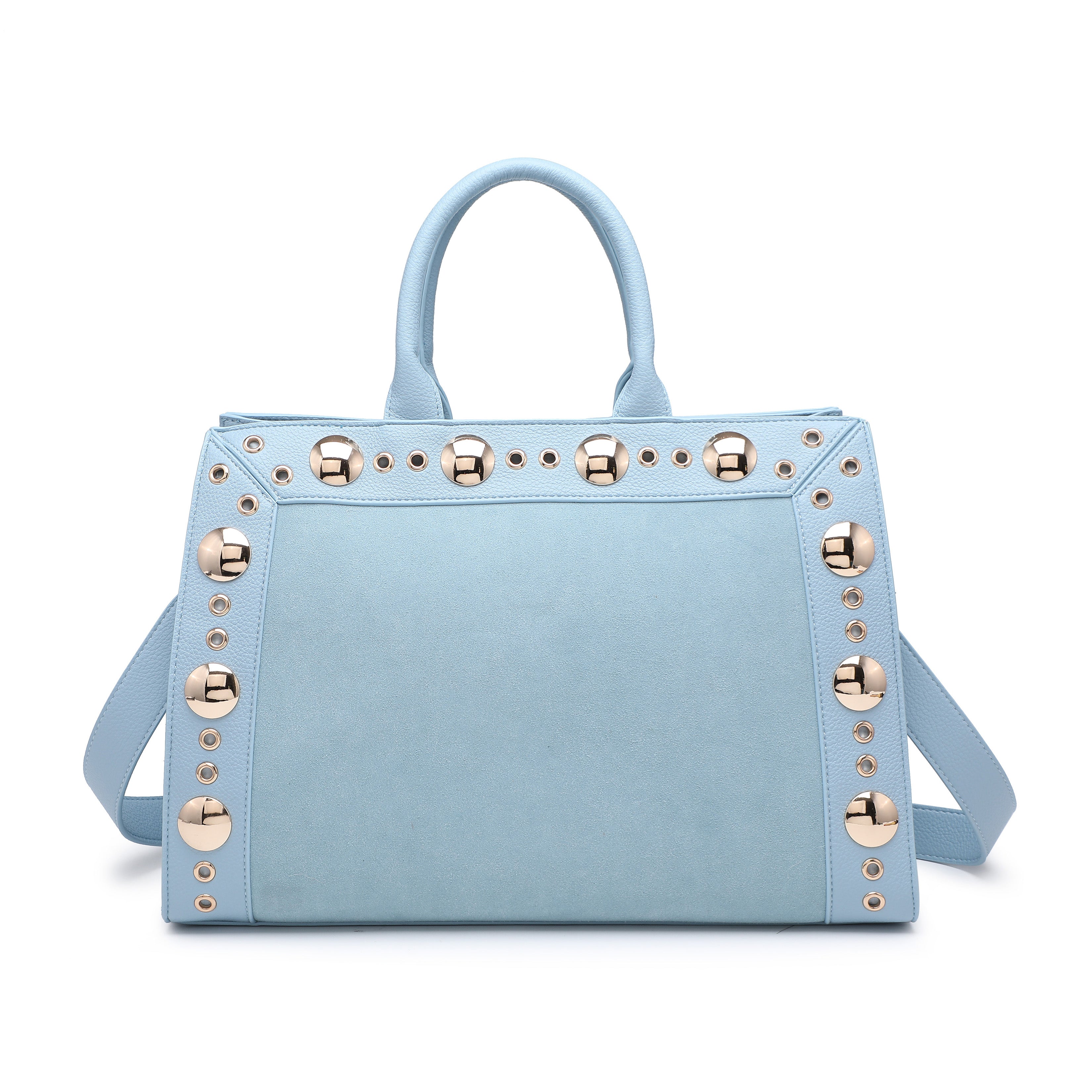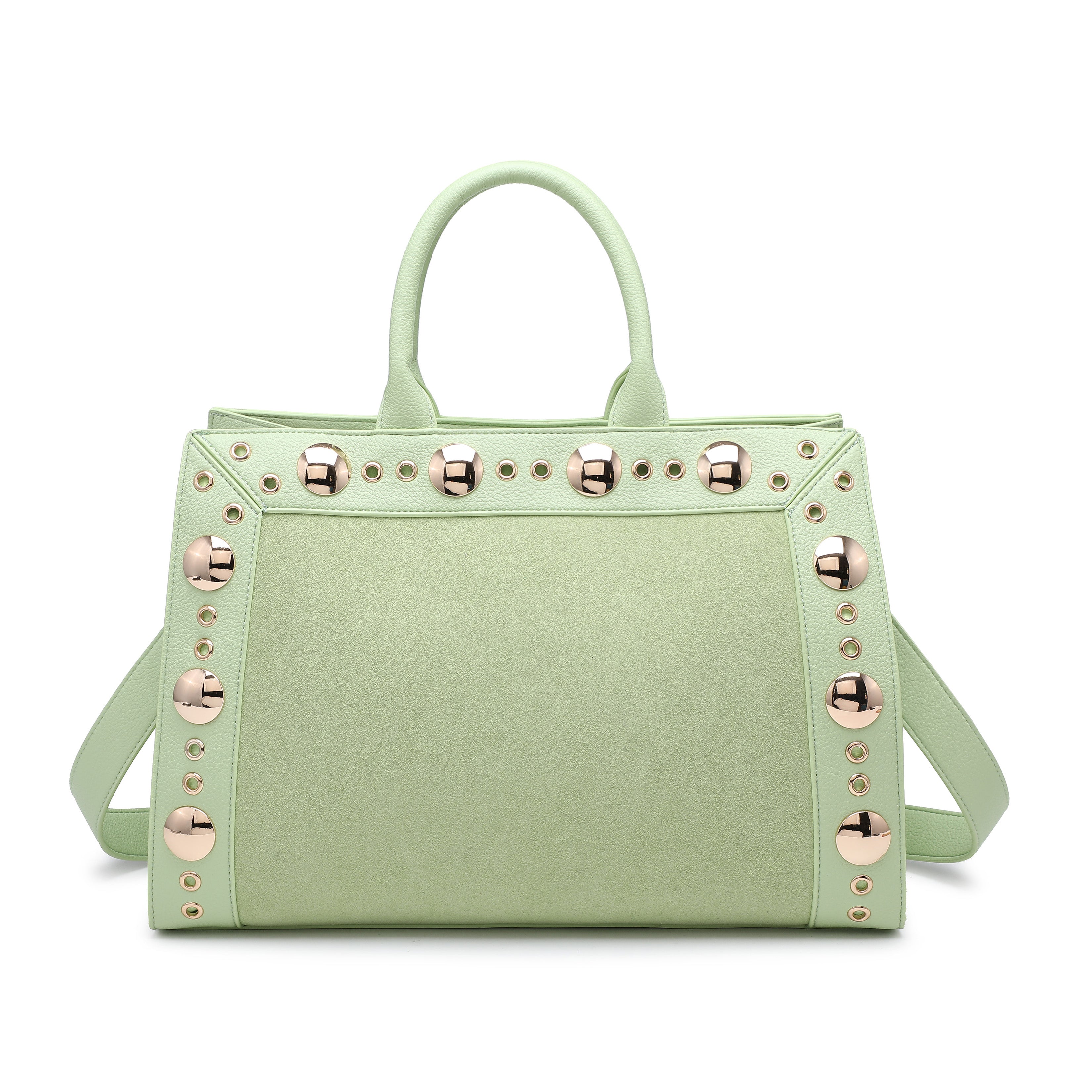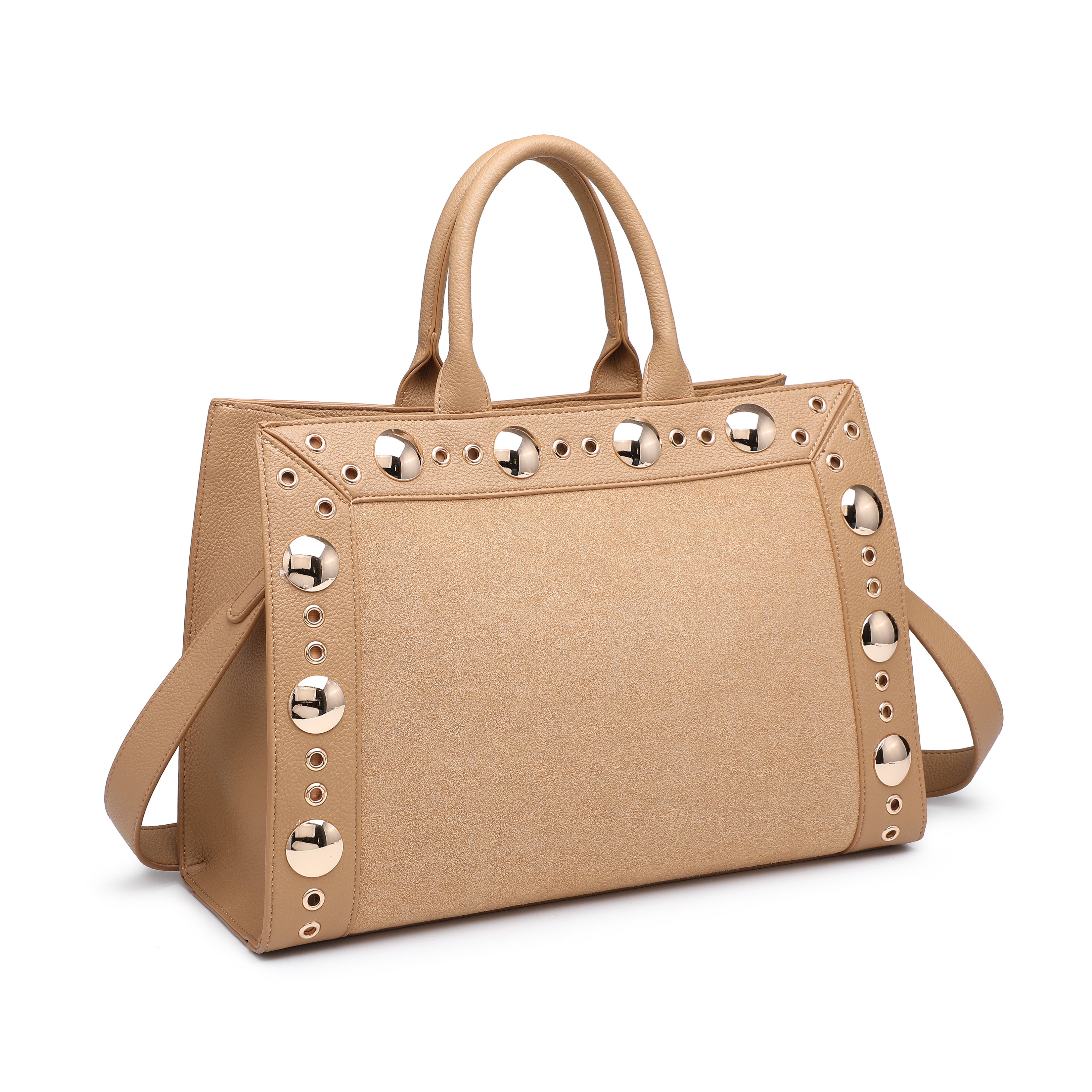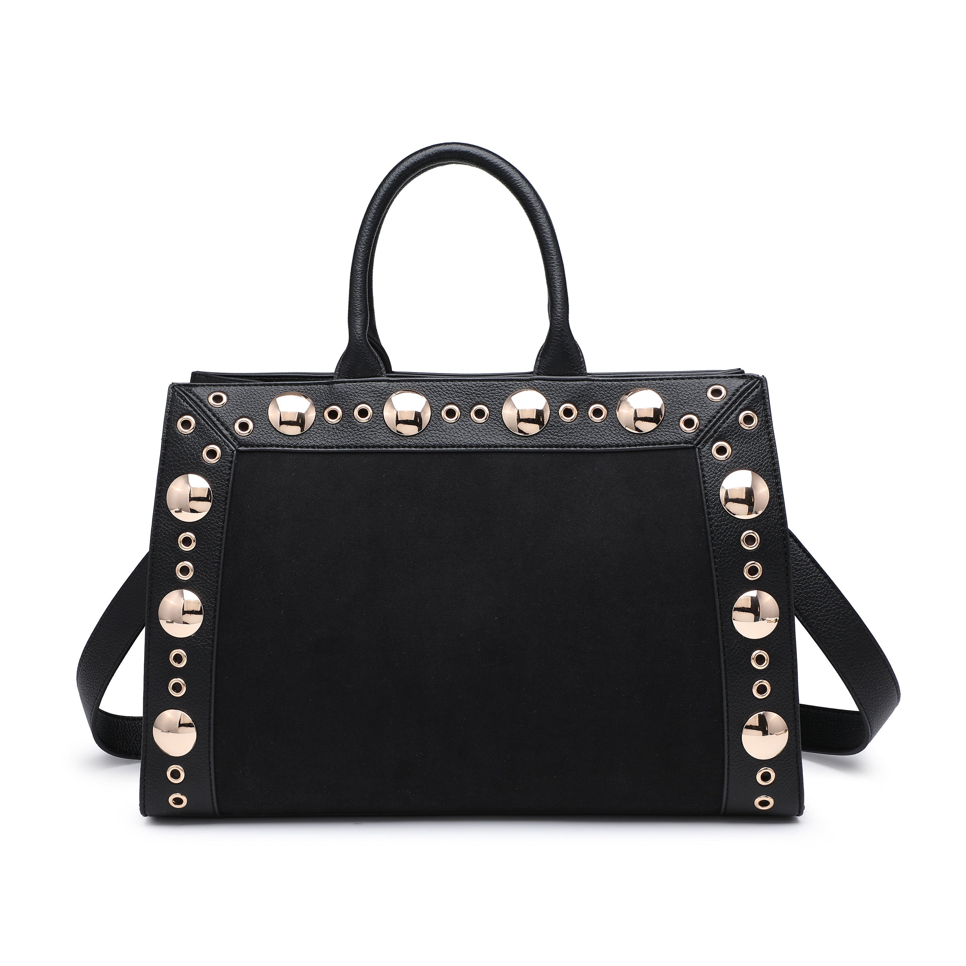 Studded panel structured top handle tote bag with eyelet detail wholesale