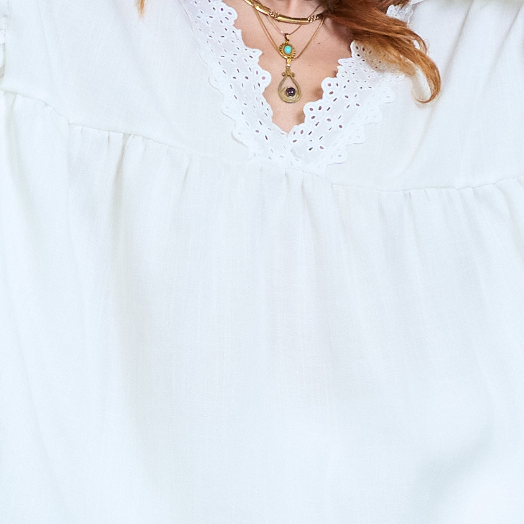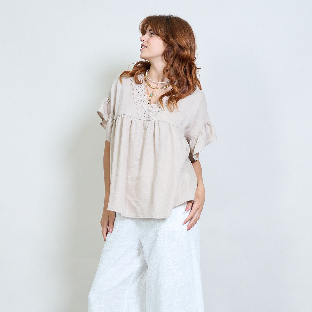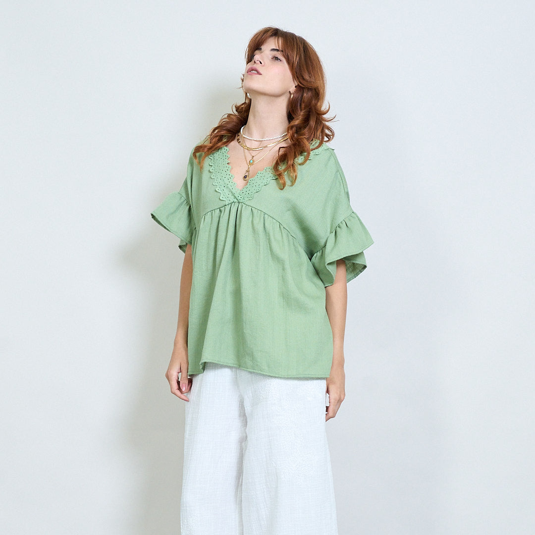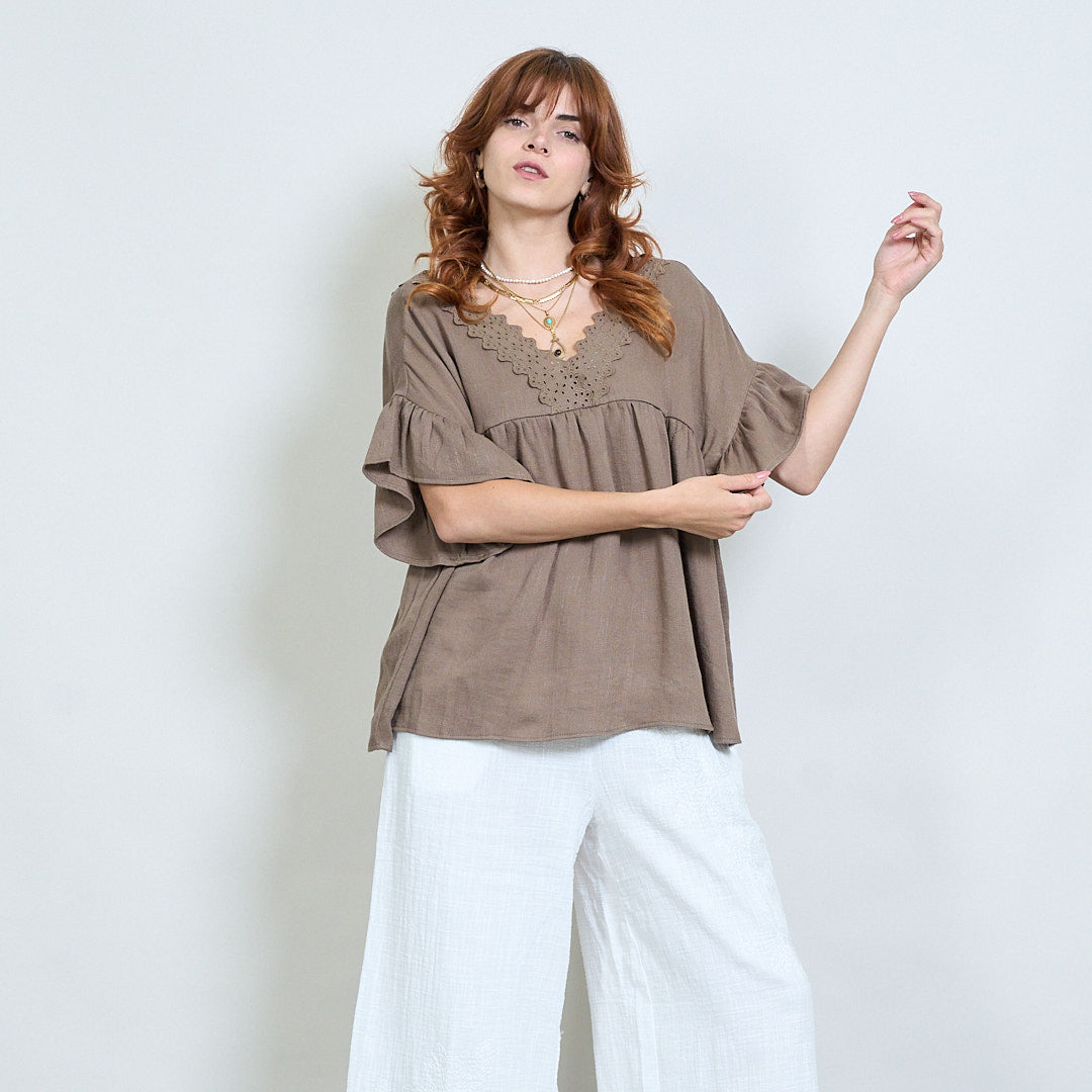 Vintage lace charm flutter sleeve top wholesale
