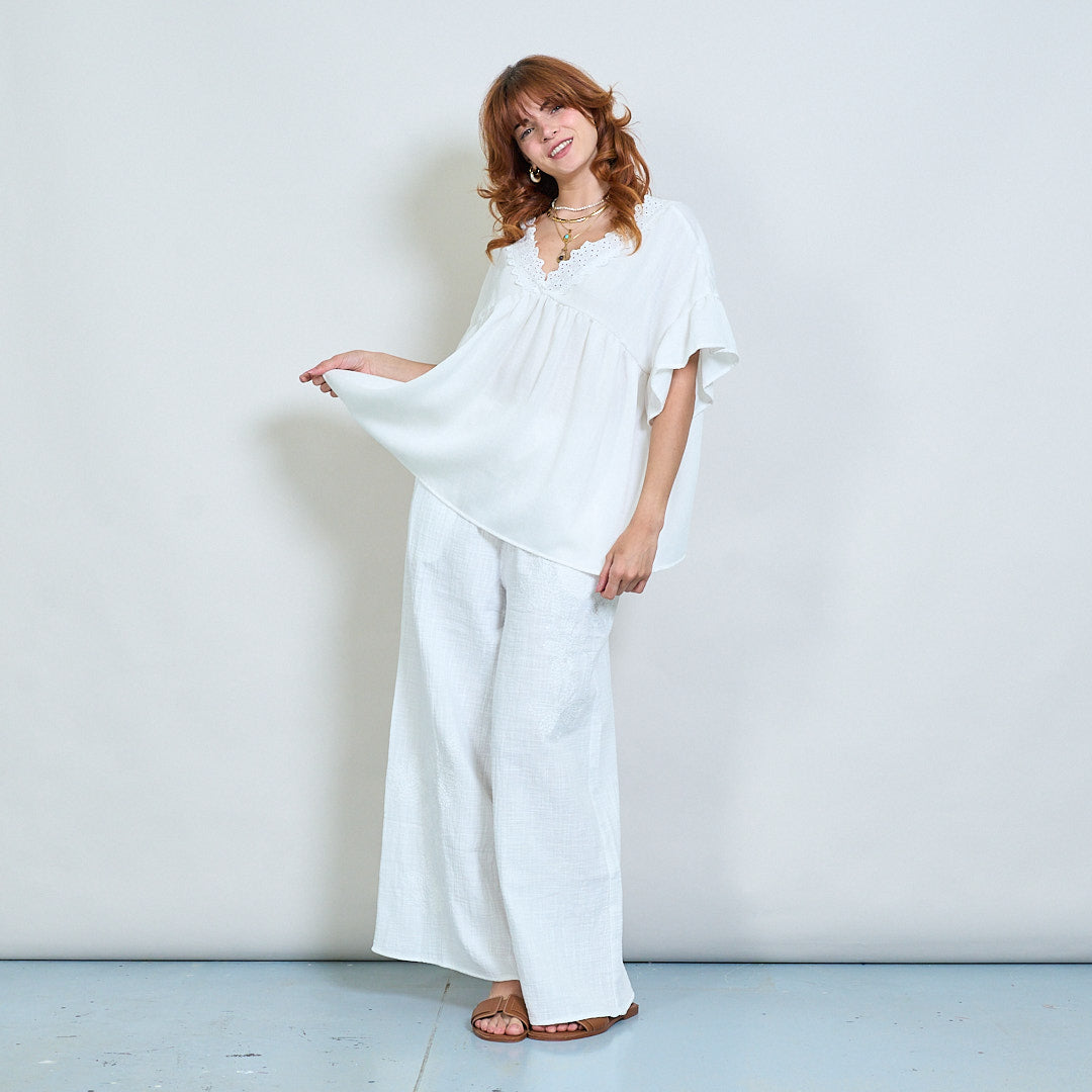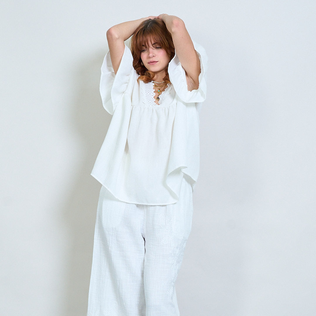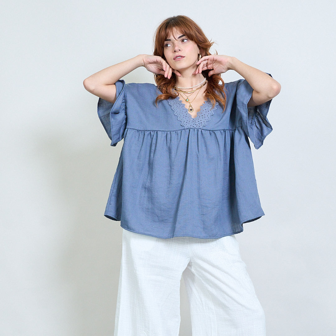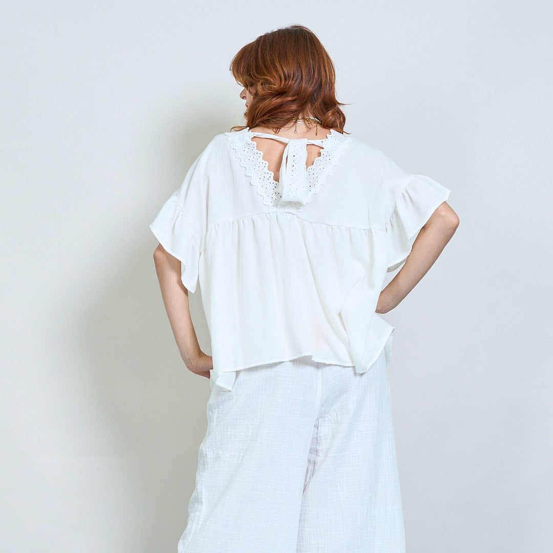 Vintage lace charm flutter sleeve top wholesale
