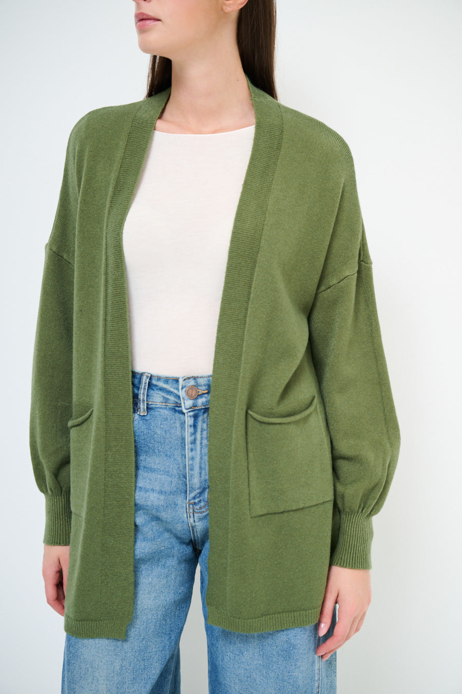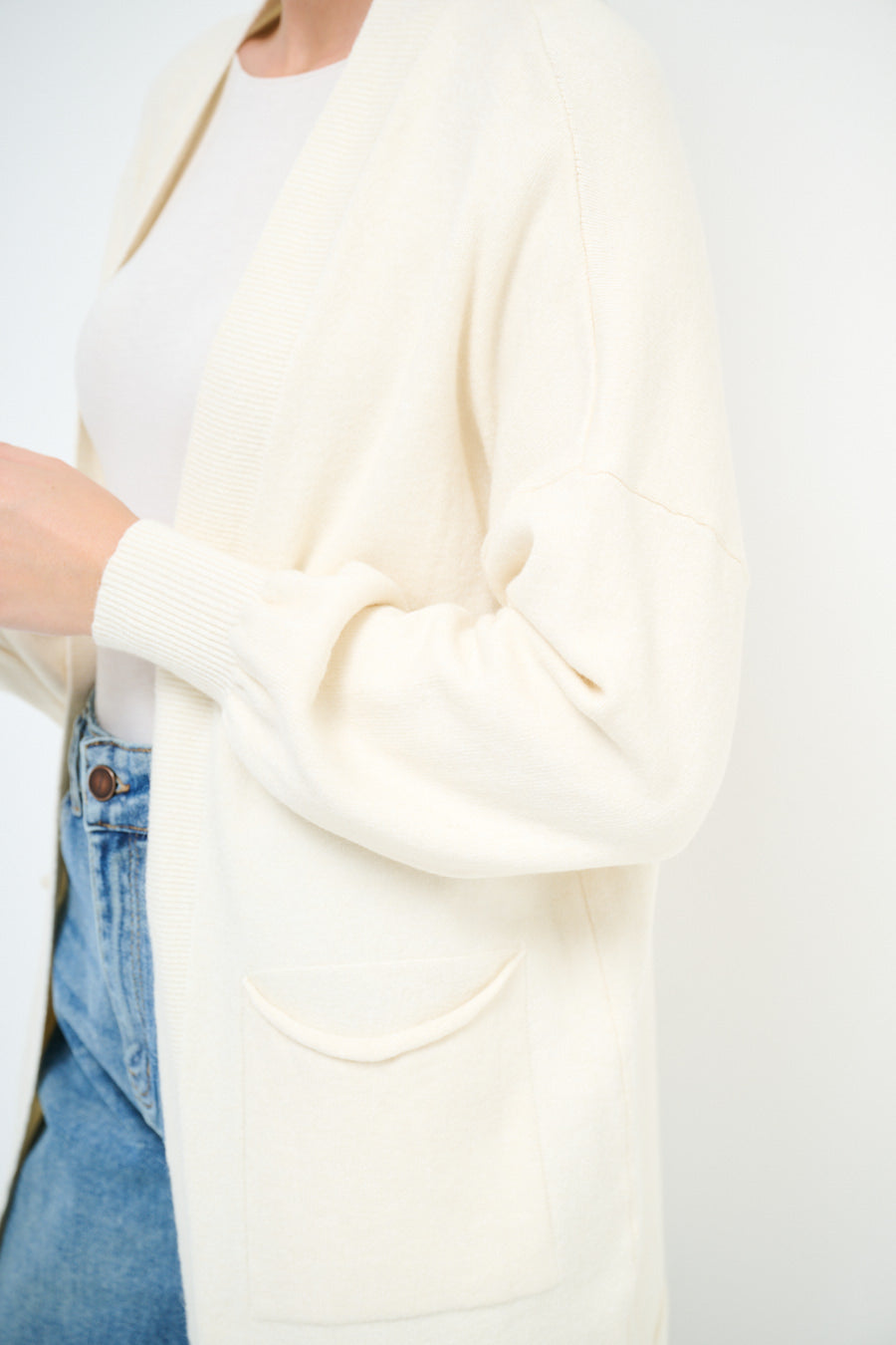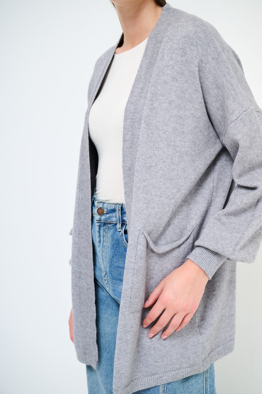 Relaxed fit open front pocket cardigan wholesale