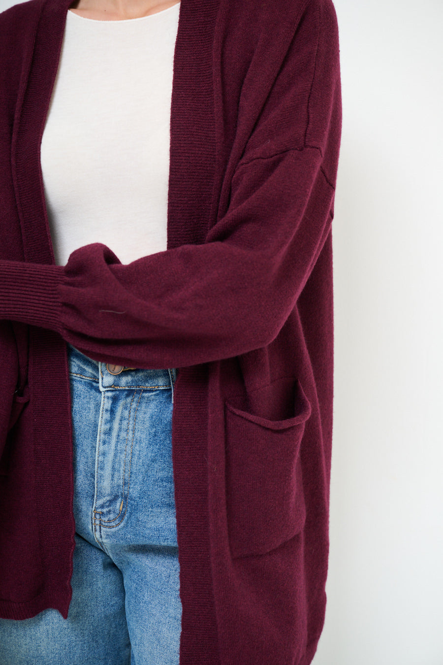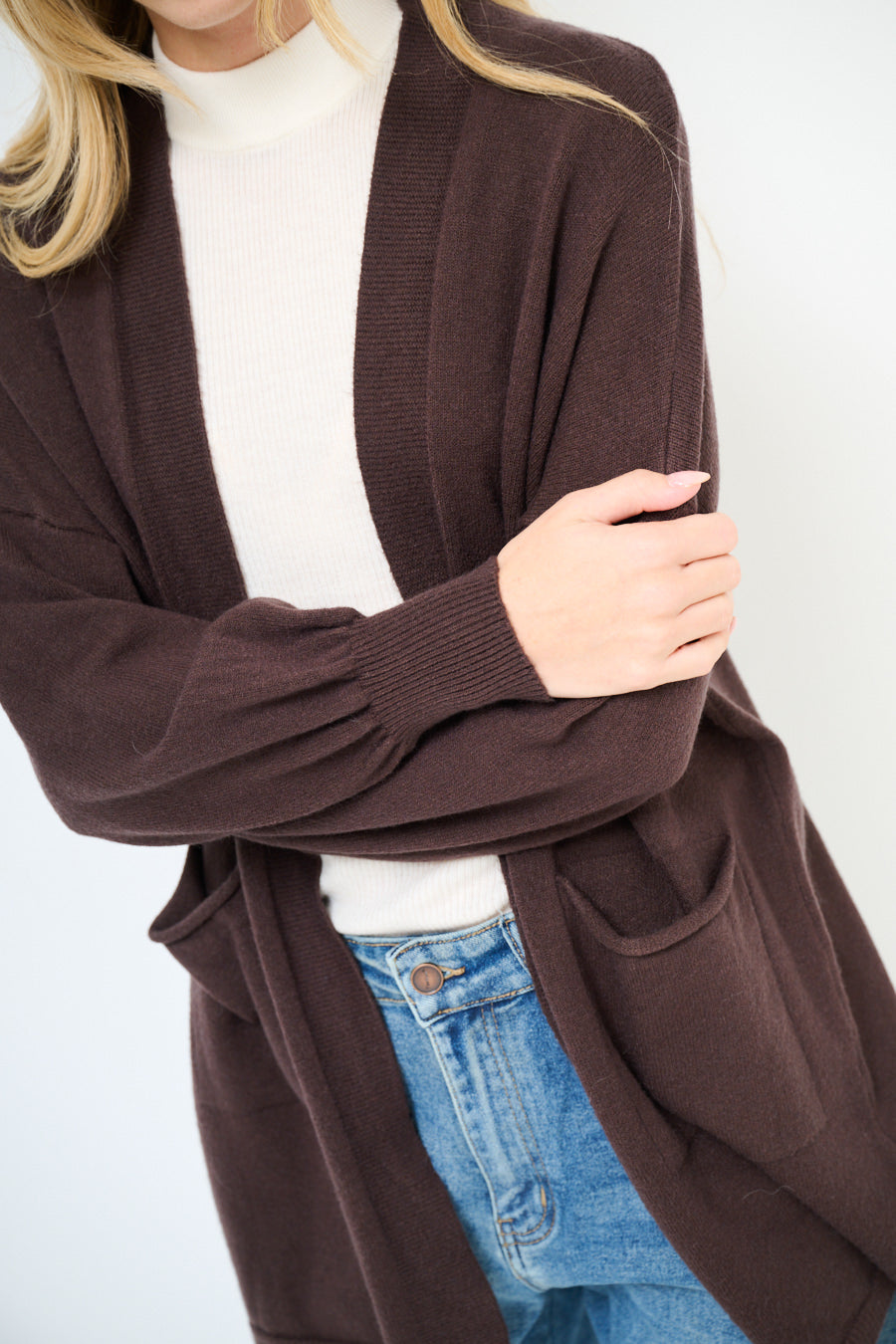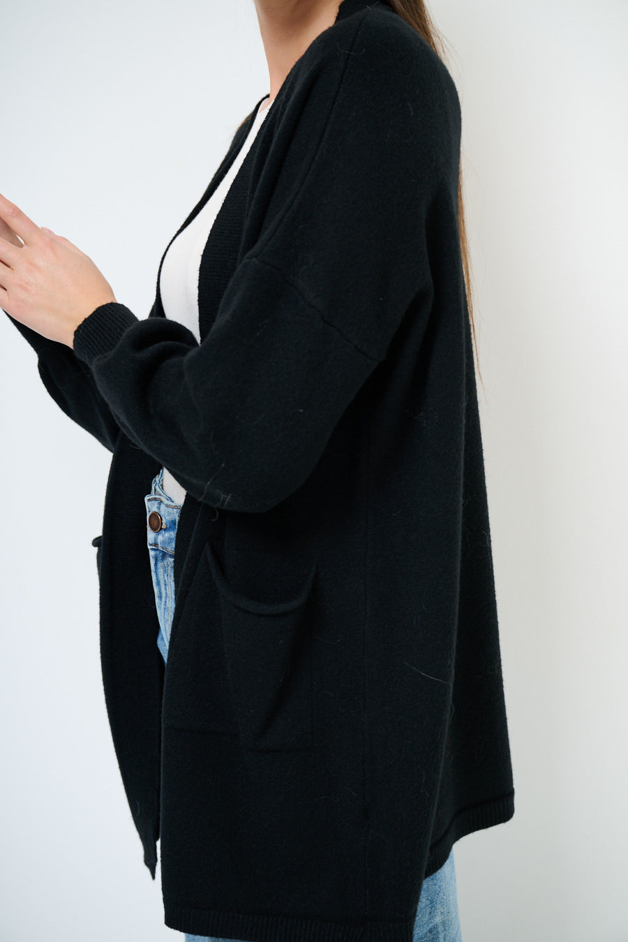 Relaxed fit open front pocket cardigan wholesale
