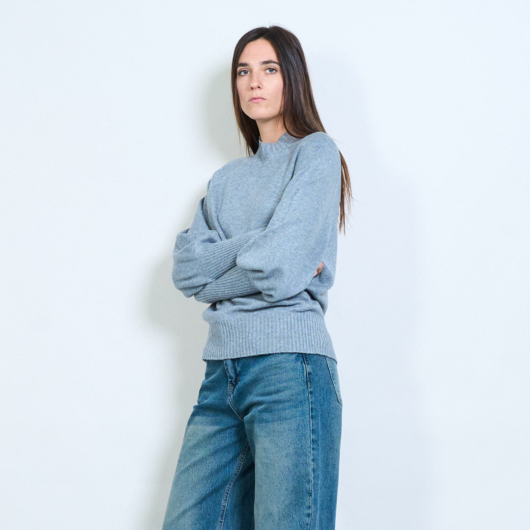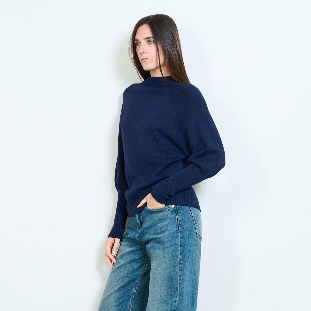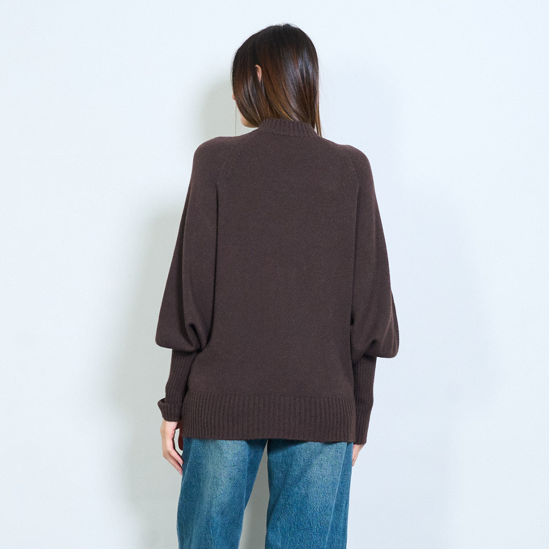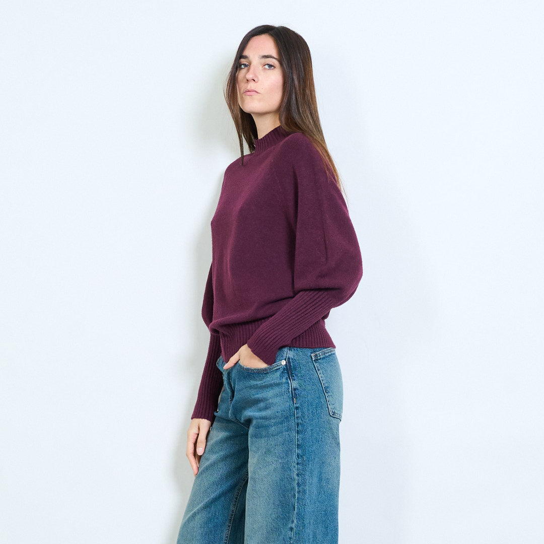 - Ribbed neckline, cuffs, and hem add subtle structure and detail