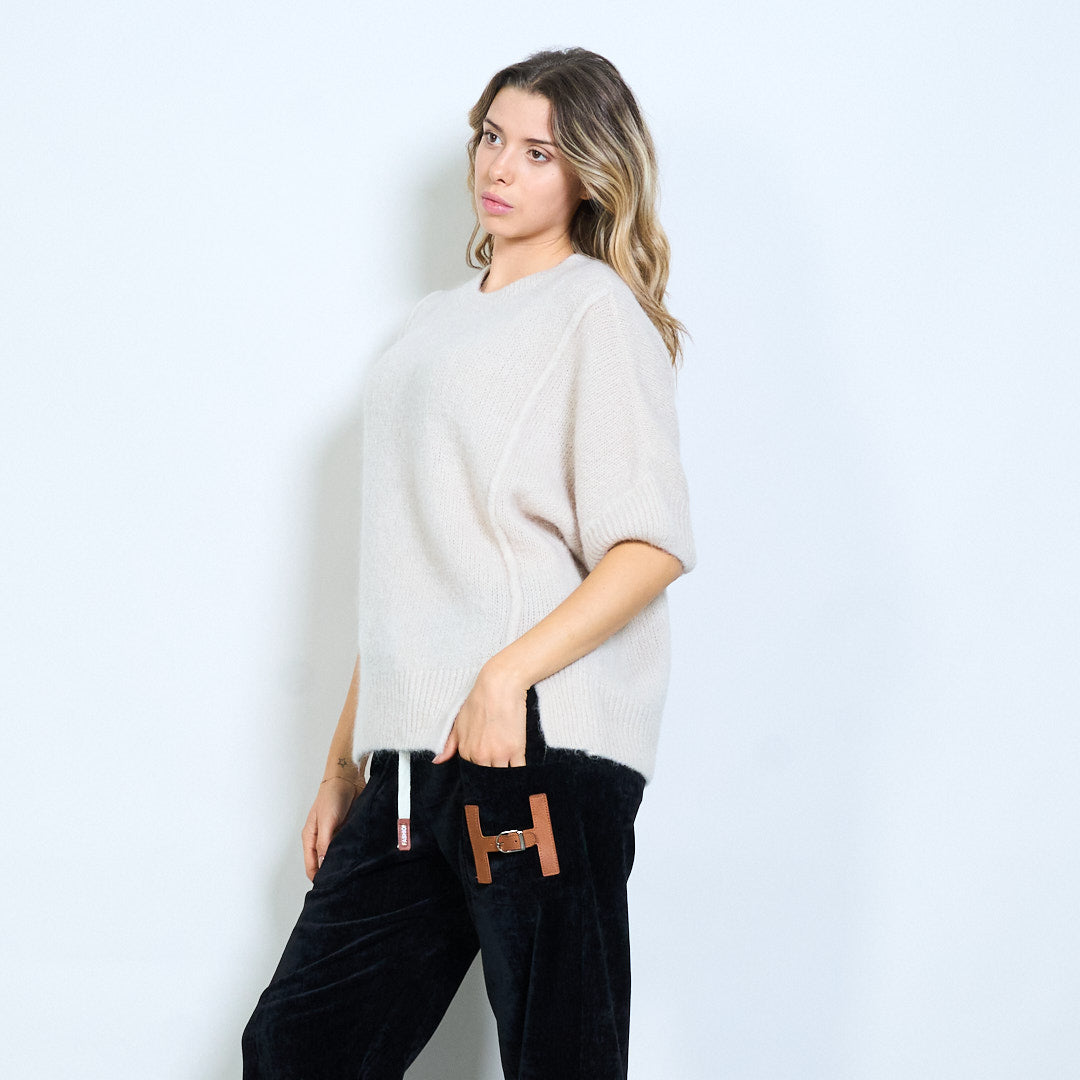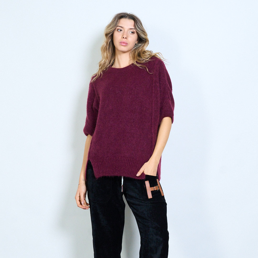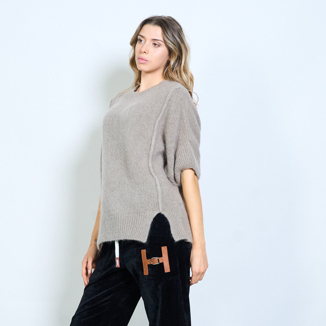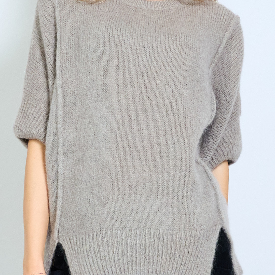 Short sleeve relaxed fit side slit knit sweater wholesale