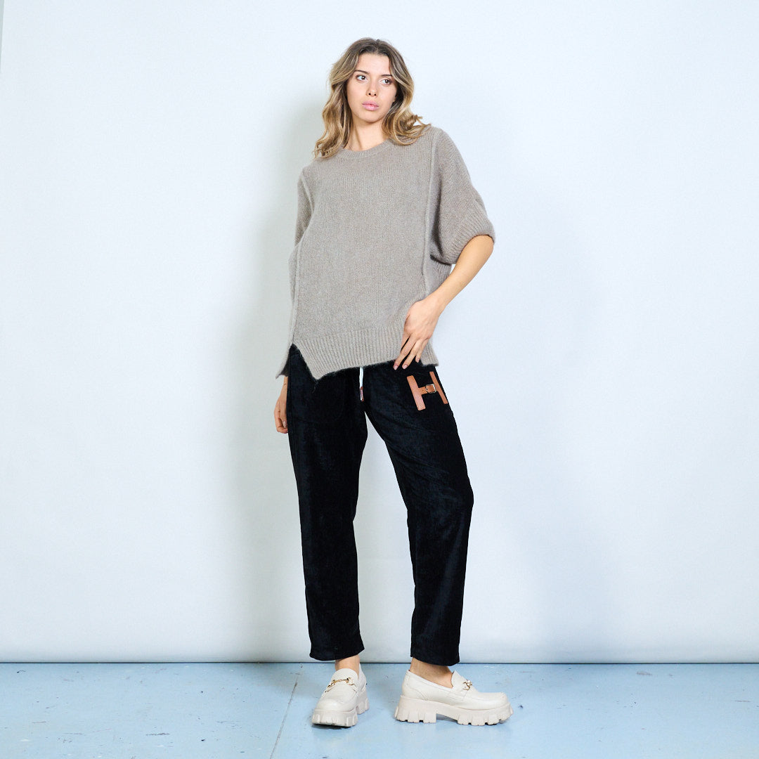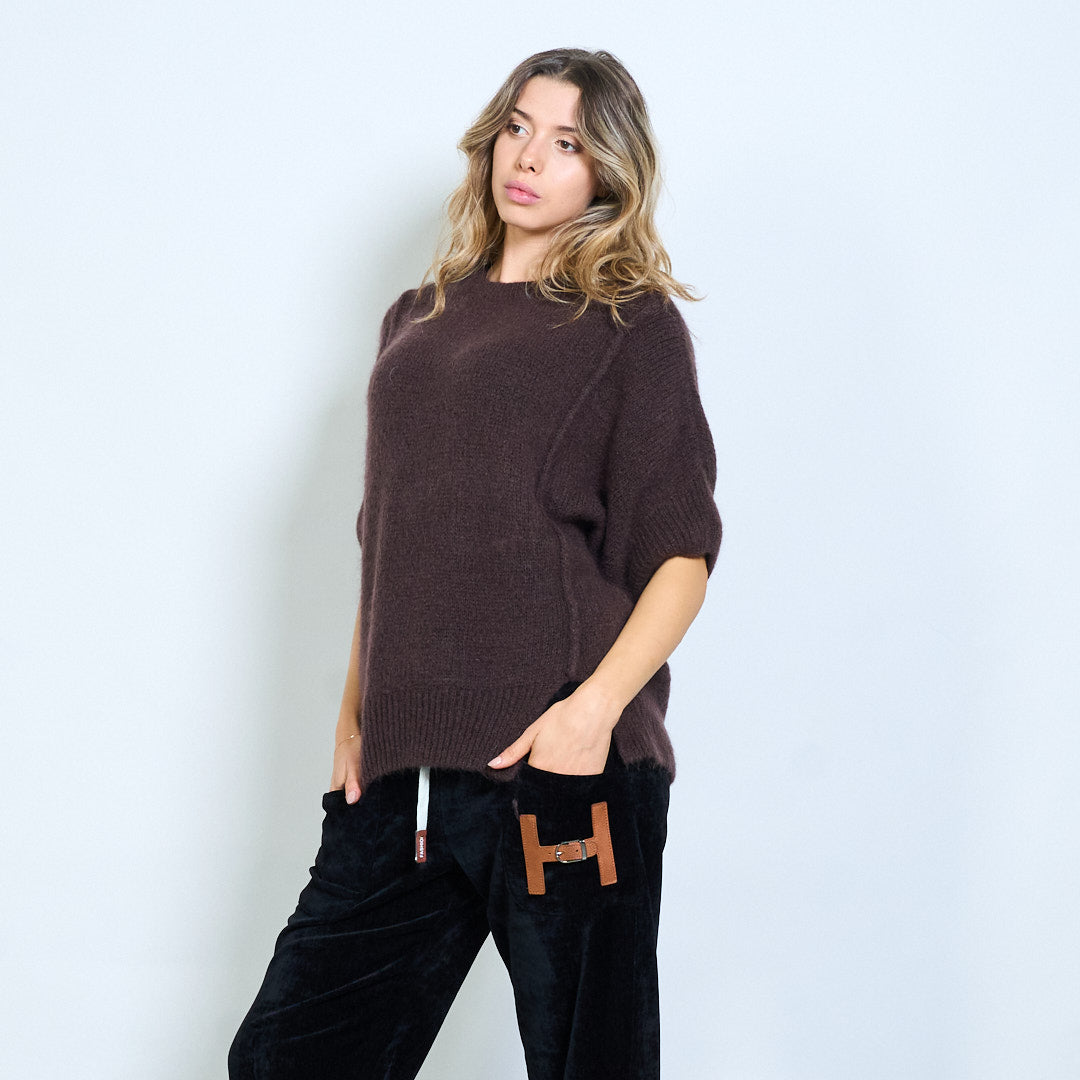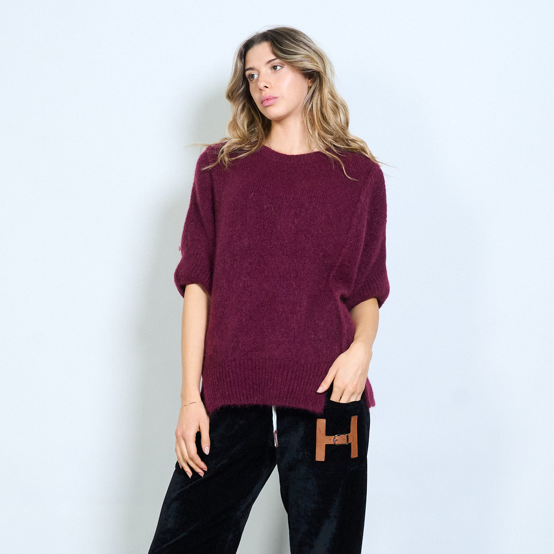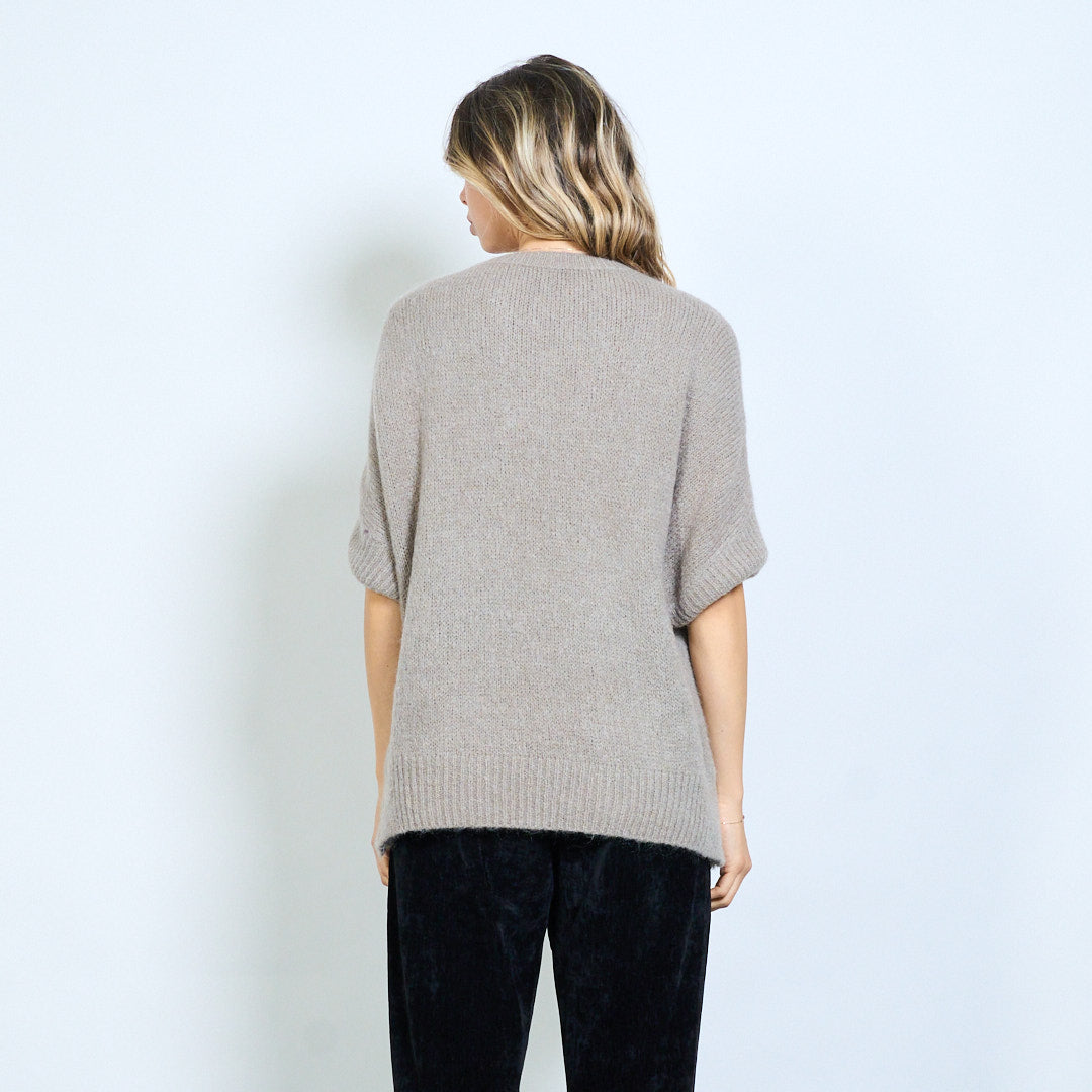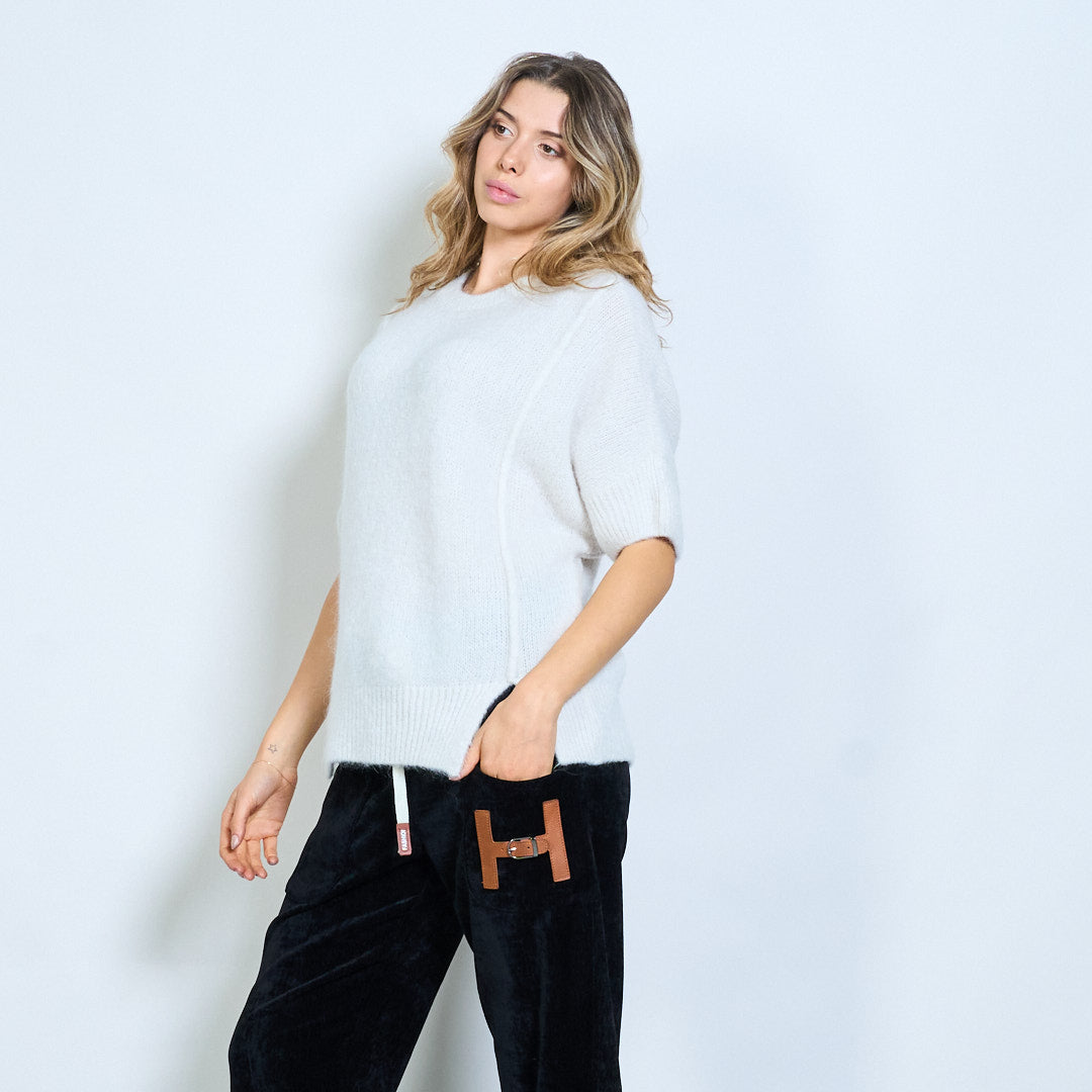 Short sleeve relaxed fit side slit knit sweater wholesale