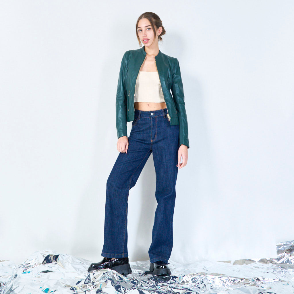 Chic leather jacket with gold zipper wholesale