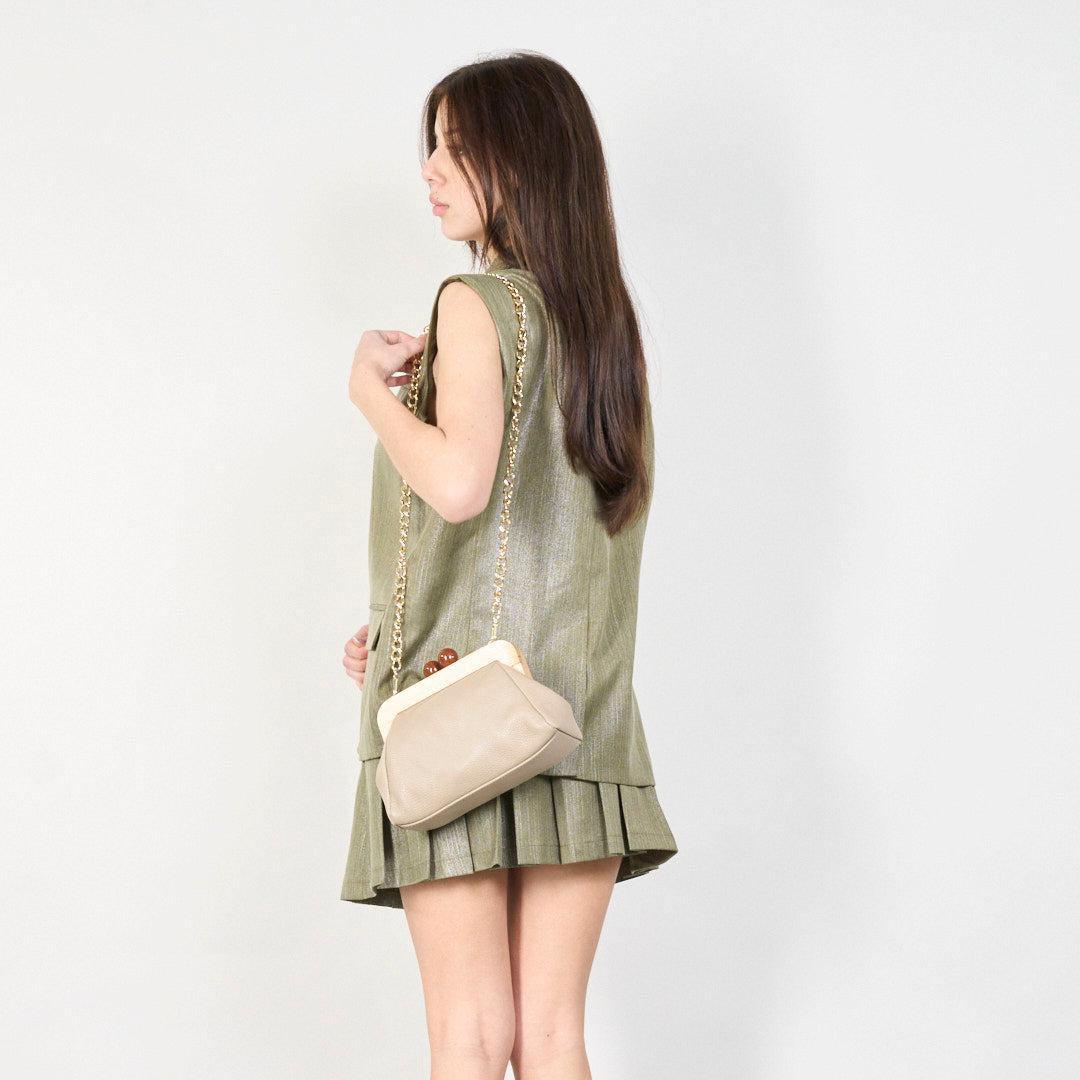 - Suede clutch bags with vintage wooden frame closure