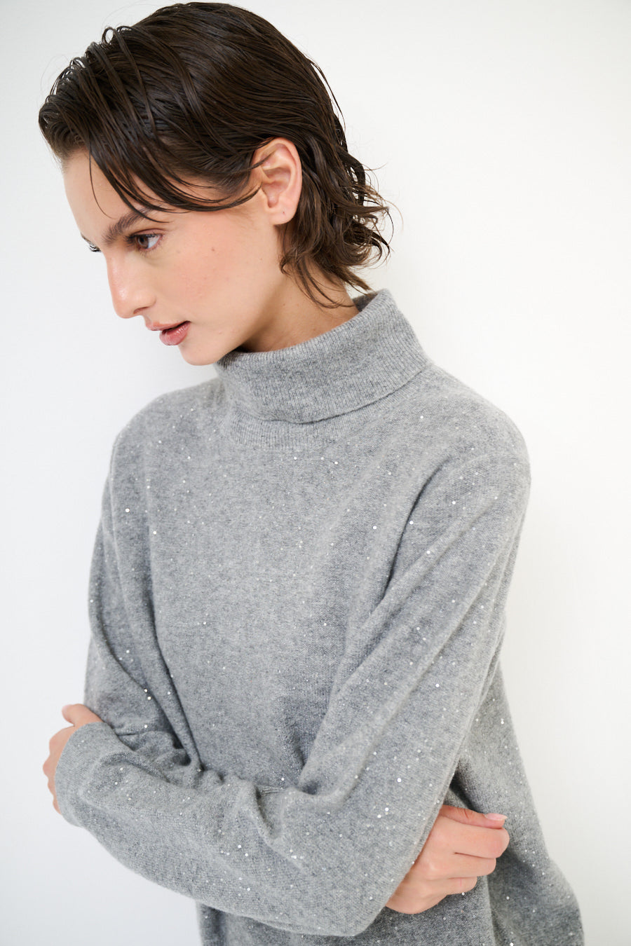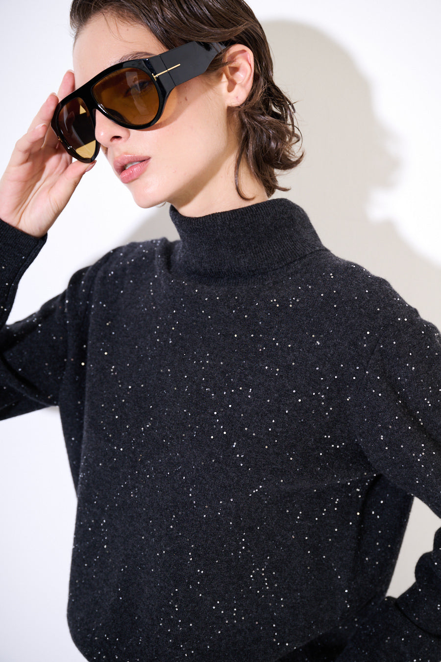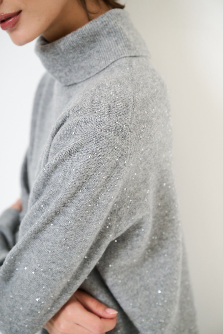 Cashmere shimmer turtleneck sweater with scattered sparkles wholesale