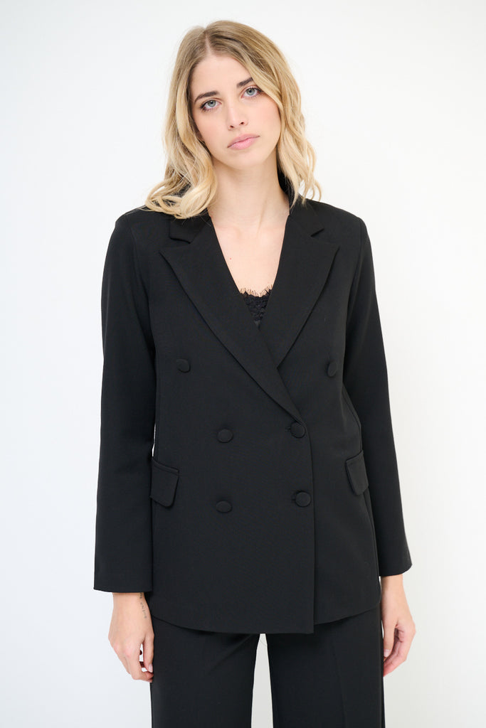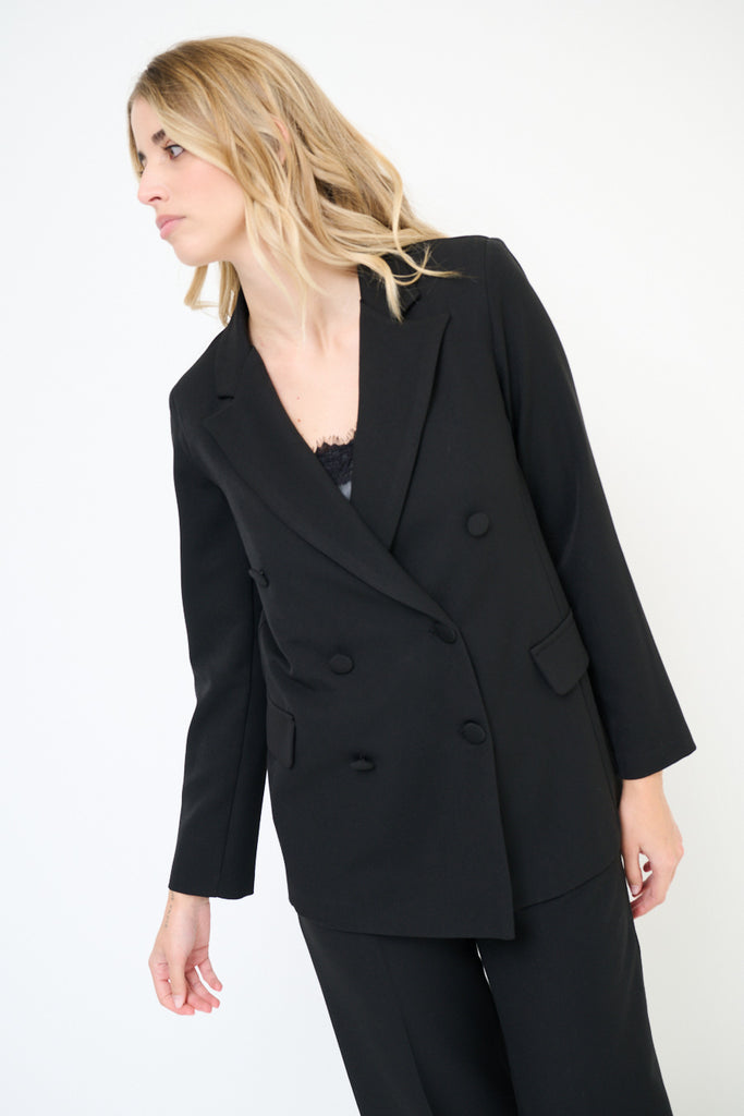 • Sleek double-breasted blazer with a refined, tailored silhouette