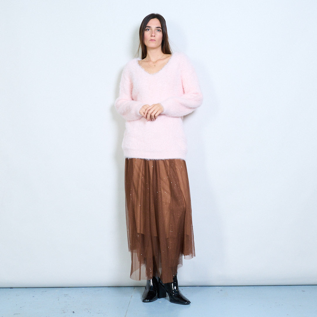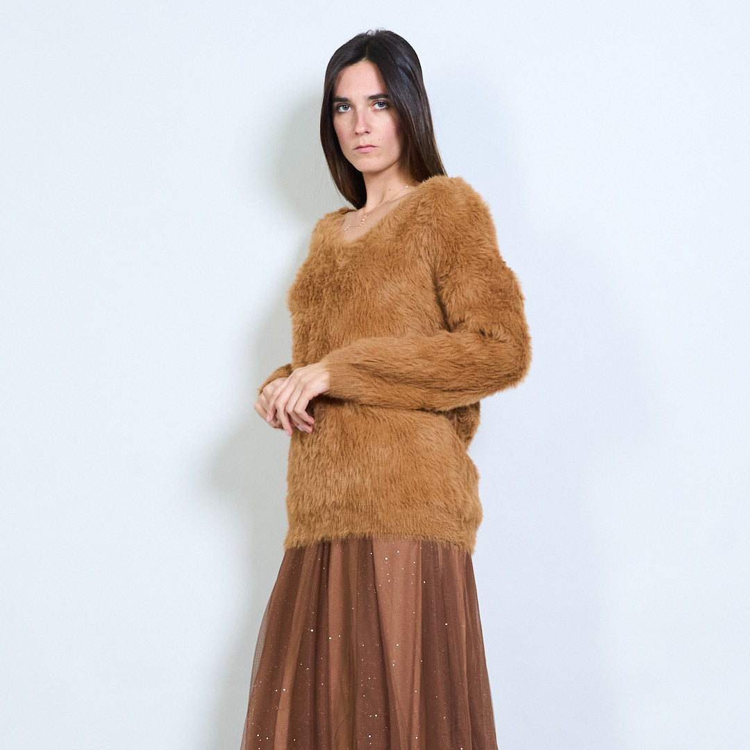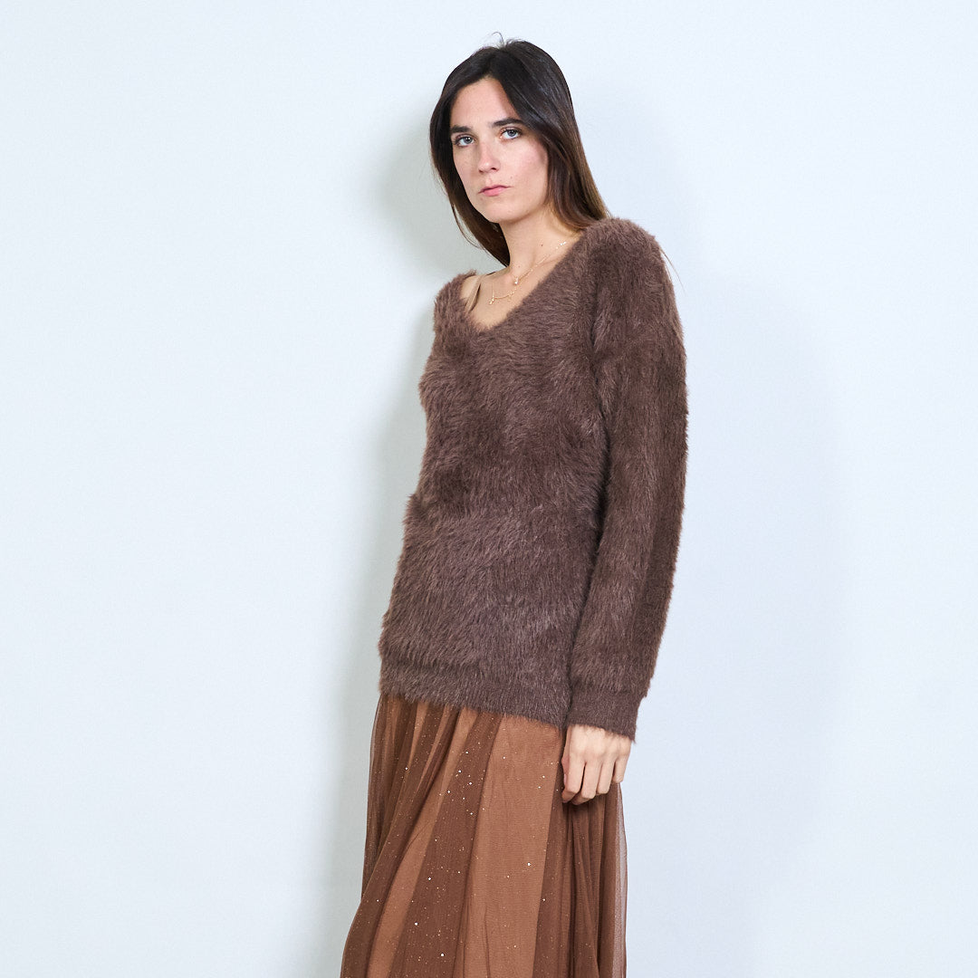Fuzzy soft-touch deep v-neck long sleeve pullover wholesale