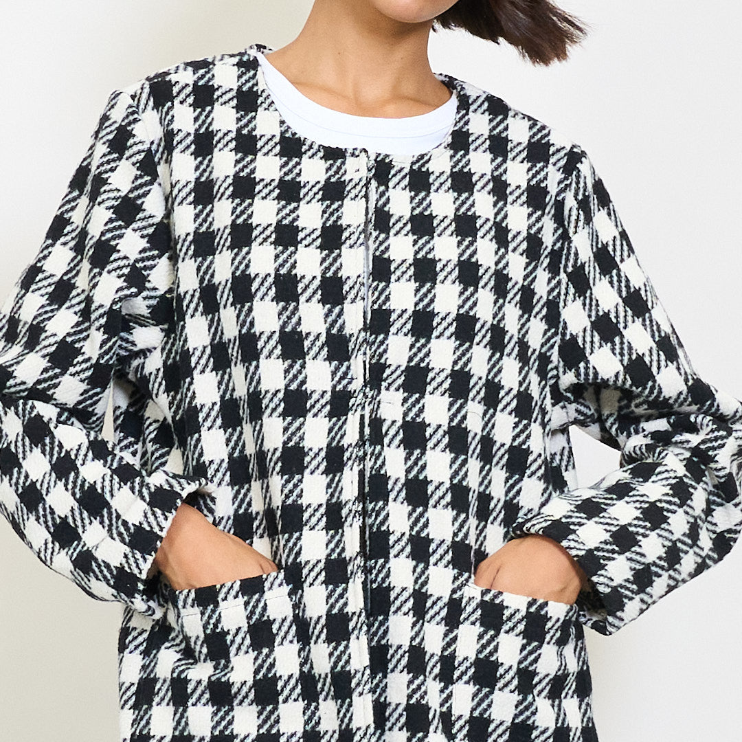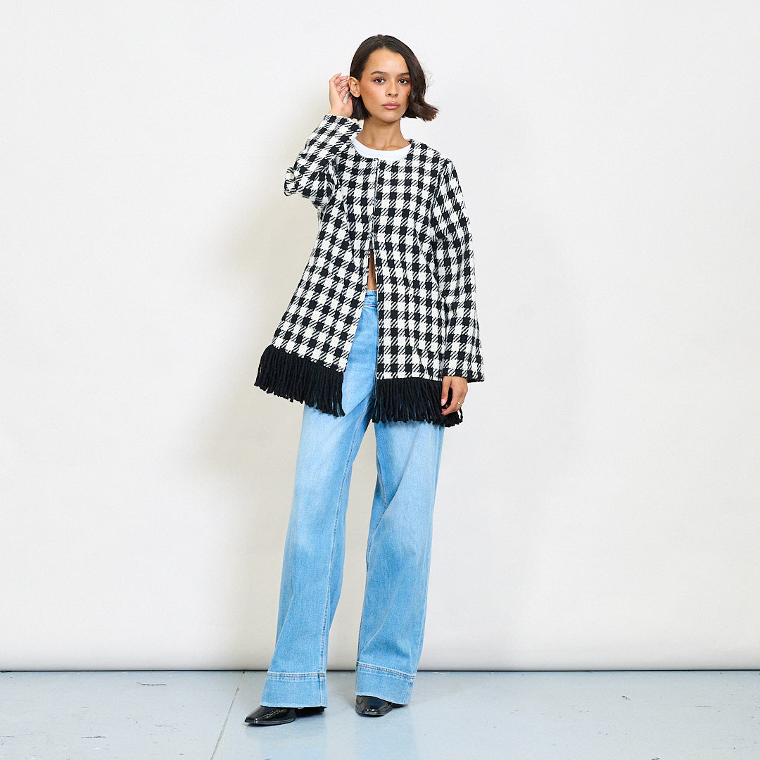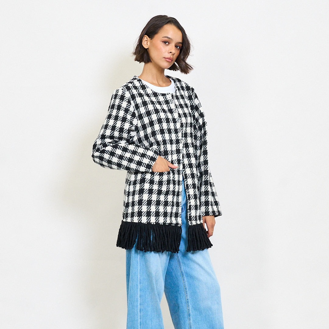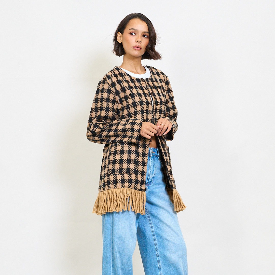Gingham check tassel hem cardigan jacket with front pockets wholesale