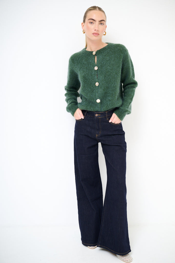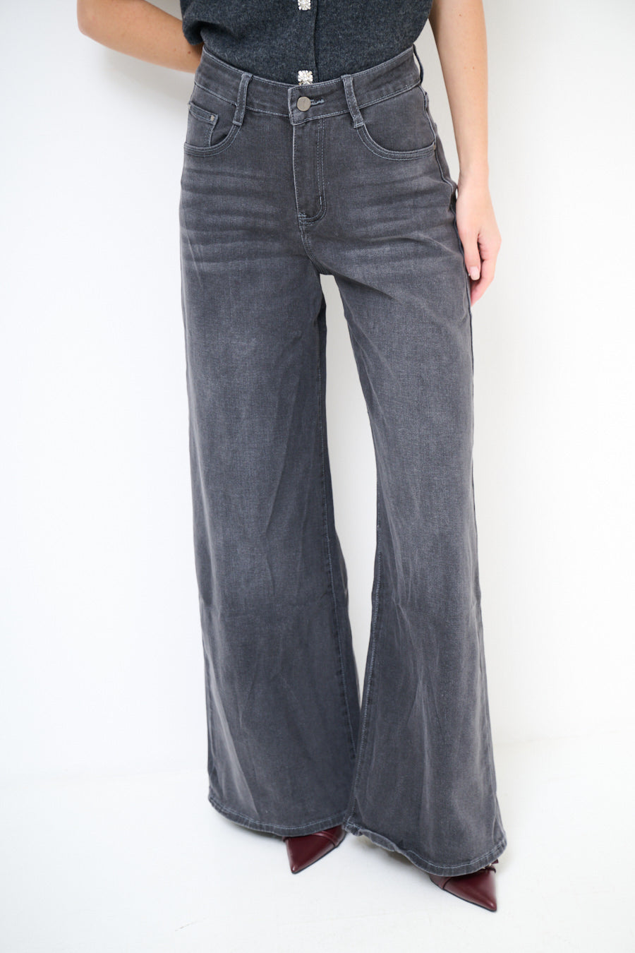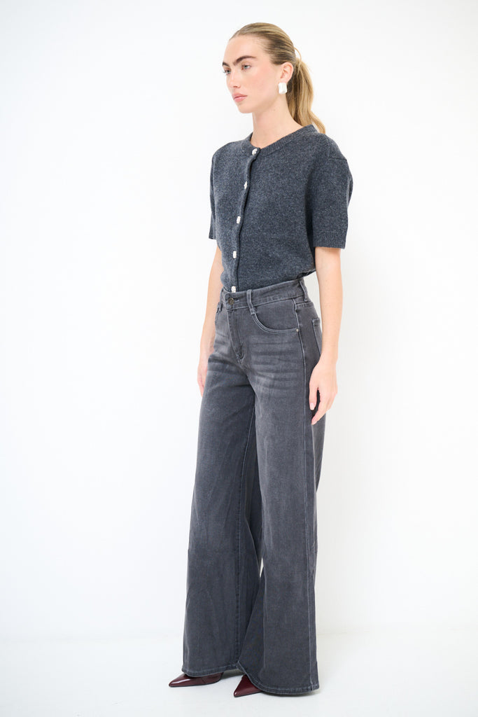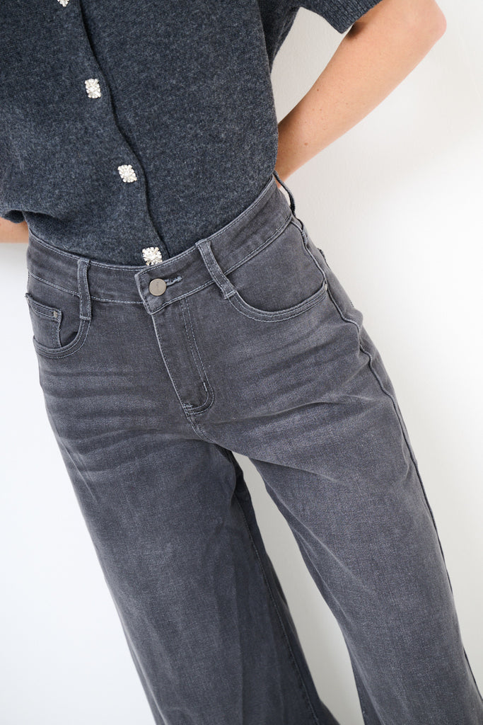 High-waist flared denim jeans with vintage washed effect wholesale