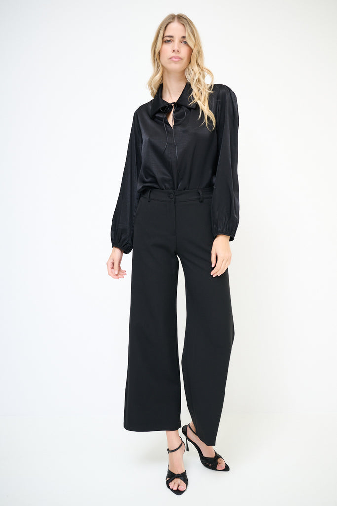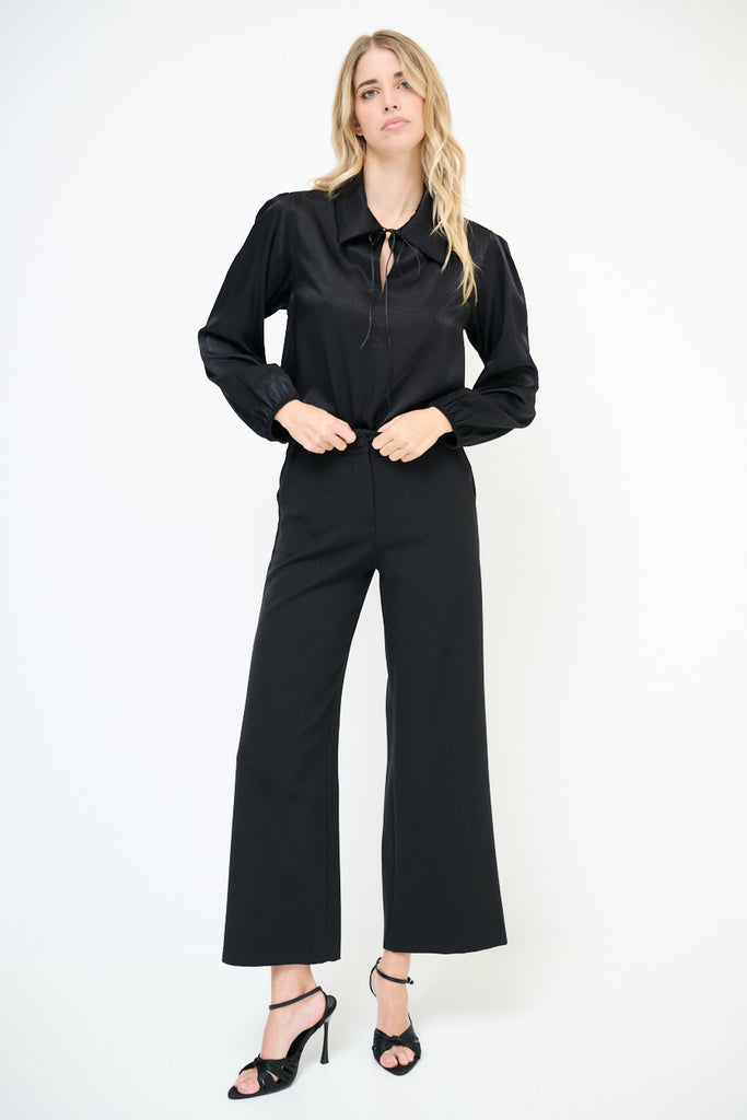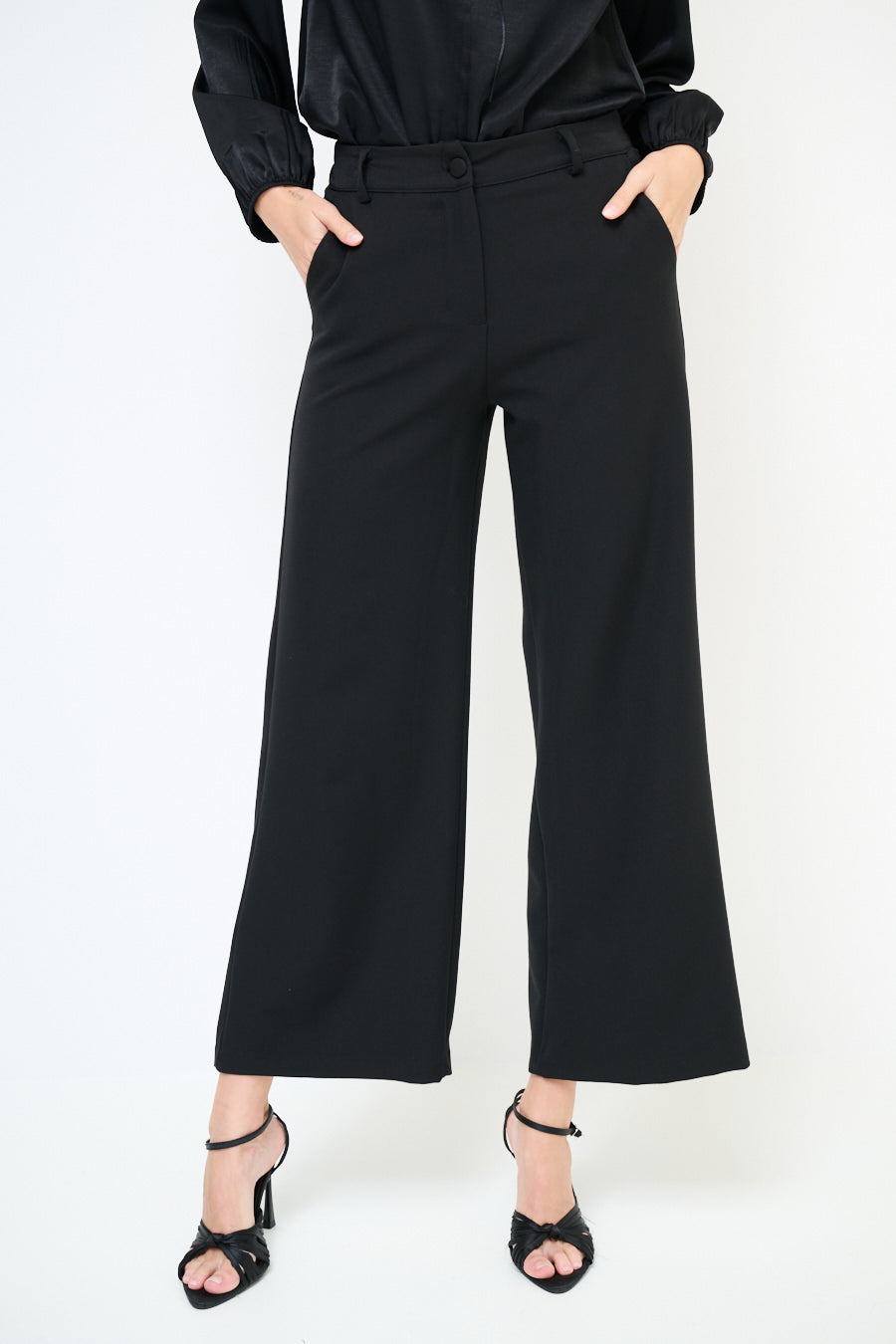 - Wide-leg cut creates a balanced, flowing shape with modern appeal