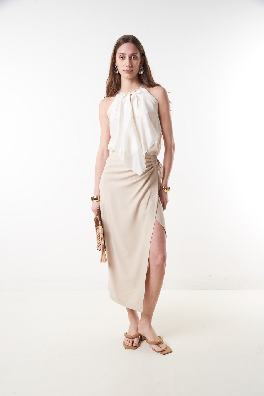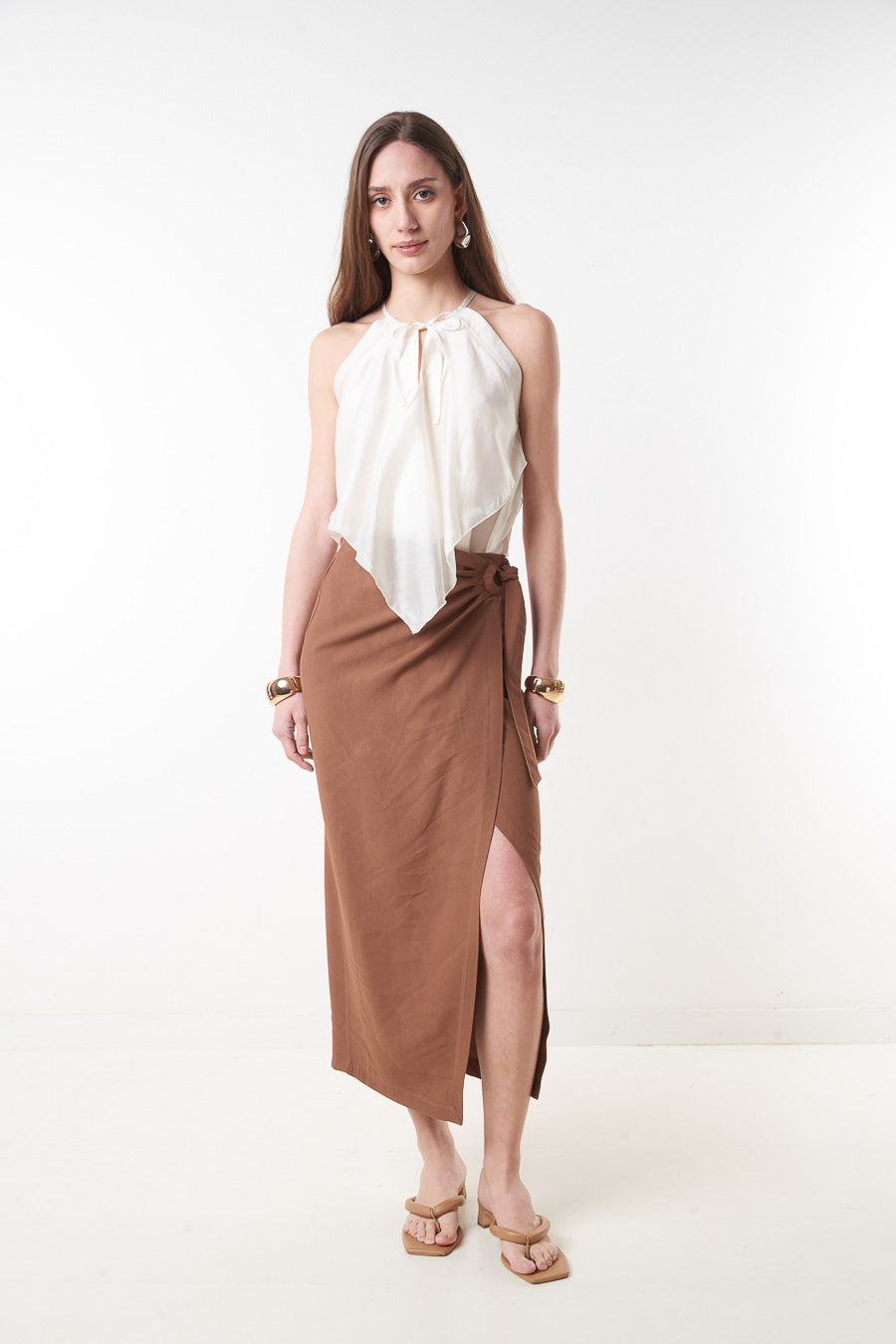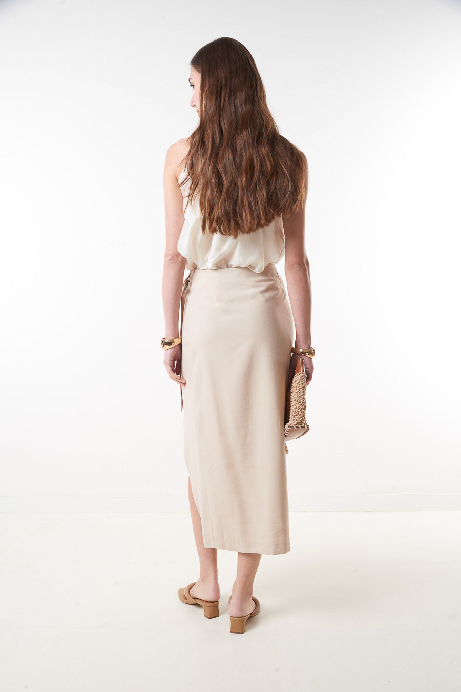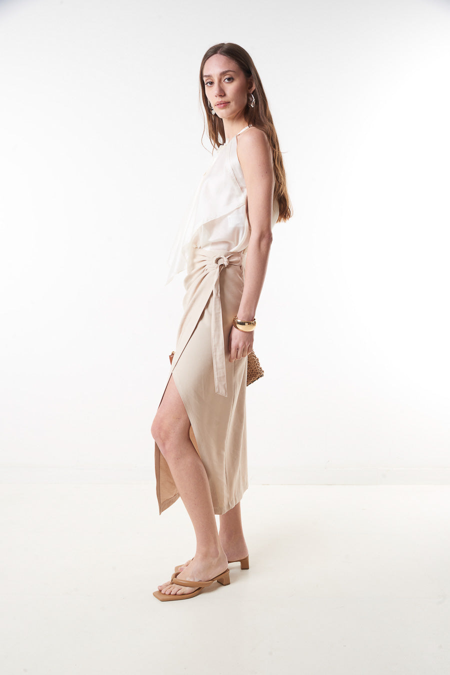 High waist wrap midi skirt with side tie slit detail wholesale