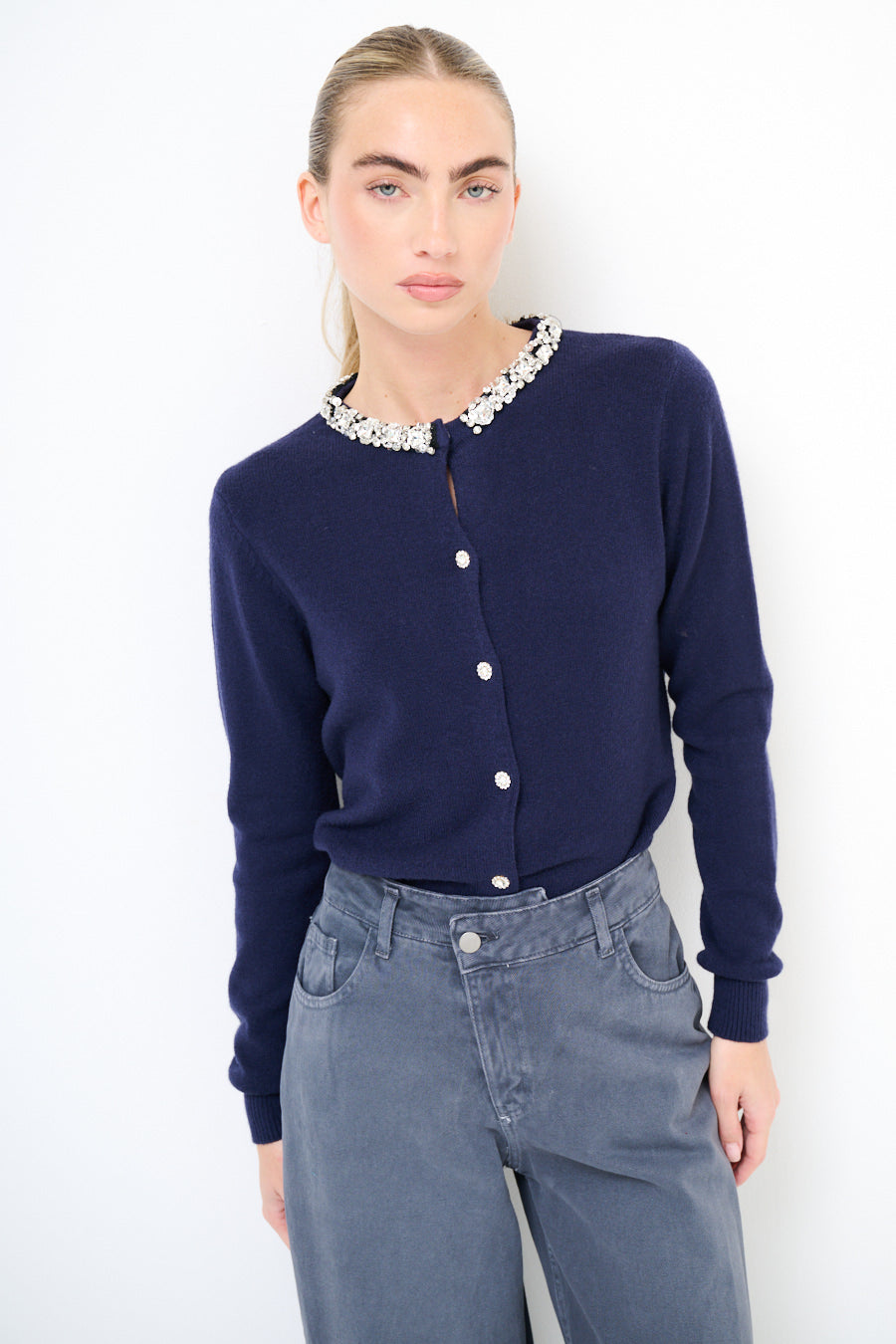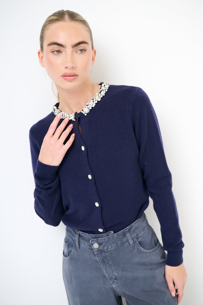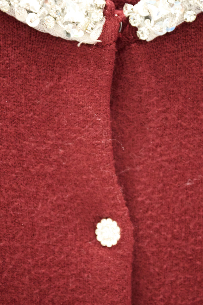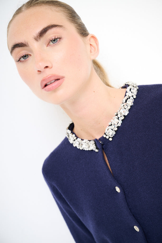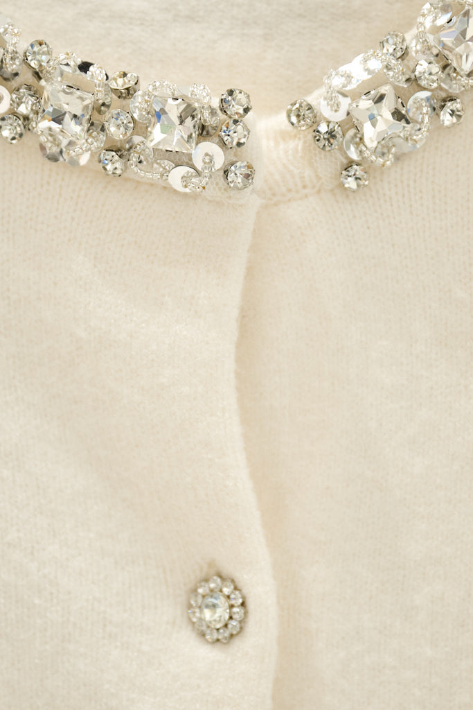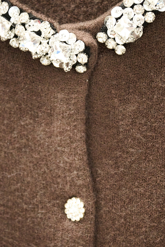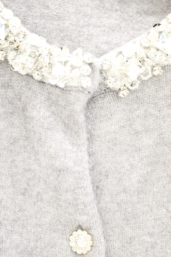 Jewel embellished collar crystal button knit cardigan wholesale